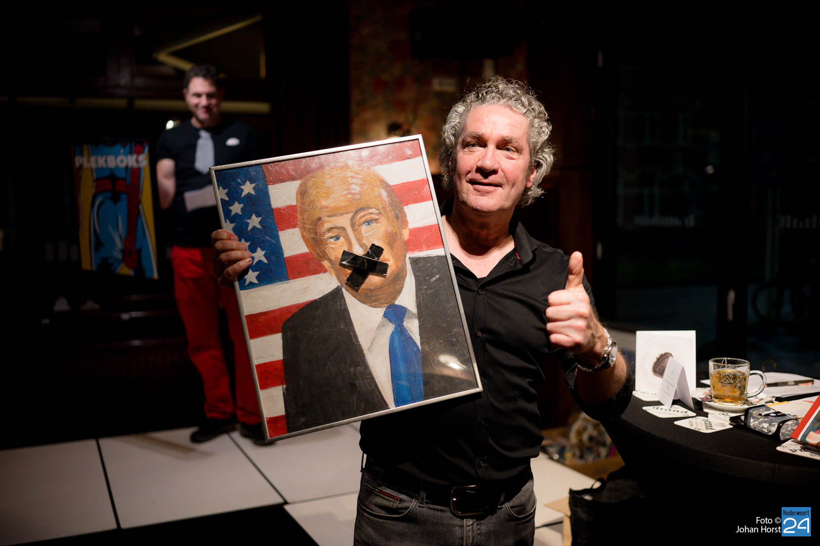 De veiling vond weer plaats in de Tramhalt. Er waren nieuwe veilingmeesters die de verschillende werken aan de man brachten. De prijzen varieerden van enkele euro’s, tot een paar honderd euro. Uiteindelijk kon er een mooie bijdrage voor het goede doel genoteerd worden.