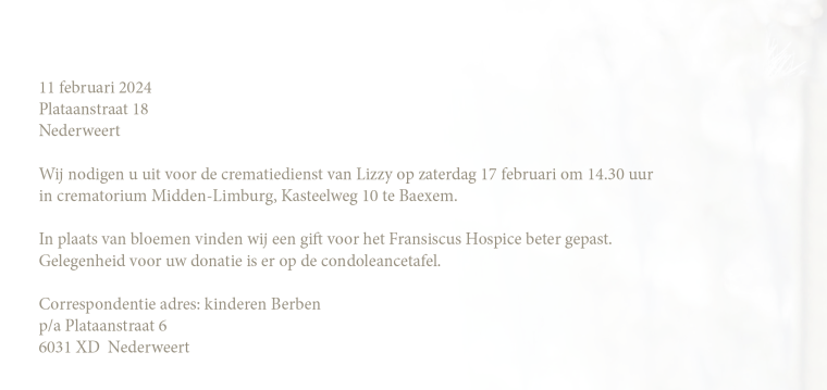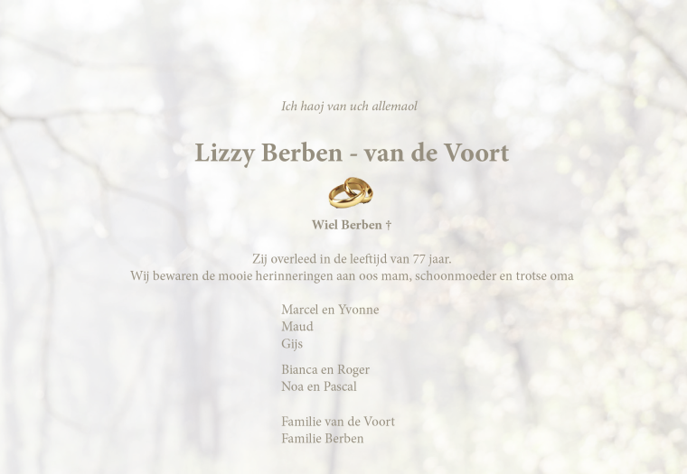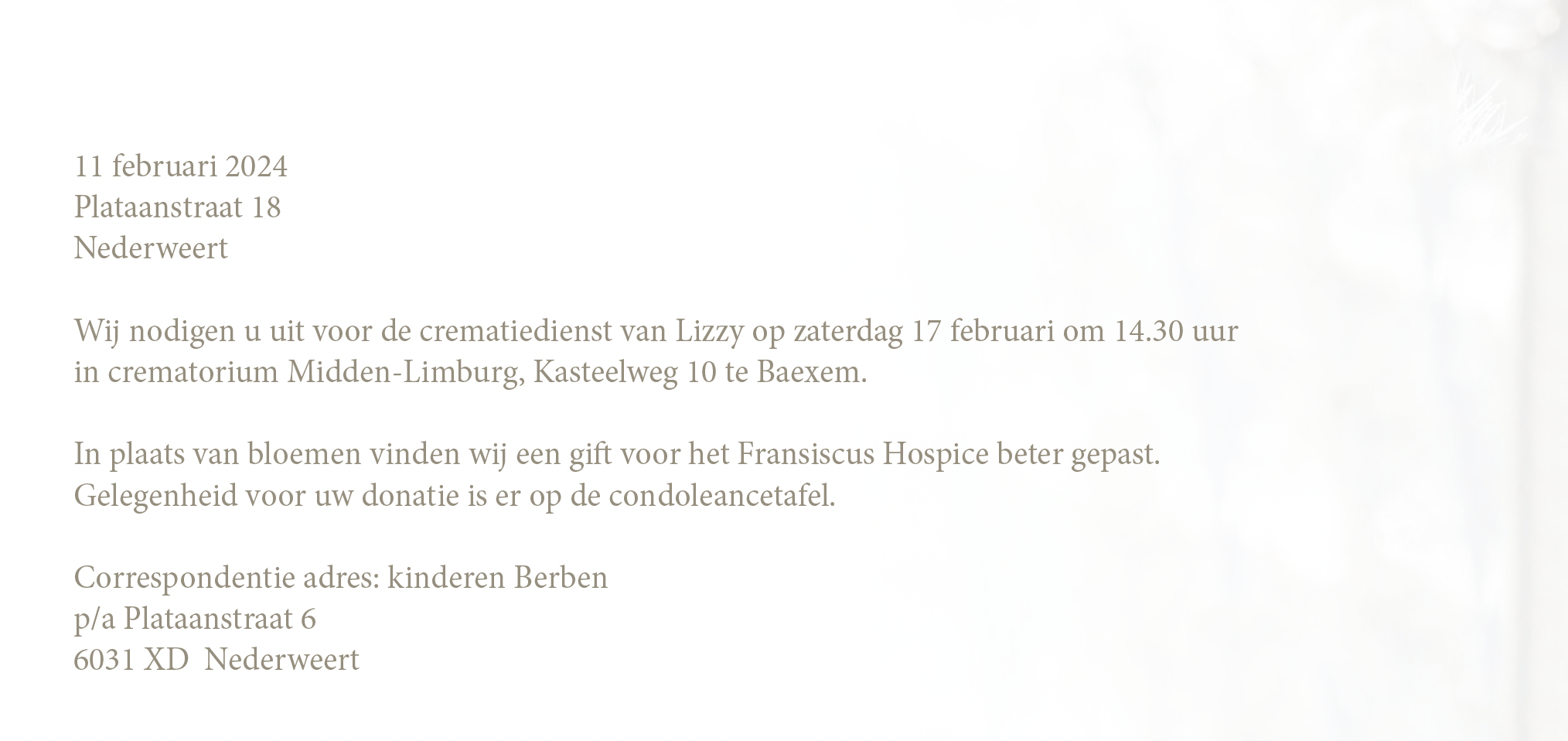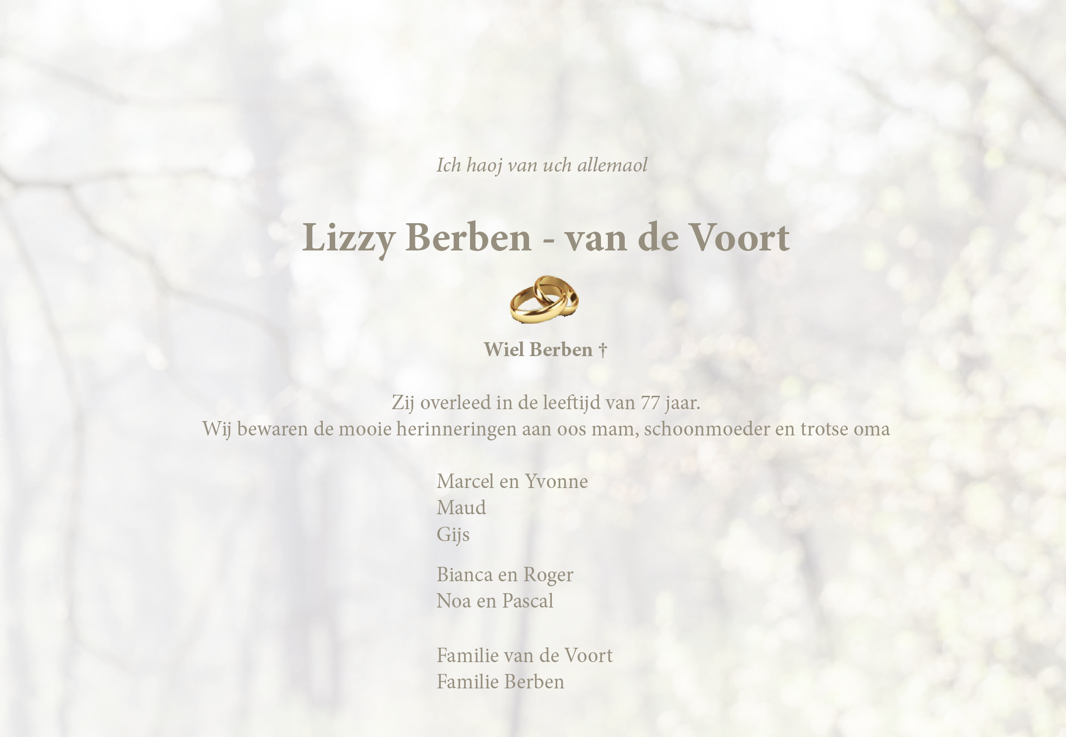 Overlijdensbericht | Lizzy Berben – van de Voort †