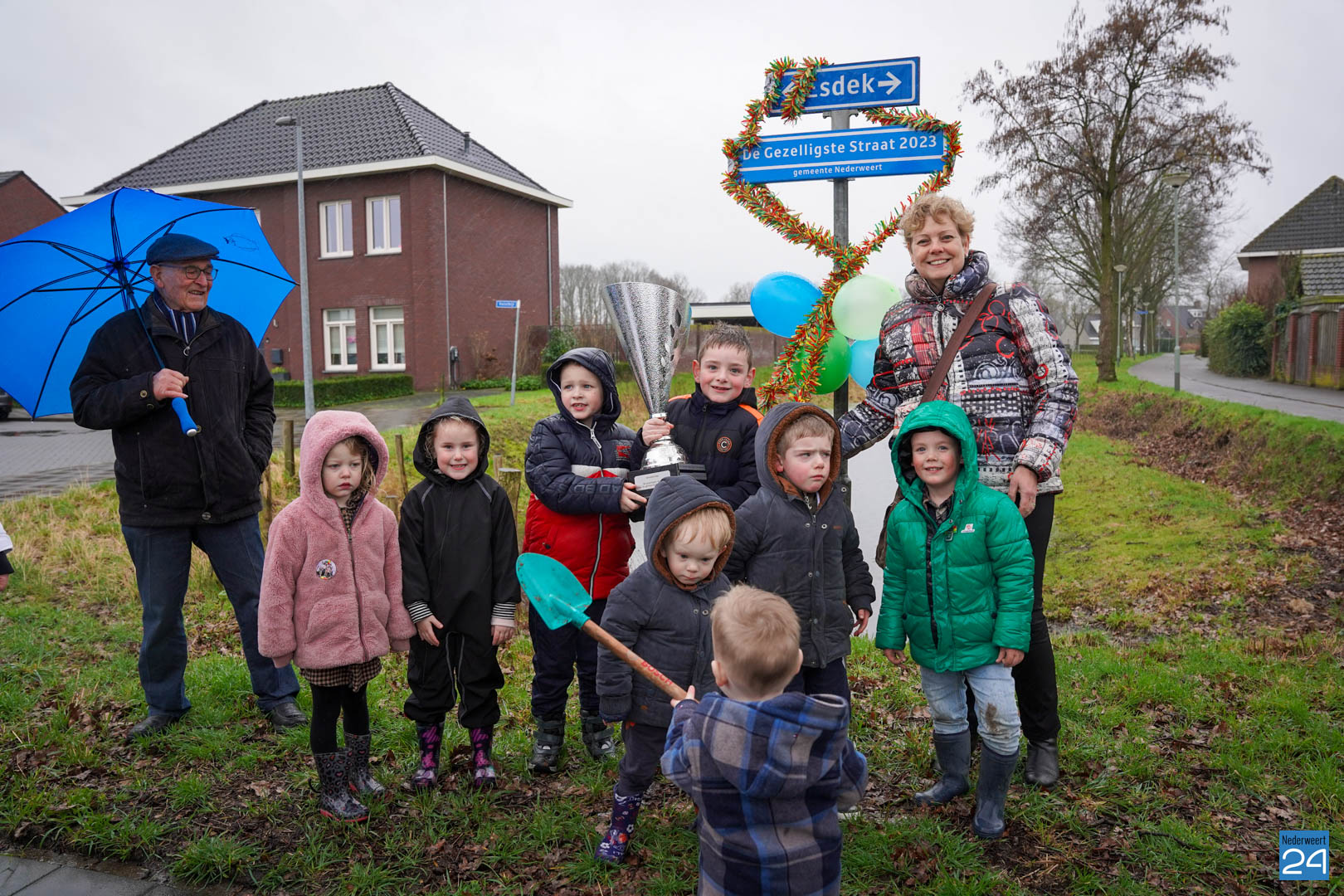 De kinderen van ‘de gezelligste straat’ onthulden op 14 februari jl. samen met wethouder Carla Dieteren de straatnaamborden. Regisseur leefbaarheid Lilian Kwaspen reageert verheugd: “Vanuit de gemeente vinden wij het mooi om te zien dat straten activiteiten organiseren en het ‘wij-gevoel’ versterken. Naar elkaar omkijken en helpen is in deze tijd ontzettend belangrijk.”