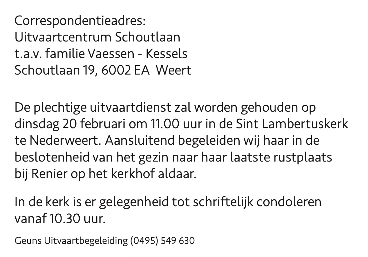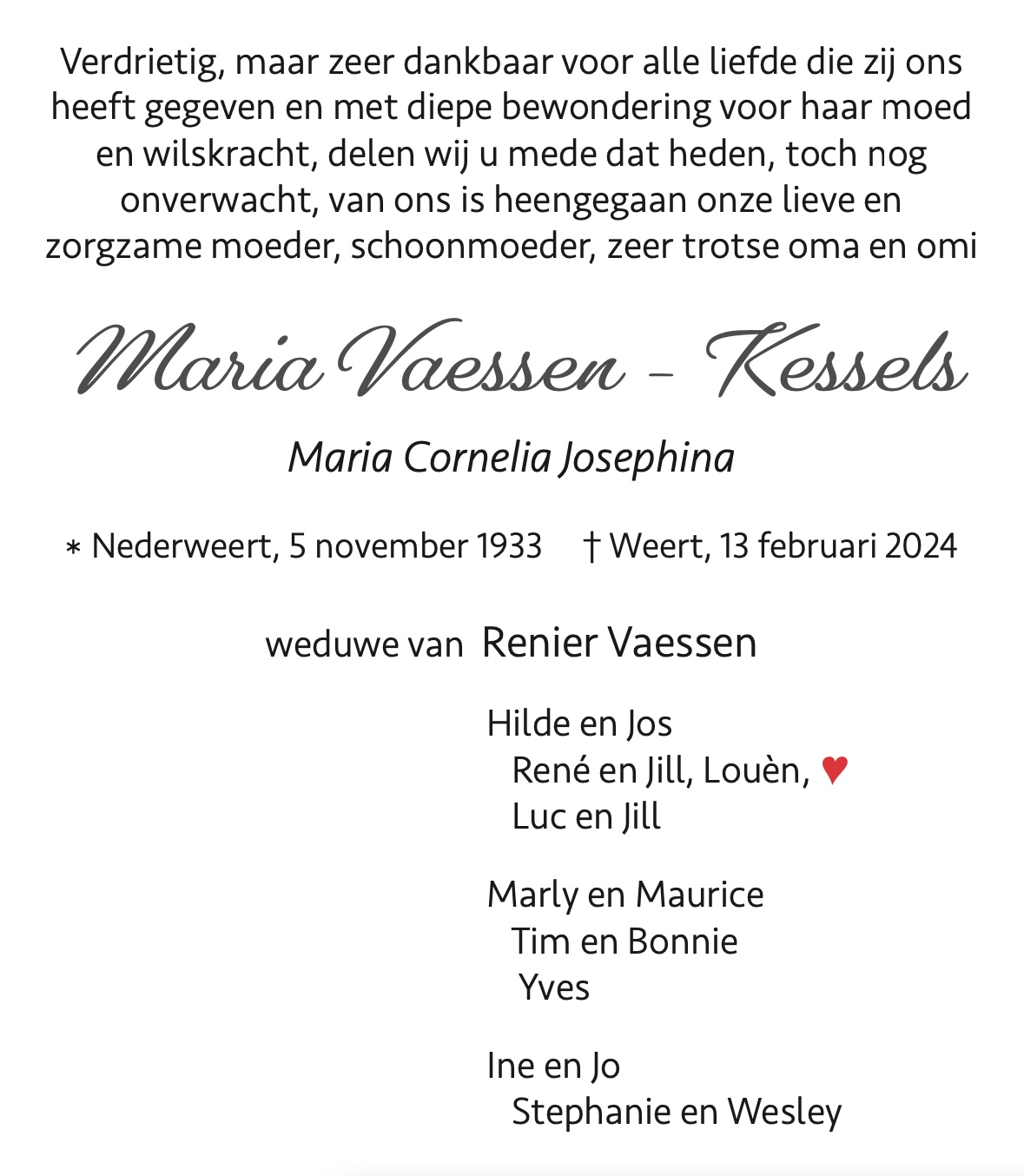 Overlijdensbericht | Maria Vaessen – Kessels †
