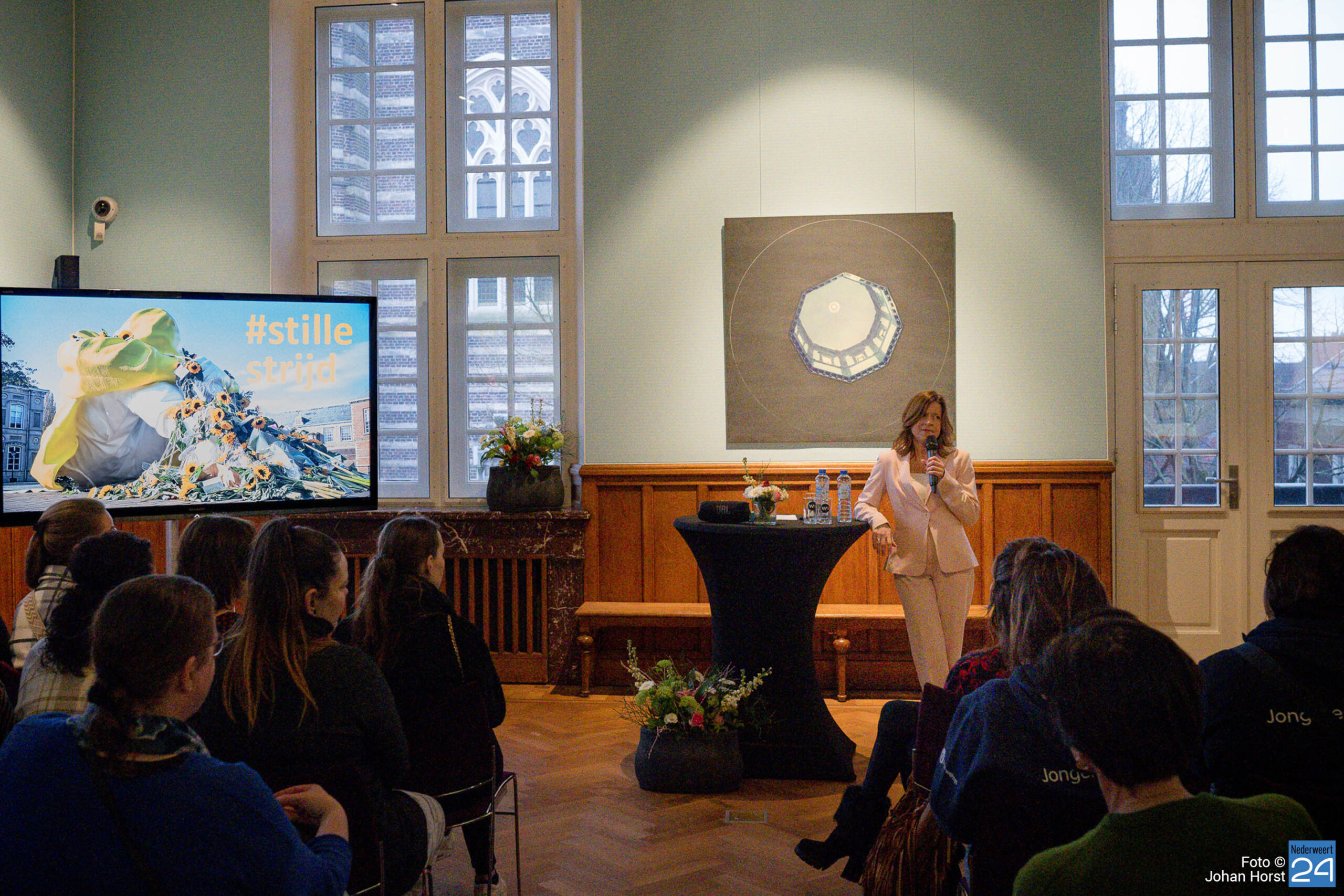 “Het is heel verdrietig om te constateren dat een steeds grotere groep jongeren ernstig last heeft van alle uitdagingen in het leven. Daarbij komt dat praten over psychische kwetsbaarheid vaak heel moeilijk is. Er is namelijk nog steeds veel taboe en (zelf)stigma hierom heen. Hier maak ik me grote zorgen om! Daarom hebben wij het kunstwerk Stille Strijd naar Weert gehaald. Samen kunnen wij onze jongeren laten zien en voelen dat wij met ze meeleven en dat wij open staan voor het gesprek, want praten over lastige onderwerpen helpt echt!” aldus wethouder Michèle Ferrière