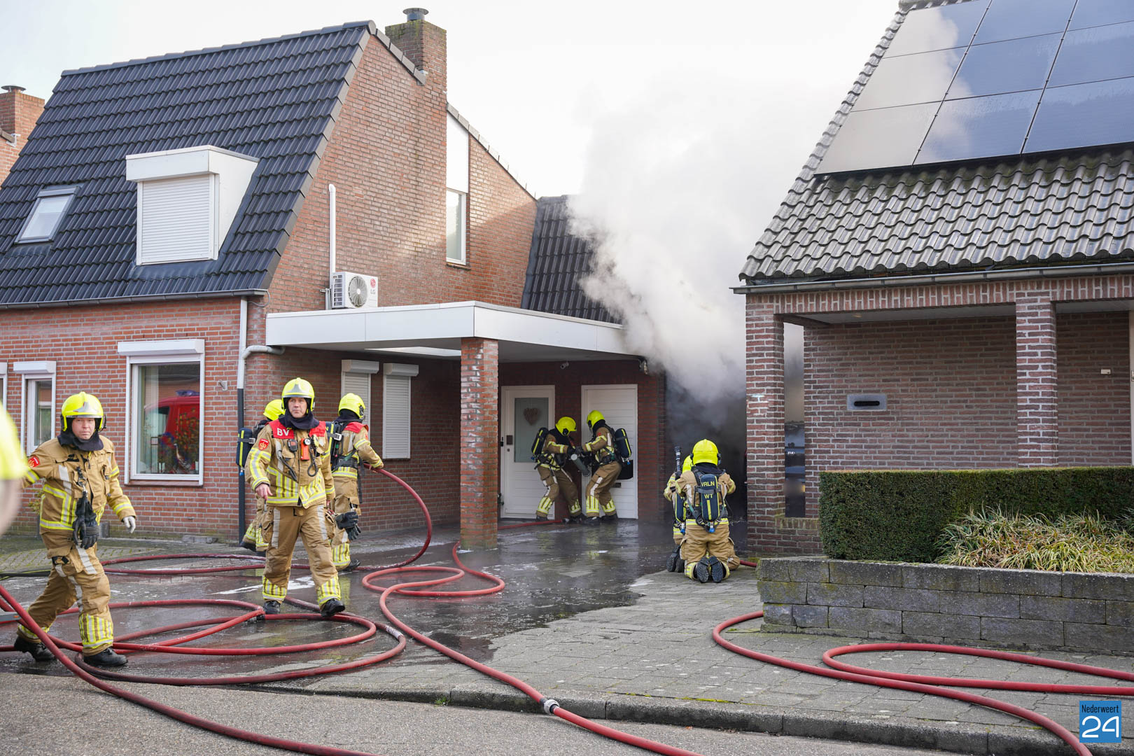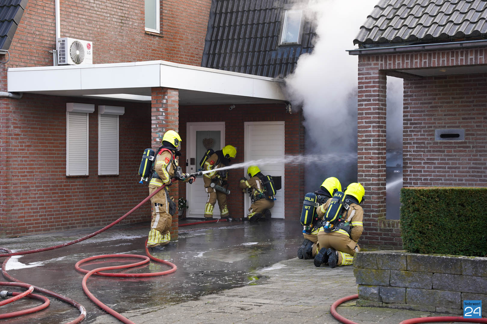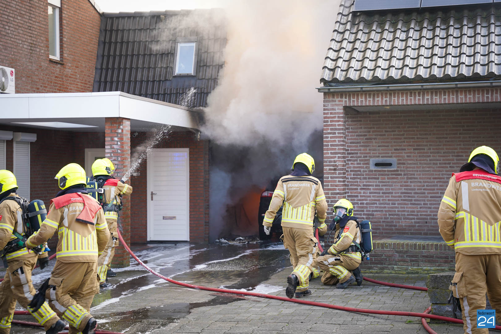 De brandweer is enige tijd bezig geweest met het blussen van de autobrand. Om ervoor te zorgen dat de brand niet zou overslaan op de naastgelegen woning werd een deur geforceerd en werd de woning van binnen gecontroleerd. Uiteindelijk werden deel van het plafond van de garage, en deel van het plafond van de carport van de buren door de brandweer verwijderd.
