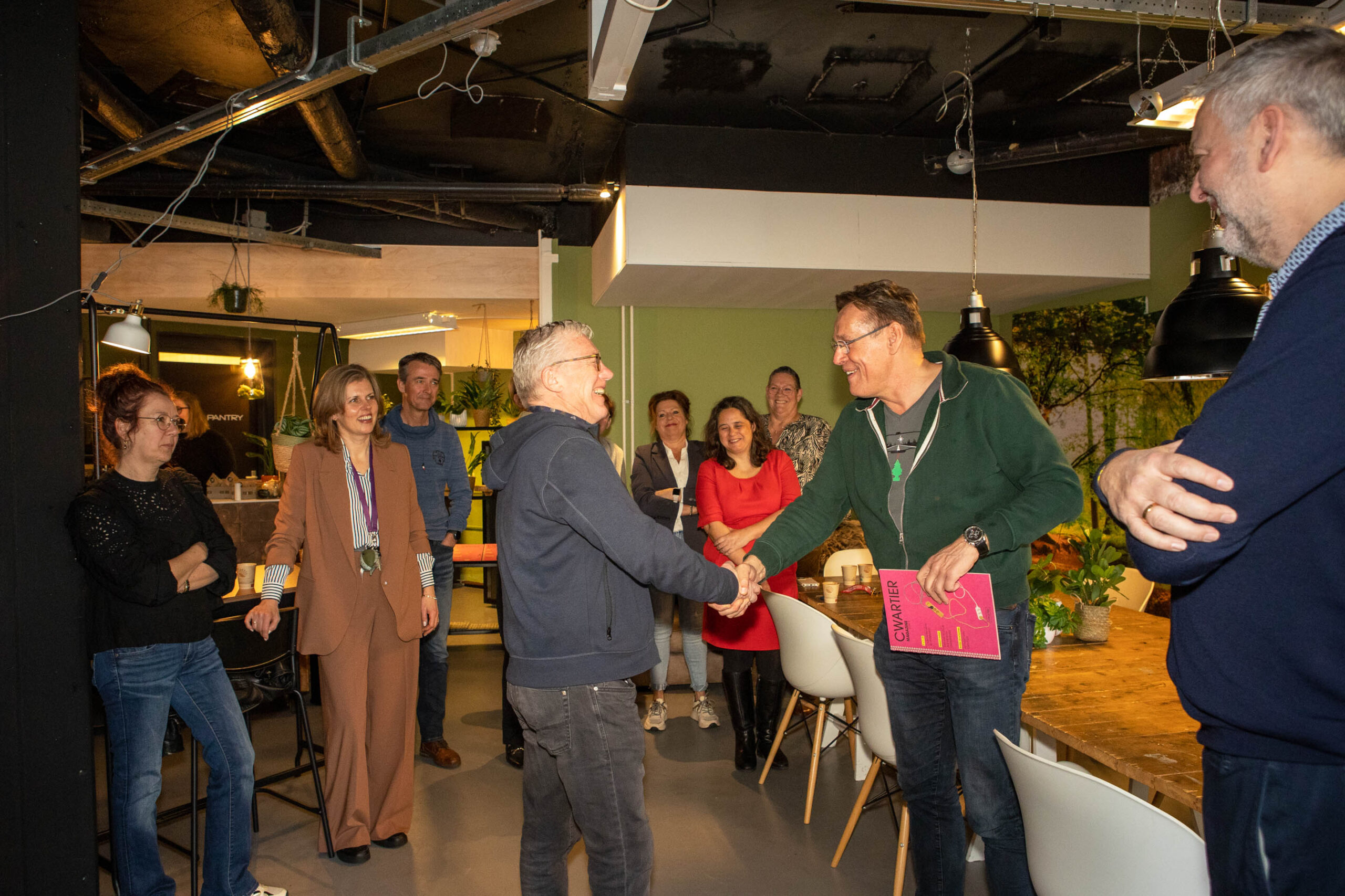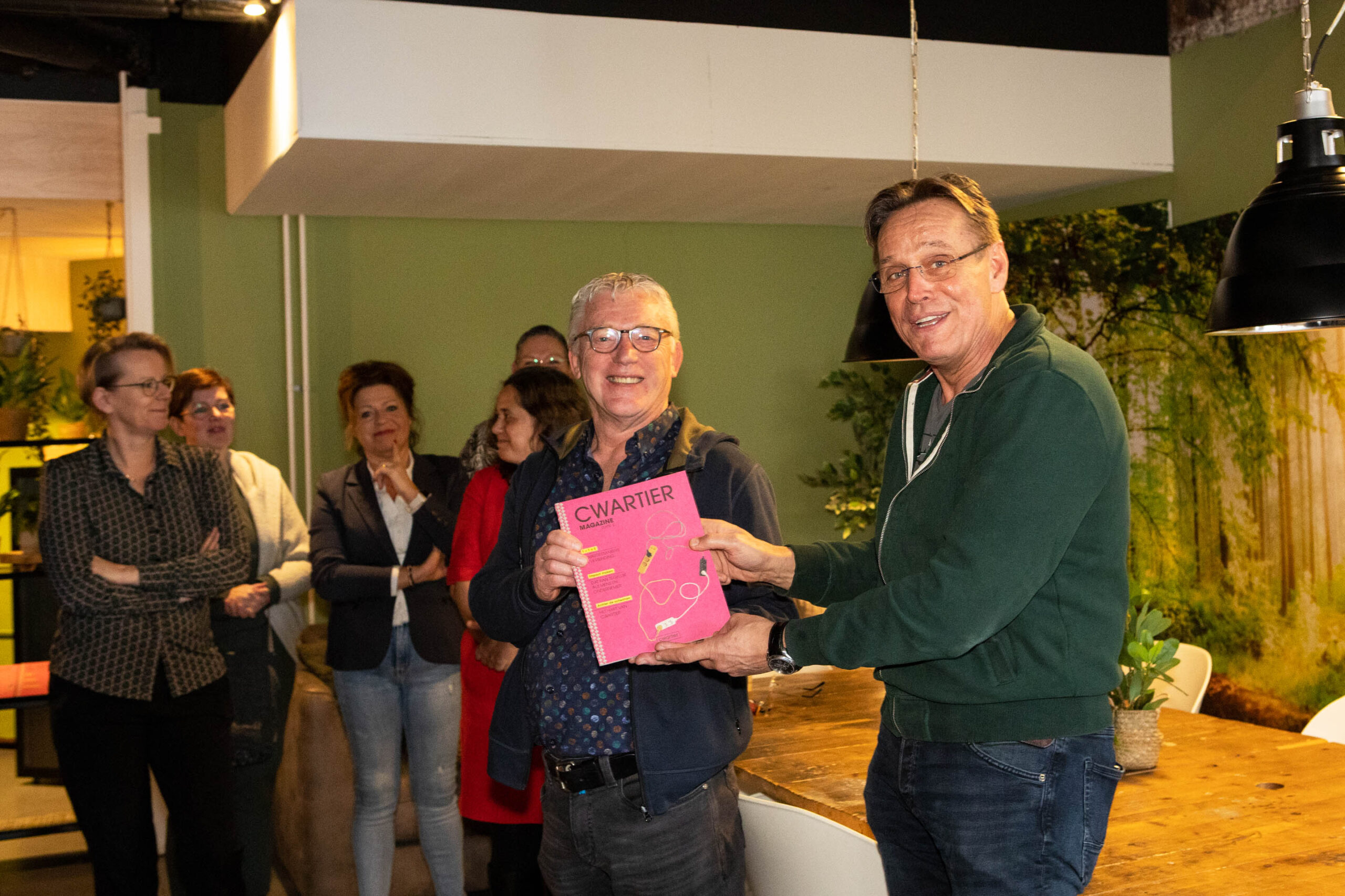 De ceremonie rond de overhandiging van het eerste exemplaar van het magazine werd ingeluid met een speech door John Jacobs, die Huub en Bennie – respectievelijk groenvrijwilliger en stadskantonnier – in het zonnetje zette. Hun inzet symboliseert de gemeenschapsgeest die Cwartier zo uniek maakt.
