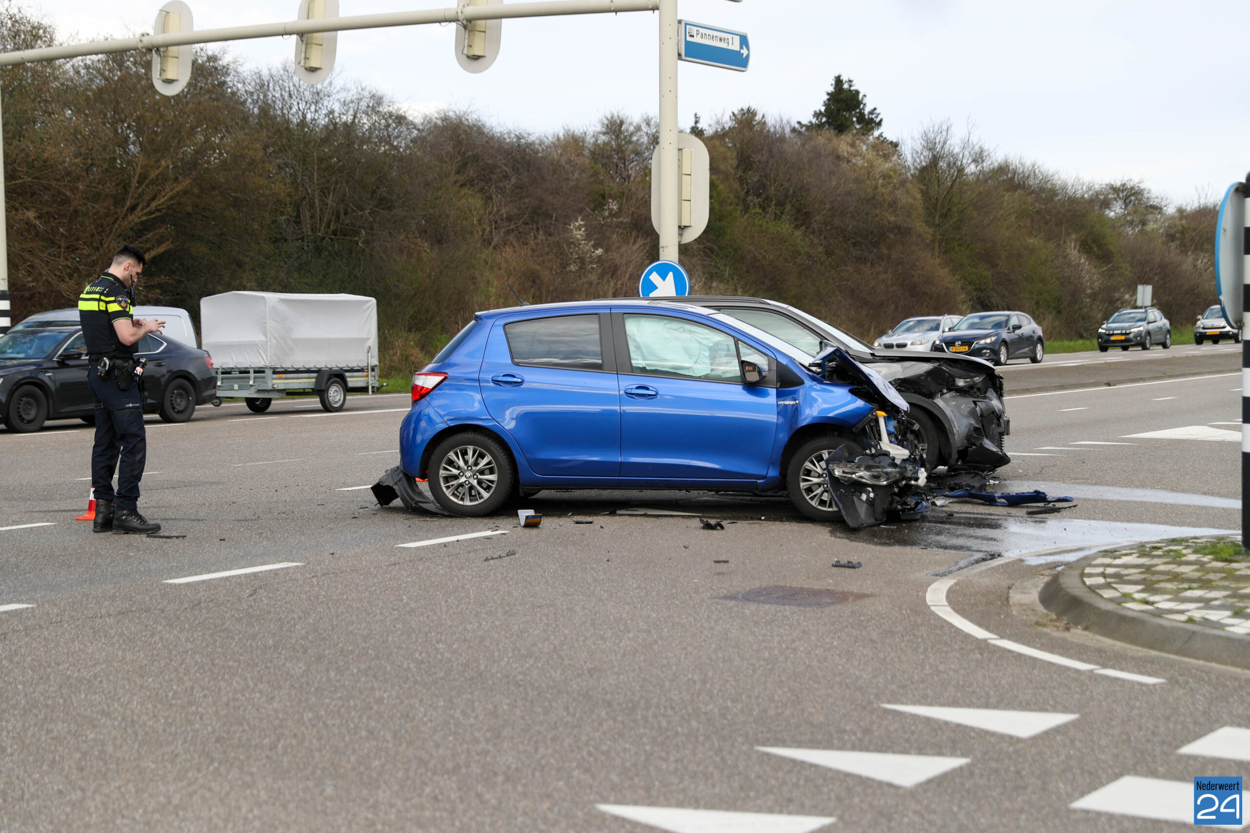 Zaterdagmiddag, even na 15:00 uur, zijn twee personenauto’s hard met elkaar in botsing geraakt op de Randweg Zuid (N275) in Nederweert. Het ongeval gebeurde bij de verkeerslichten ter hoogte van de Nikkelstraat bij de Pannenweg II.