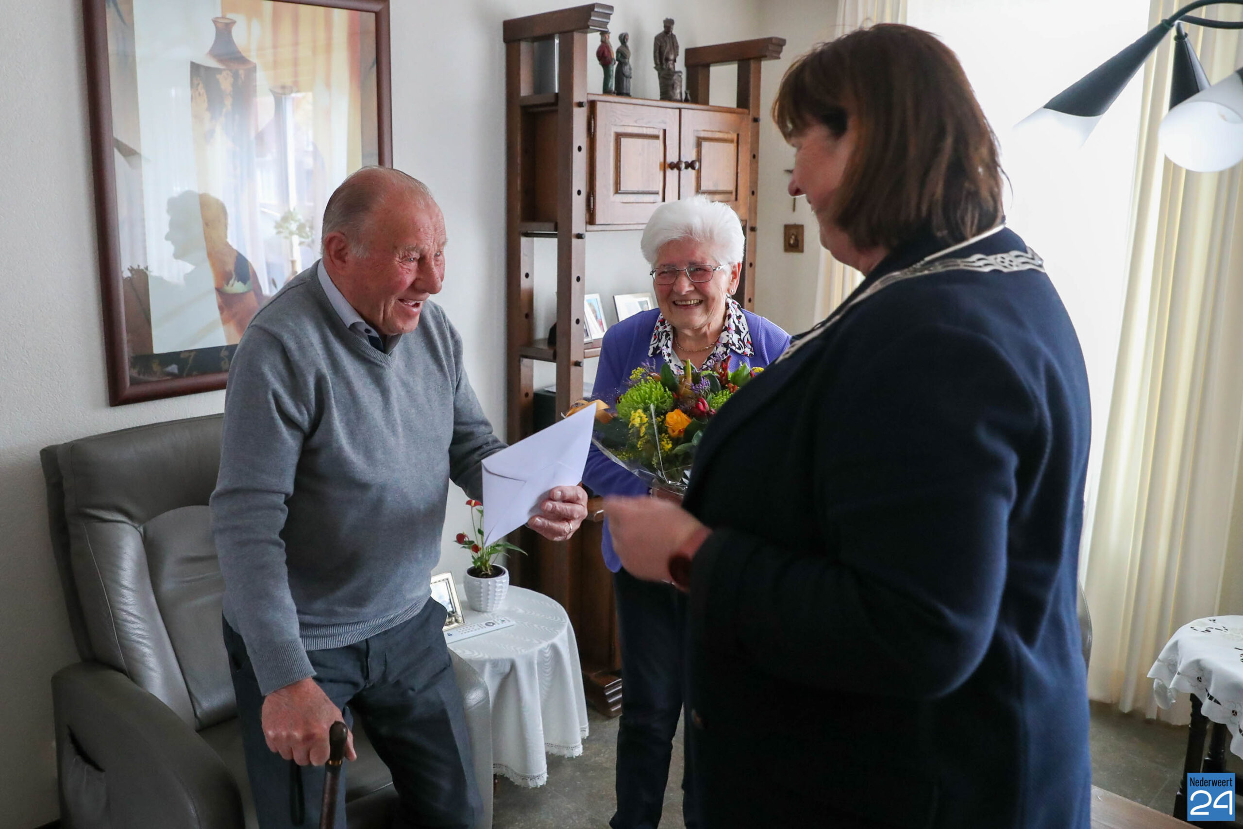 Wiel en Lies Smolenaers-Steijvers uit Nederweert zijn vandaag 60 jaar getrouwd. Burgemeester Op de Laak bracht het diamanten paar vanmiddag een bezoek. En het is dubbel feest, want Lies Smolenaers viert vandaag ook haar verjaardag.