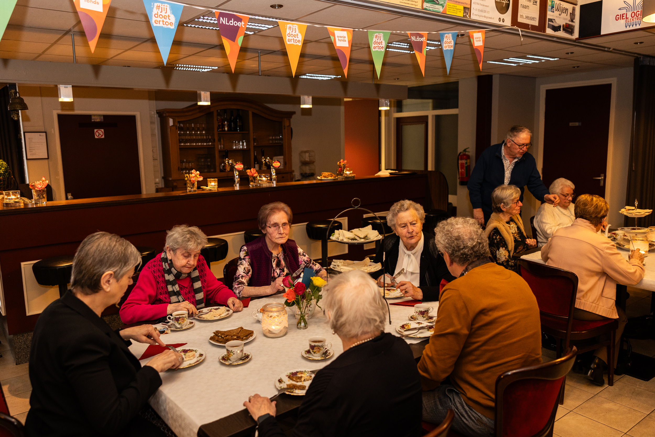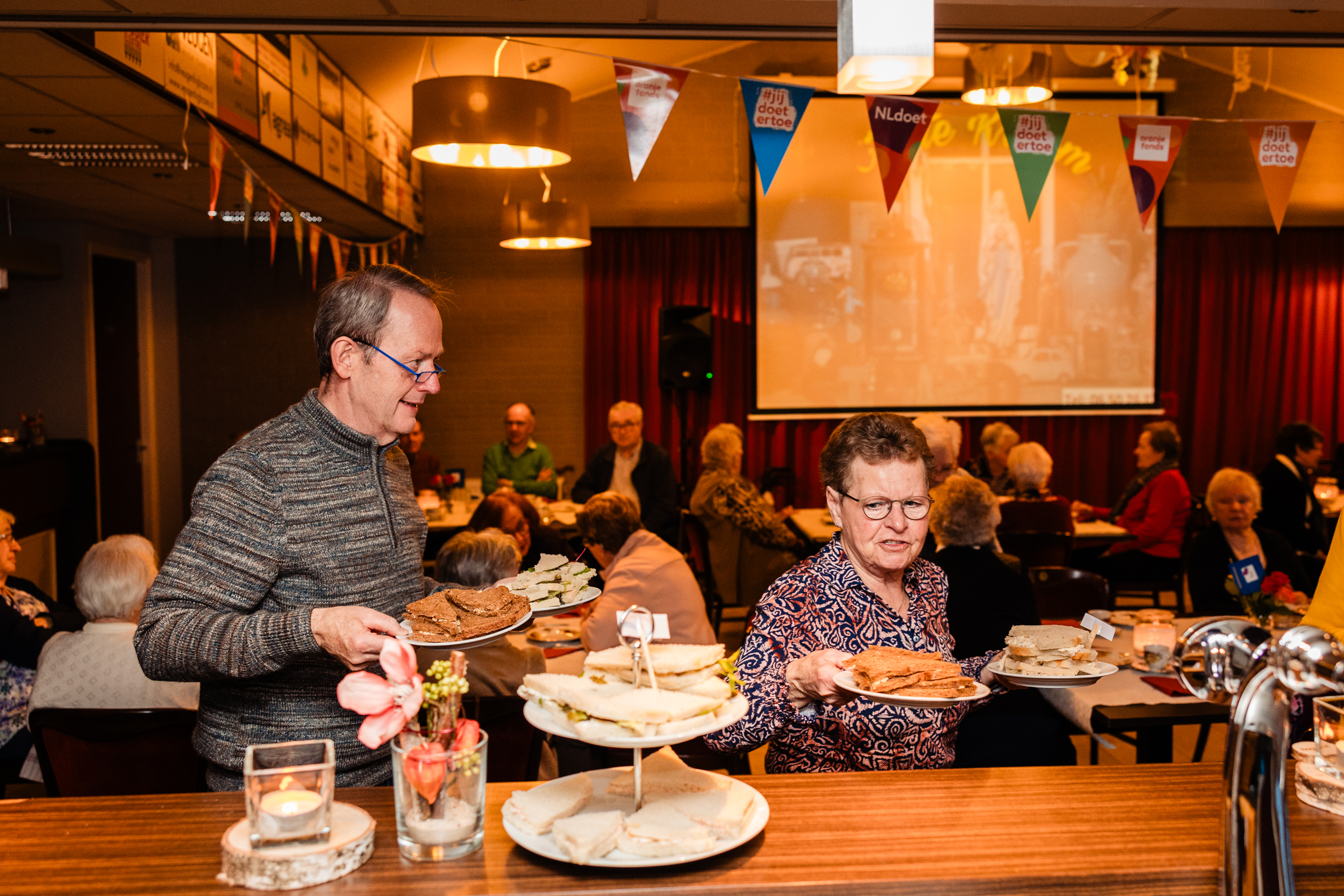 De gasten van de Huiskamer werden getrakteerd op een uitgebreide High Tea middag in Zaal Le-Winne te Boeket. De vrijwilligers hadden hun beste beentje voorgezet door heerlijke hapjes te bereiden, zowel hartige als zoete hapjes. Daarbij werden verschillende soorten thee geserveerd. De middag werd opgeluisterd door ‘Santekroam‘. Er hadden zich ook nog enkele mensen spontaan aangemeld om te komen helpen. Dat is ook één van de doelstellingen van de NL Doet dag.