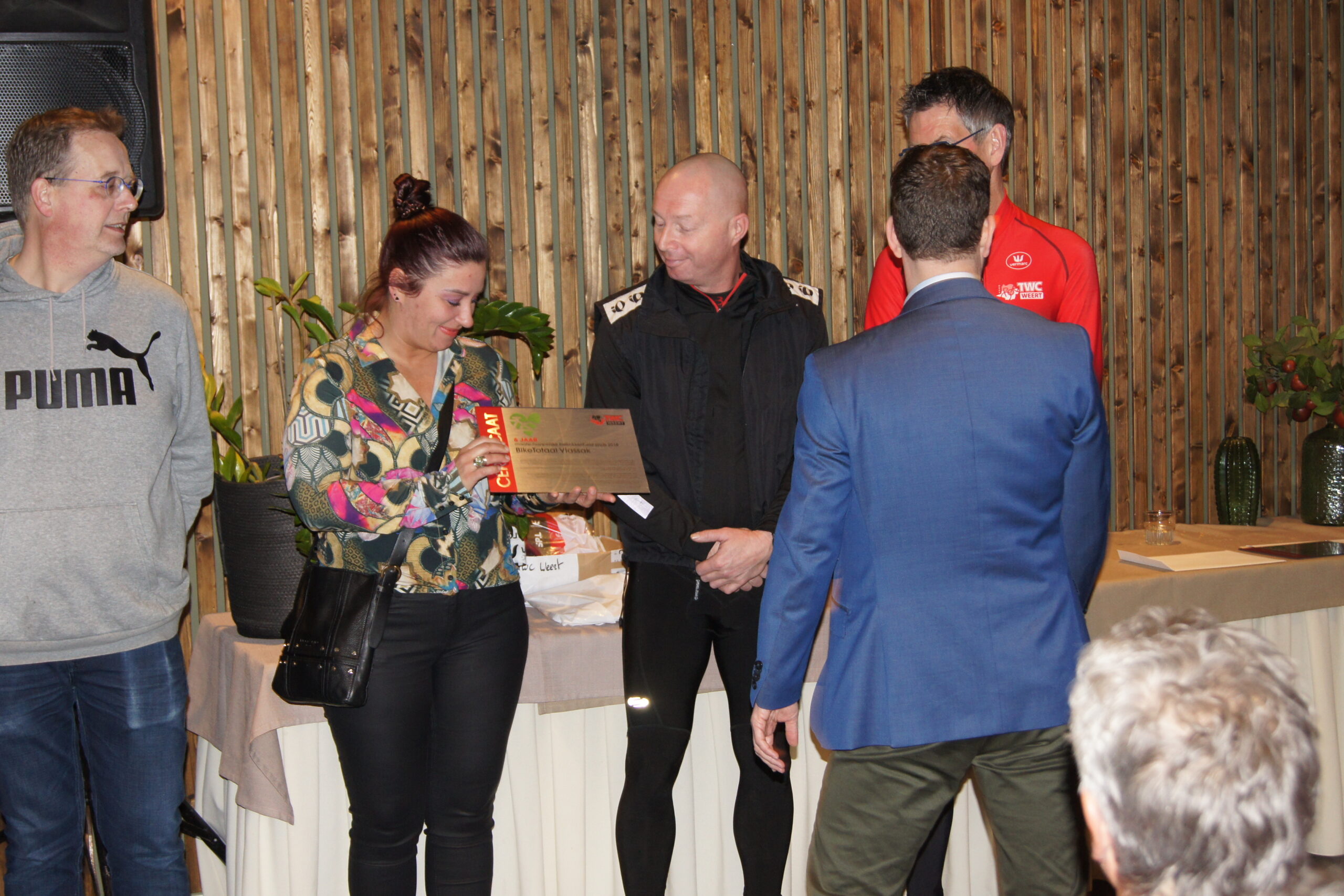 De kledingcommissie, Serge, Miranda en John werden nogmaals bedankt voor hun geweldige werk. Het lijkt simpel maar een tenue ontwerpen en ontwikkelen is een heel klus waar ze uiteindelijk ruim 9 maanden, samen met de shirt-sponsors en leverancier Vermarc, mee bezig zijn geweest. De overige zeven sponsoren van TWC Weert waren ook uitgenodigd voor de tenuepresentatie en kregen als dank voor hun lange maatschappelijke betrokkenheid een certificaat uitgereikt;