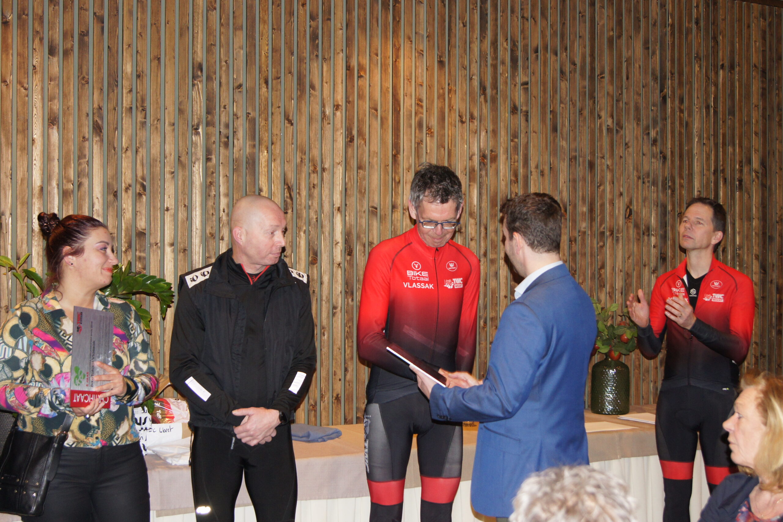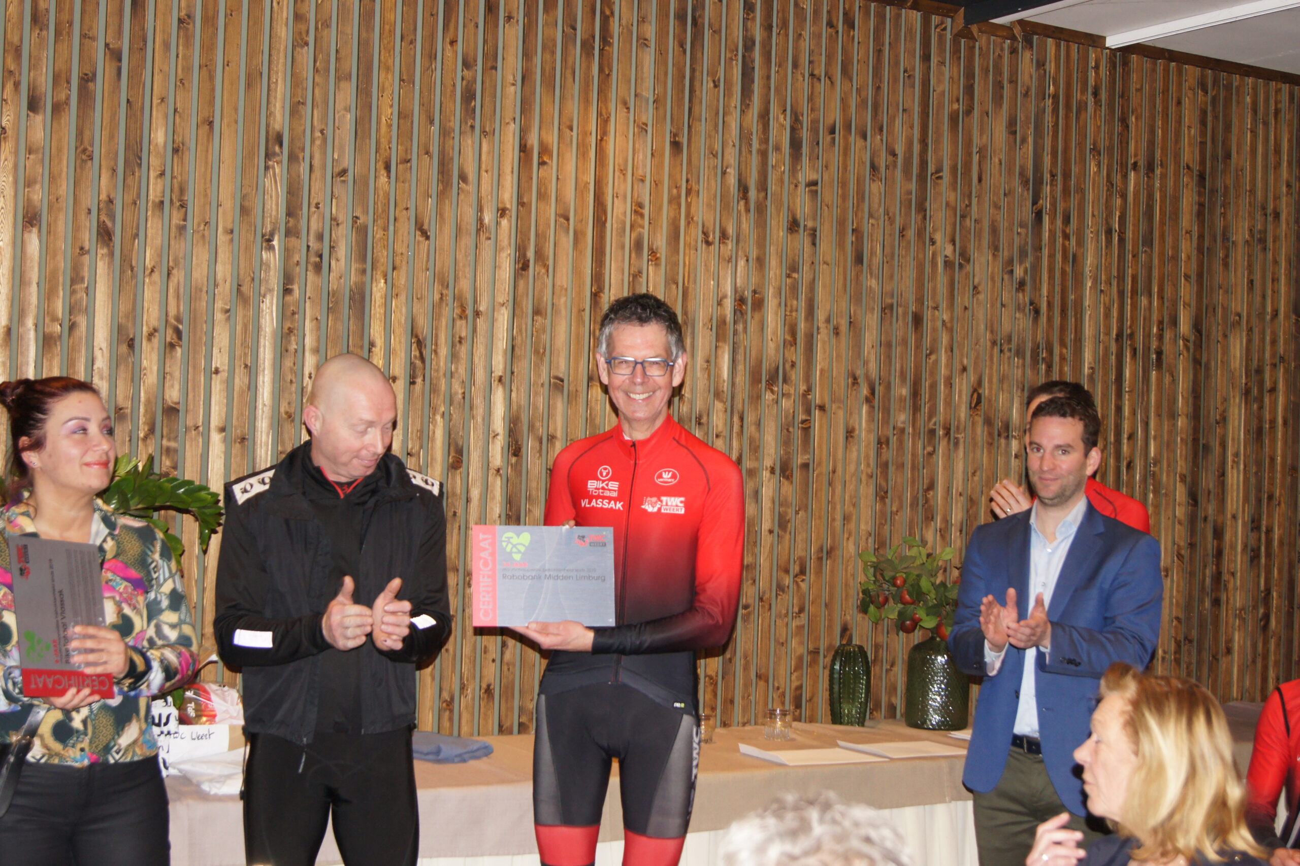De sponsors die tevens lid zijn van TWC Weert en langer dan tien jaar maatschappelijk betrokken zijn bij TWC Weert ontvingen van de voorzitter en wethouder nog een speciaal wielershirt met hartjes boven het logo van TWC Weert. Elk hartje symboliseert 10 jaar maatschappelijke betrokkenheid. Ton Tindemans (ASN Autoschade Ton Tindemans, drei hartjes), Serge van den Berg (Het EnergieBureau 1 hartje) en Juriaan Maarse (Maarse Hoveniers 2 hartjes) waren zichtbaar ontroerd door dit mooie geschenk.