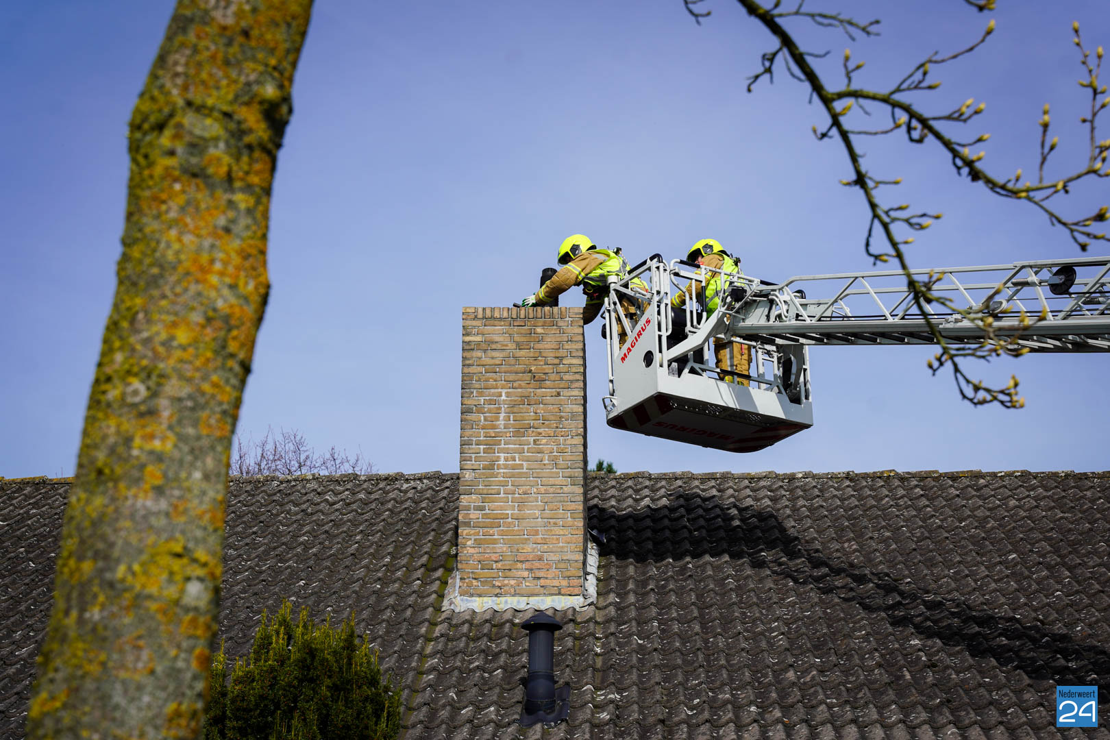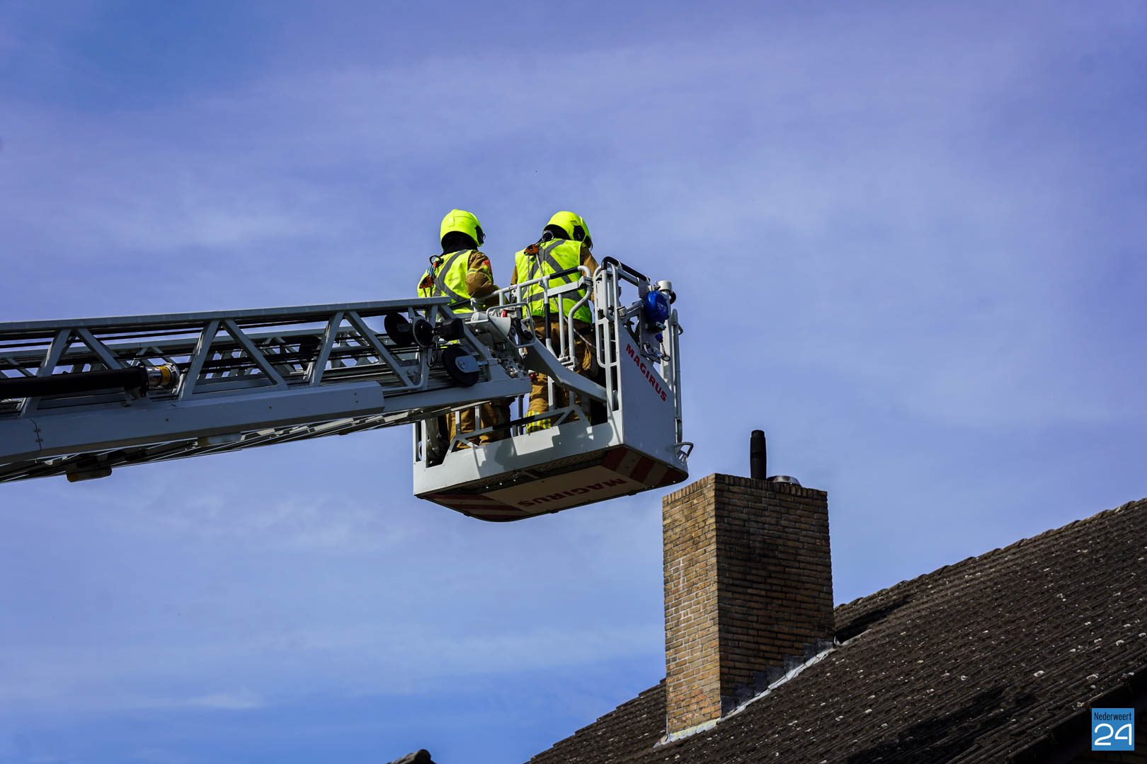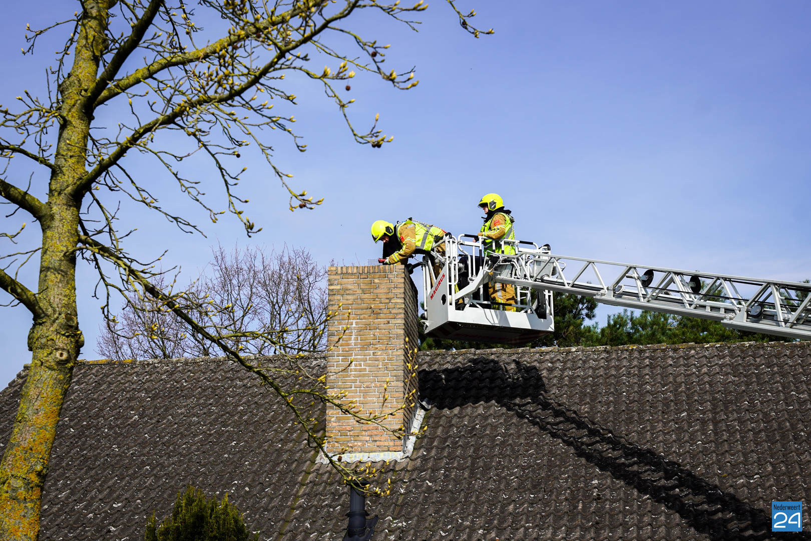 Eenmaal aangekomen bij het woonhuis werd met een hoogwerker vanaf boven in de schoorsteen gekeken, maar een vogeltje werd niet gespot. Er zat wel een stukje gaas scheef in de schoorsteen, waardoor de brandweer het zekere voor het onzekere wilde nemen en met een ketting de schoorsteen schoon veegde in het geval de vogel op een plek zat die niet zichtbaar was.