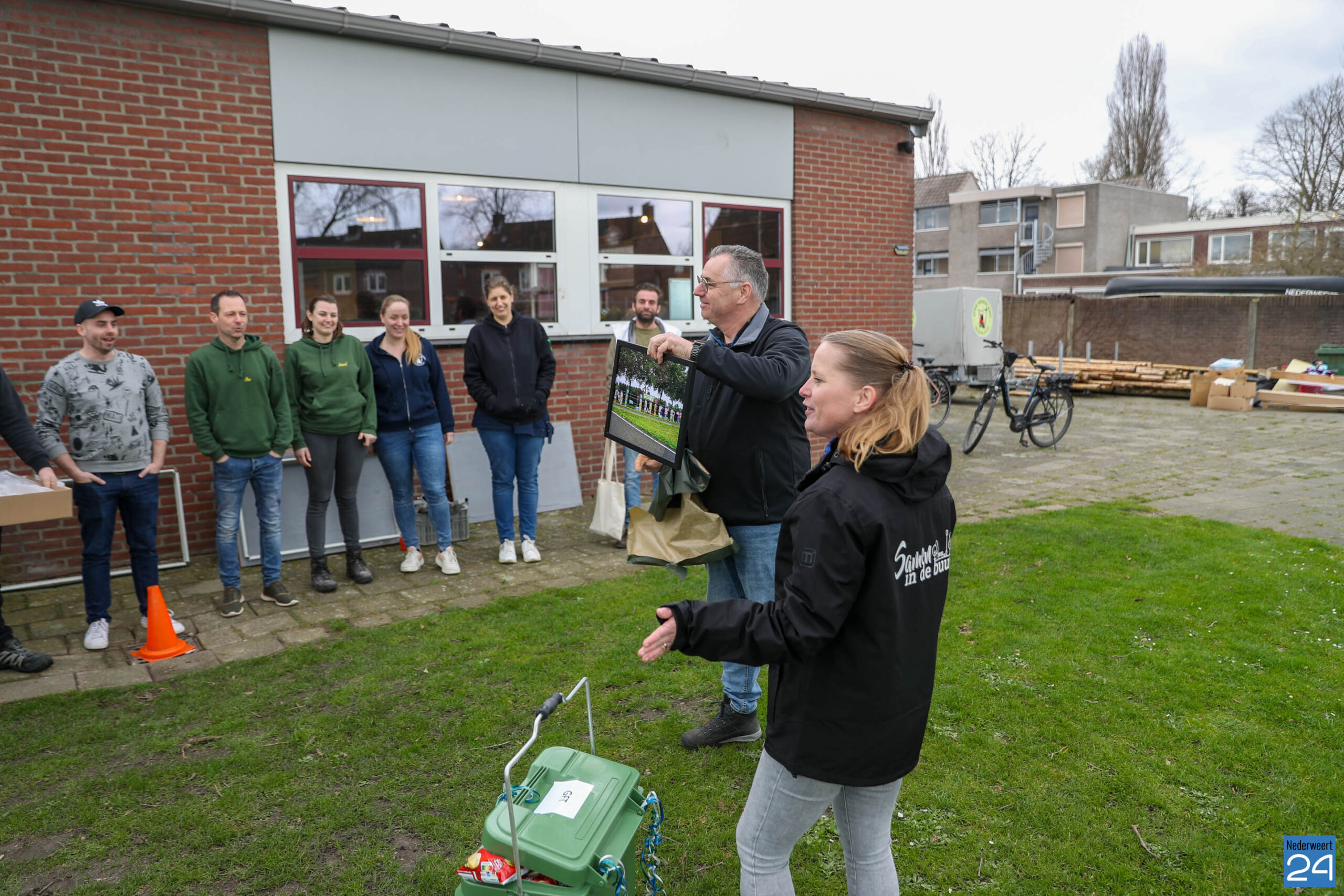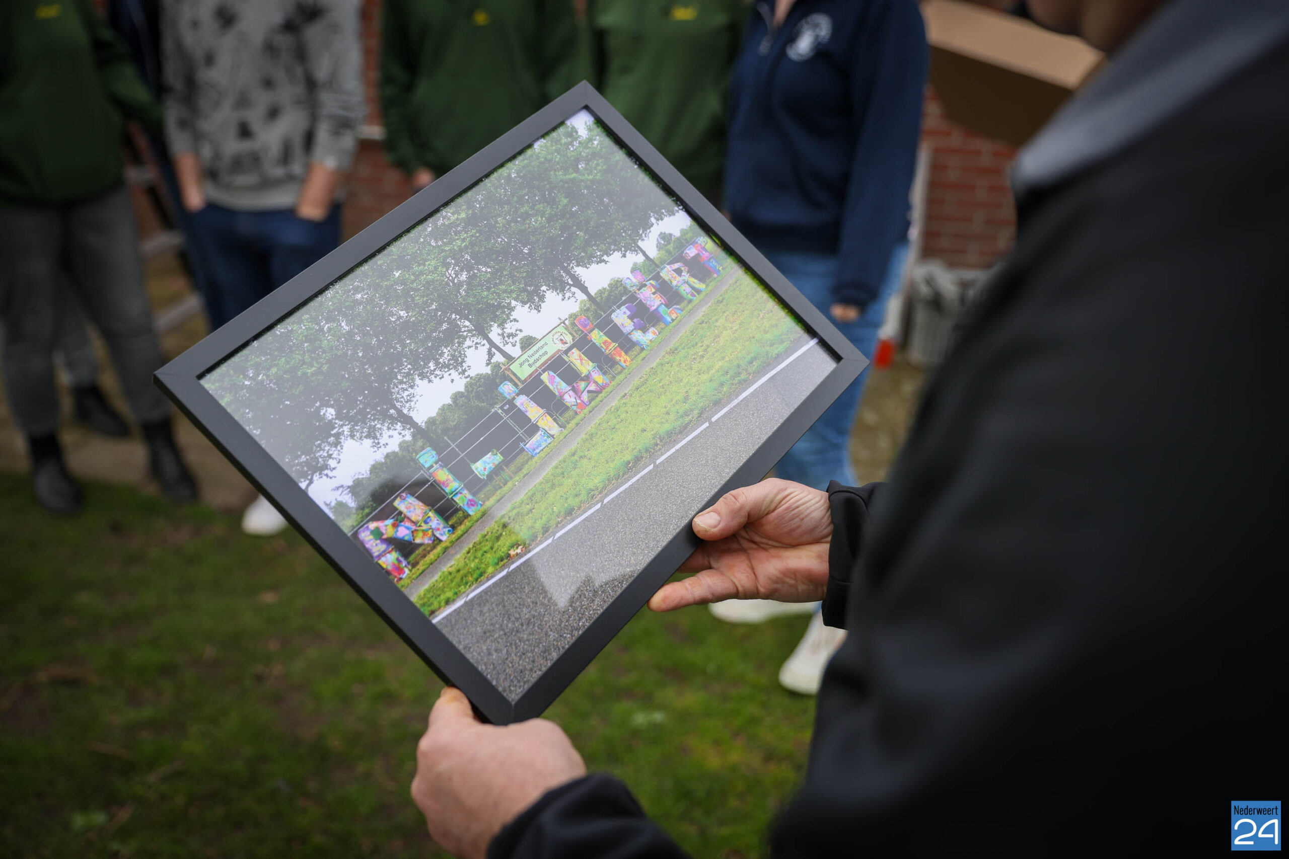 Afgelopen week bezochten de leefbaarheidsregisseurs de accommodatie van Jong Nederland Budschop in het kader van NL Doet. Als blijvende herinnering aan het bijzondere ‘klikoproject’ ontving het bestuur namens de werkgroep Afval een mooie ingelijste foto van het kunstwerk.
