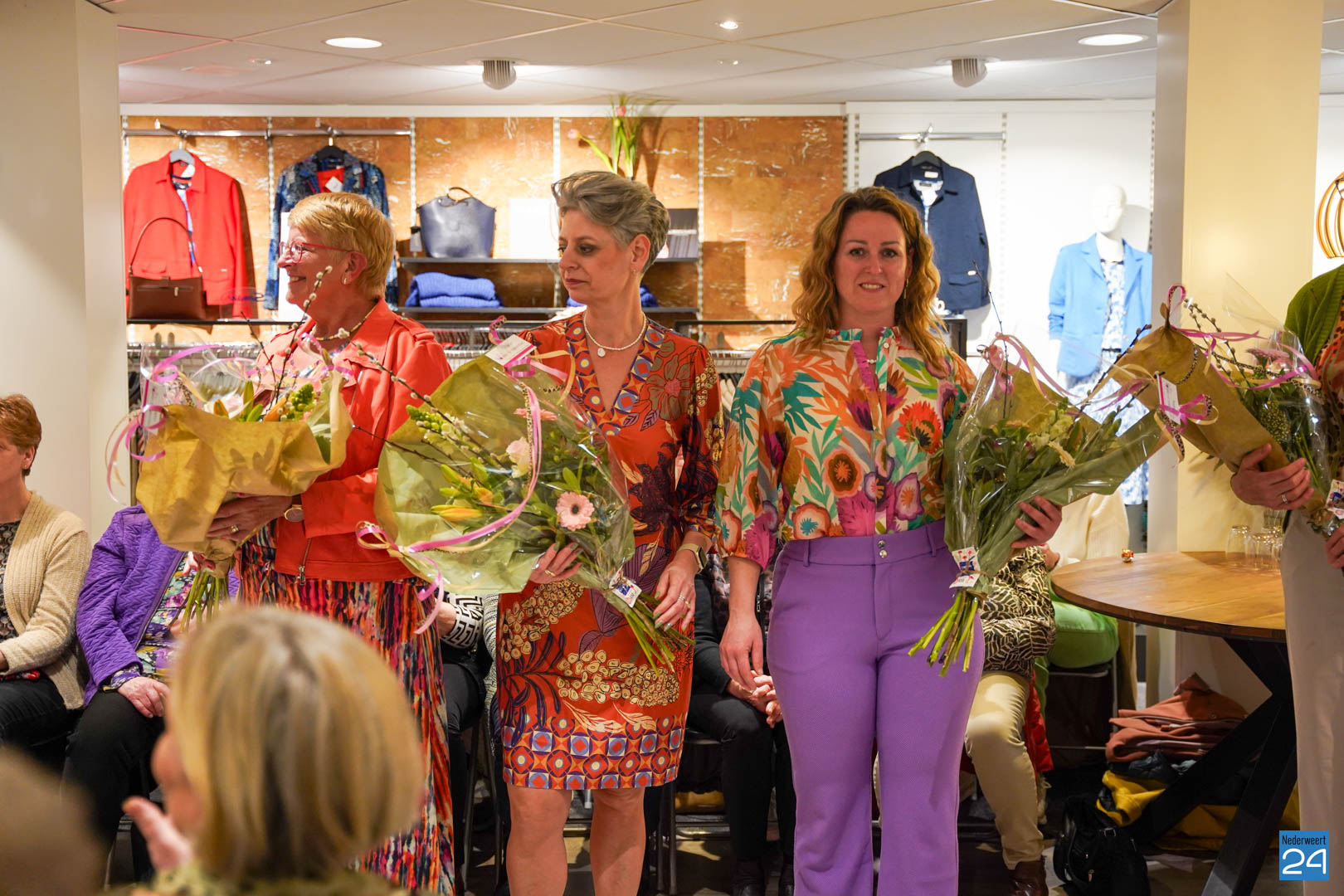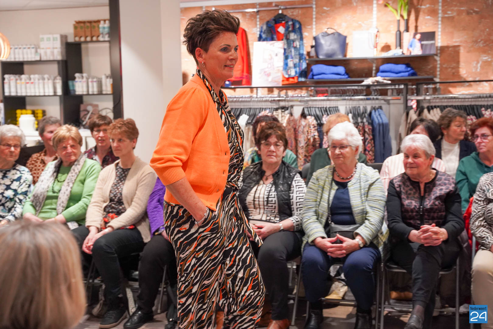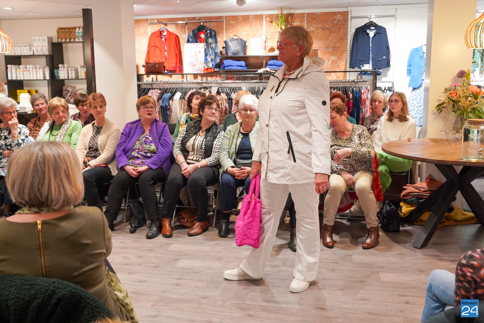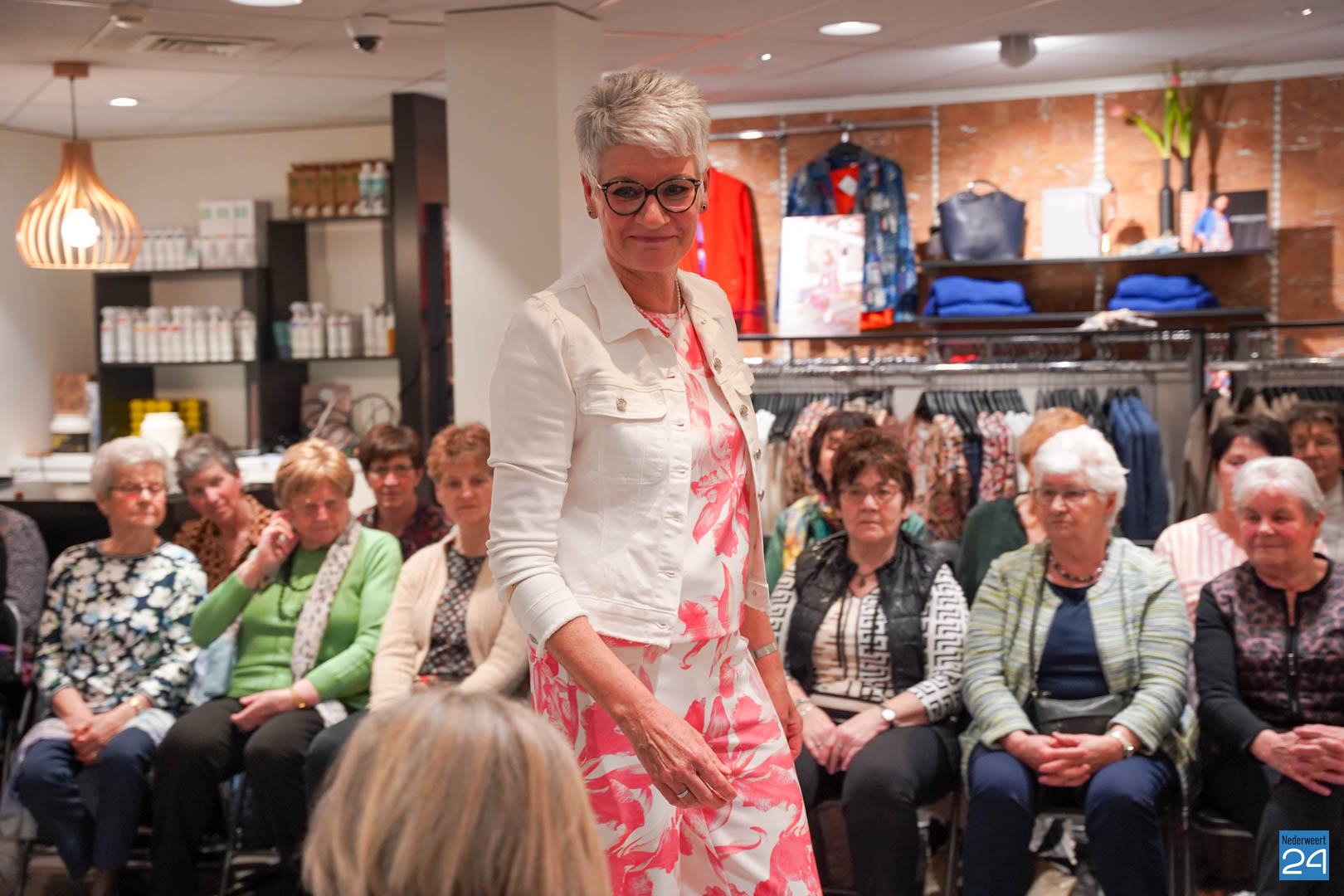 De collecties werden geshowd door de eigen mannequins van de winkels in Nederweert en Akima vertelde de aanwezigen over de trends van dit voorjaar. Ook schoenen van Durlinger werden geshowd.