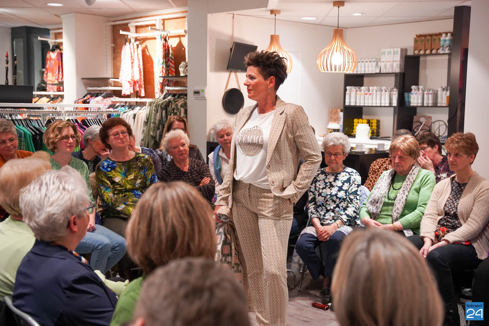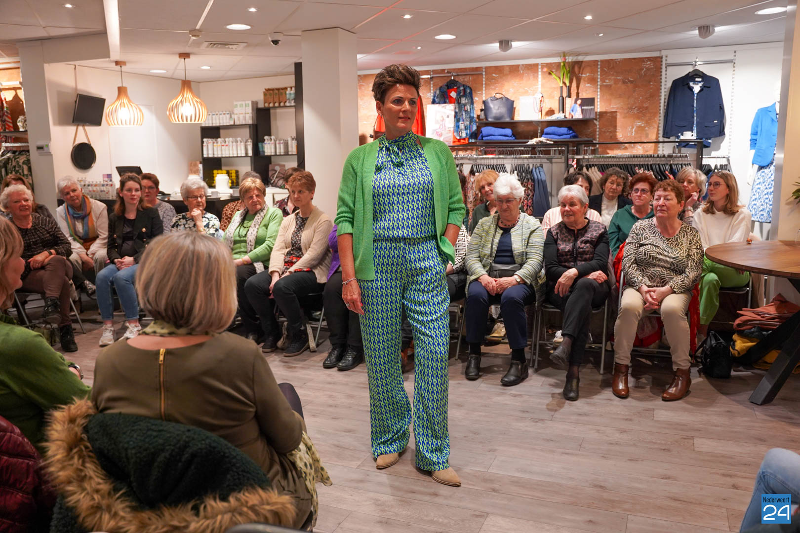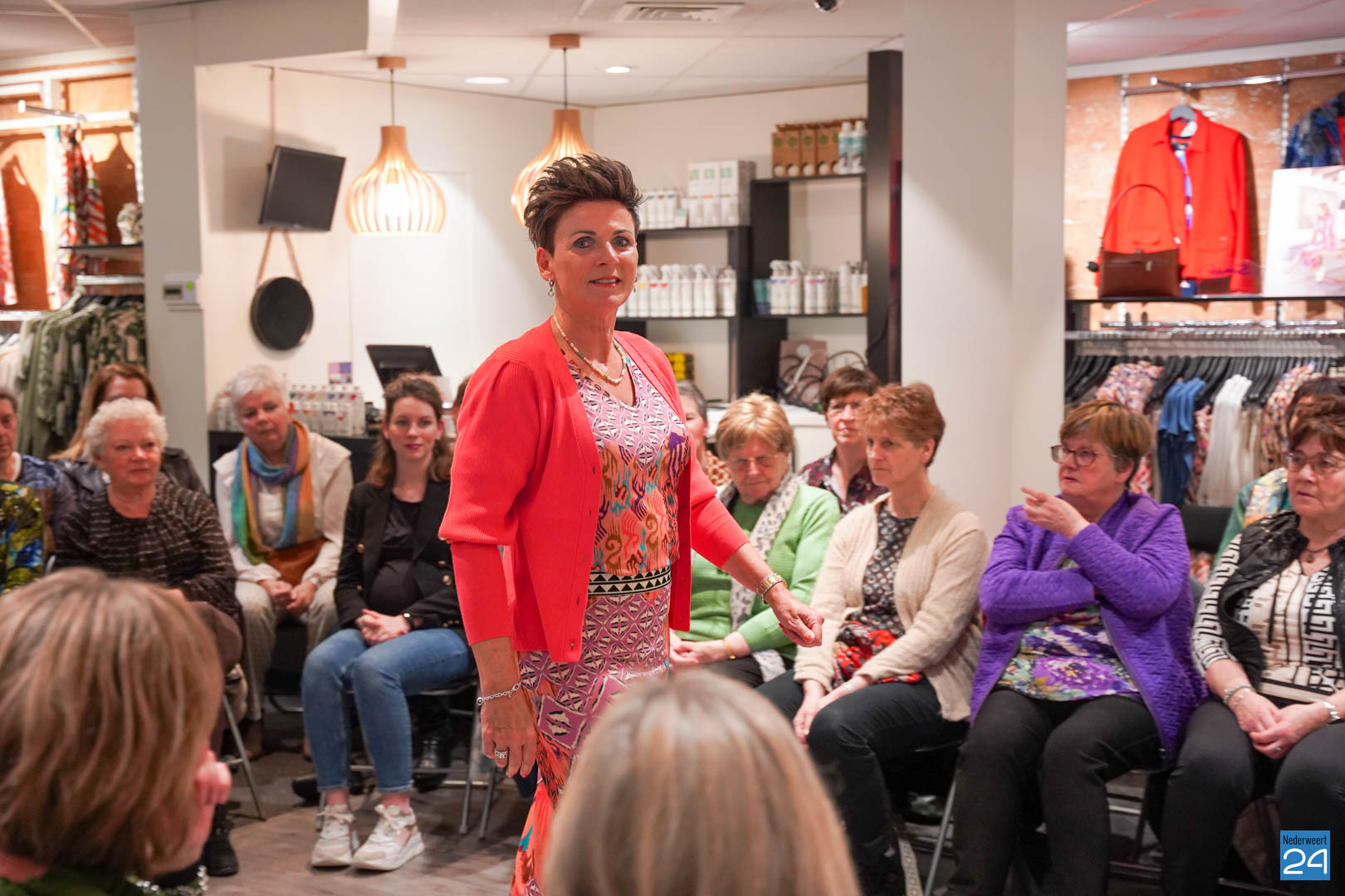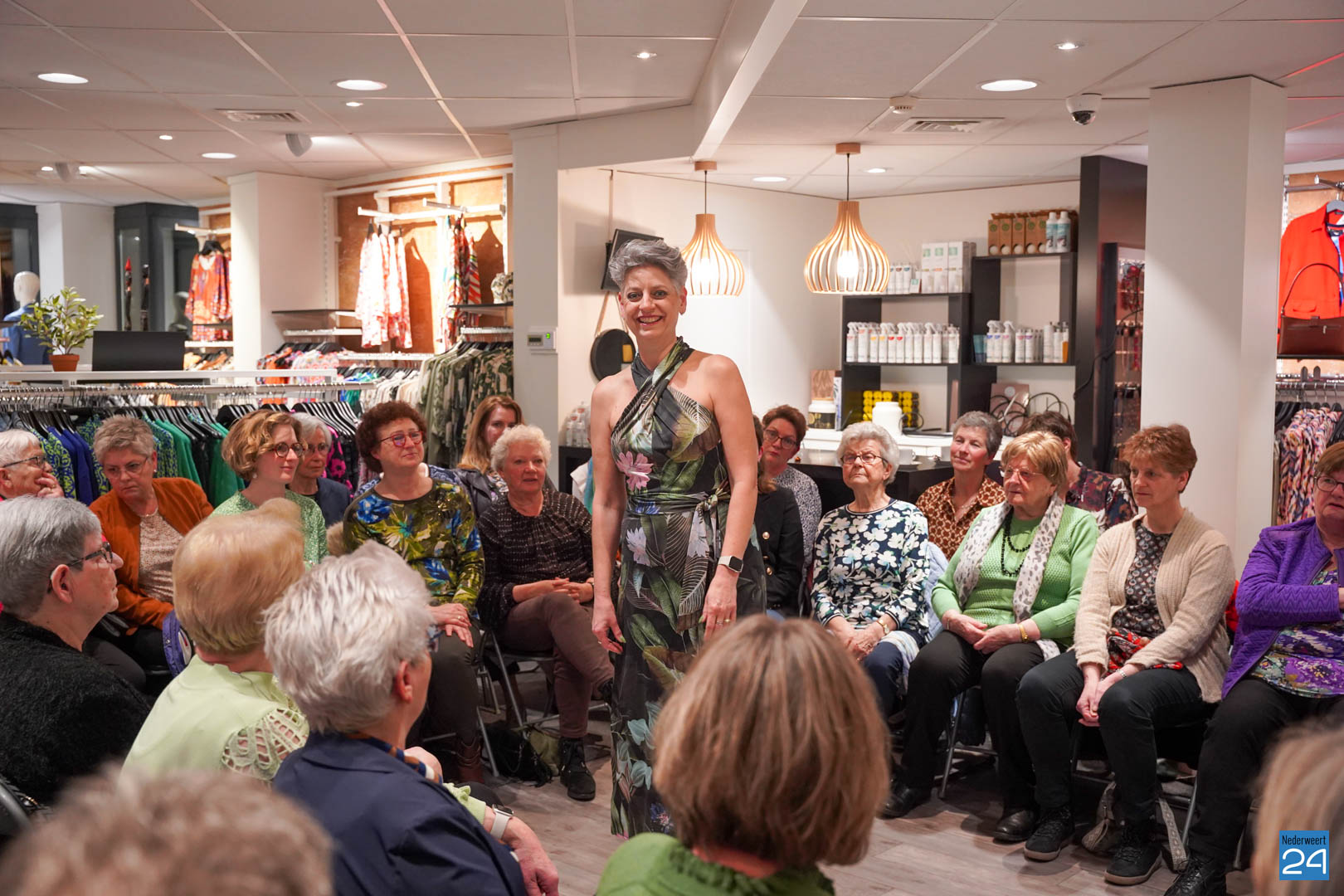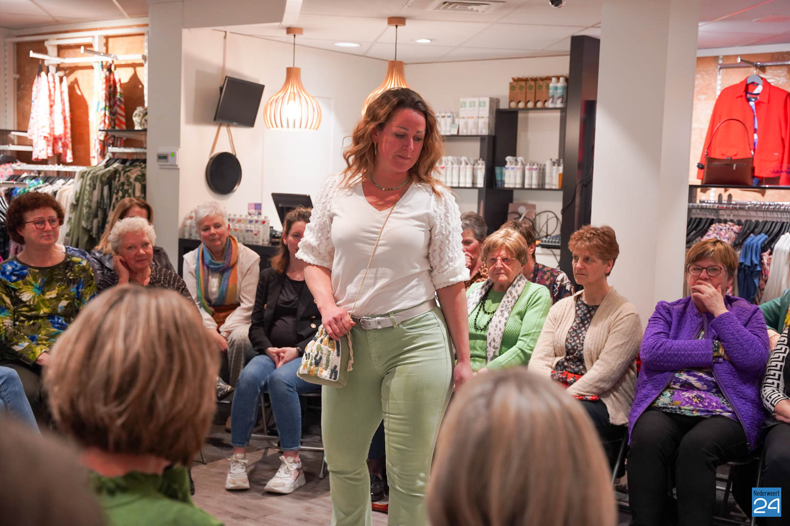 De collecties werden geshowd door de eigen mannequins van de winkels in Nederweert en Akima vertelde de aanwezigen over de trends van dit voorjaar. Ook schoenen van Durlinger werden geshowd.