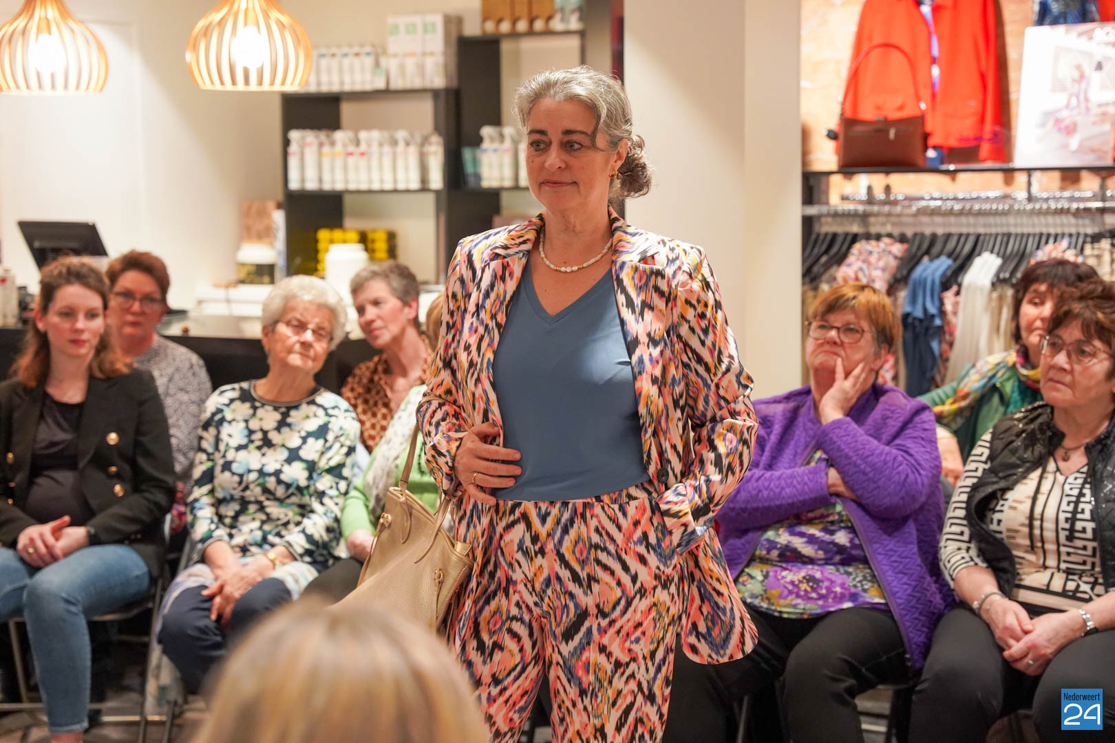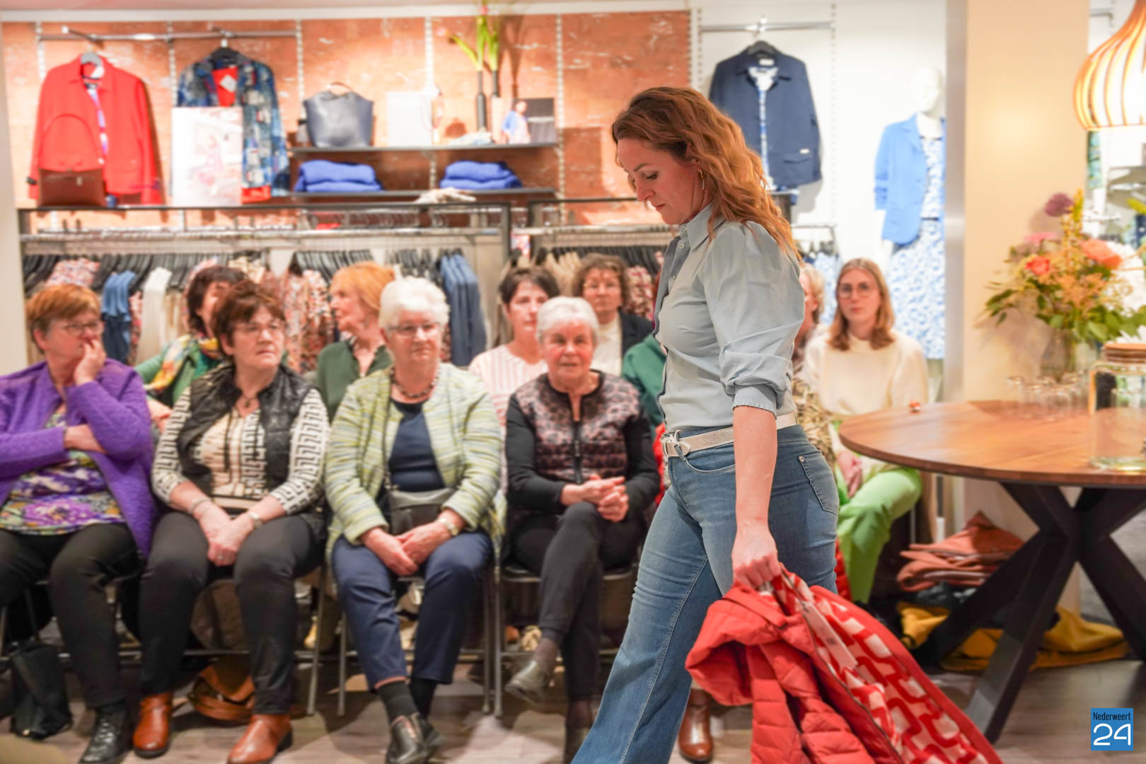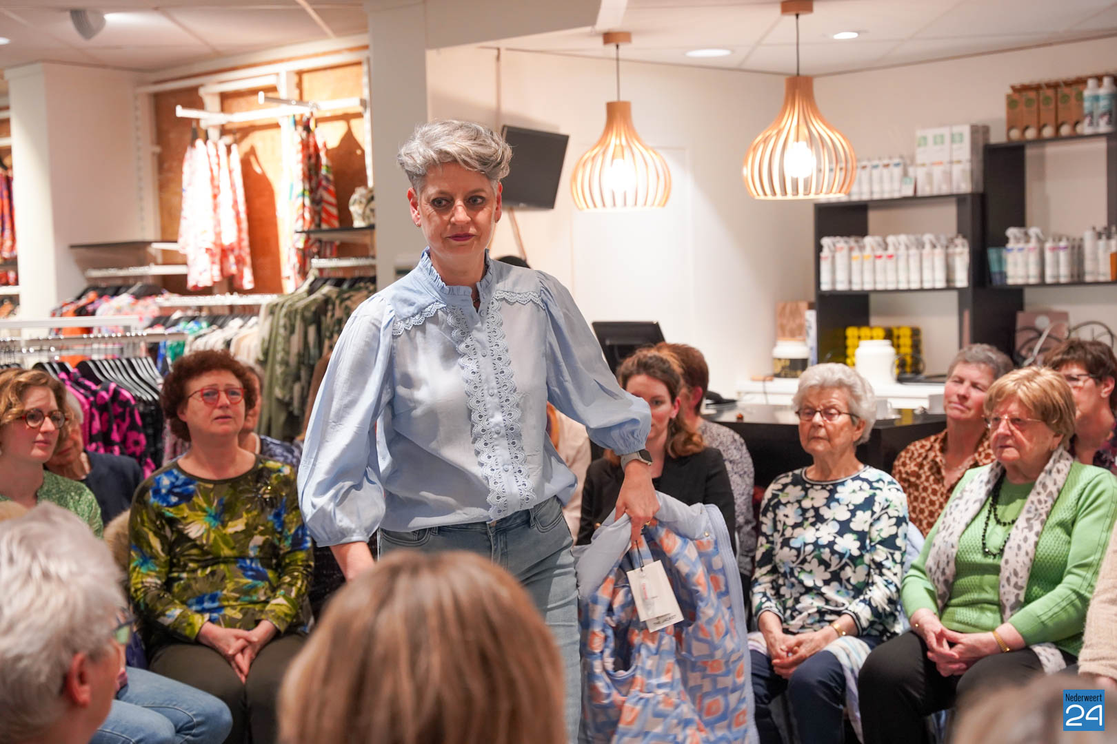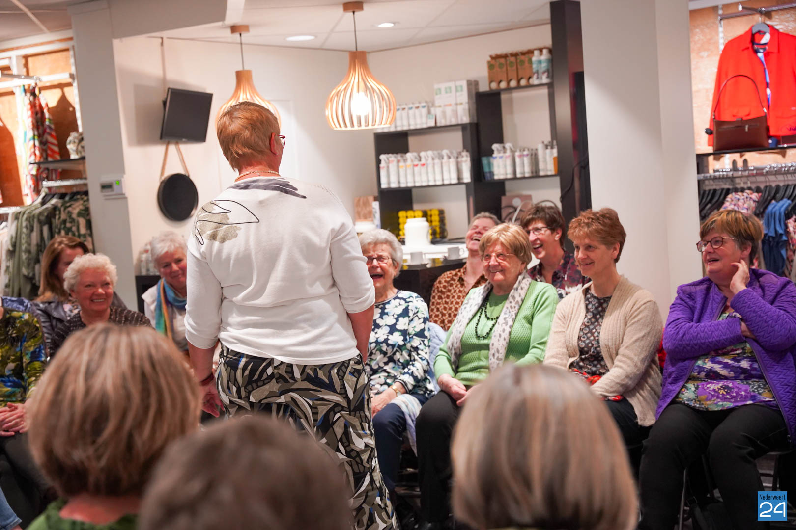 De collecties werden geshowd door de eigen mannequins van de winkels in Nederweert en Akima vertelde de aanwezigen over de trends van dit voorjaar. Ook schoenen van Durlinger werden geshowd.