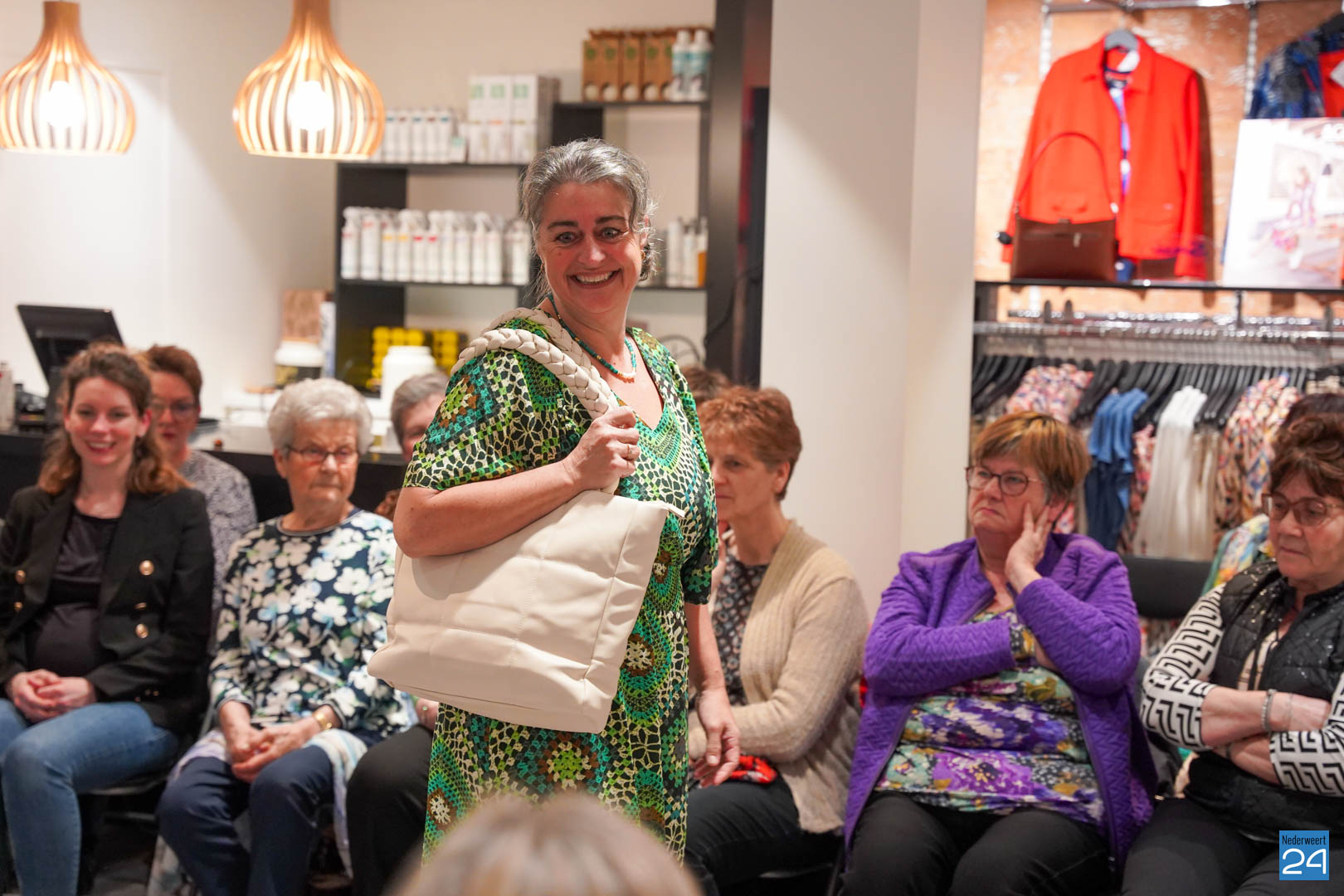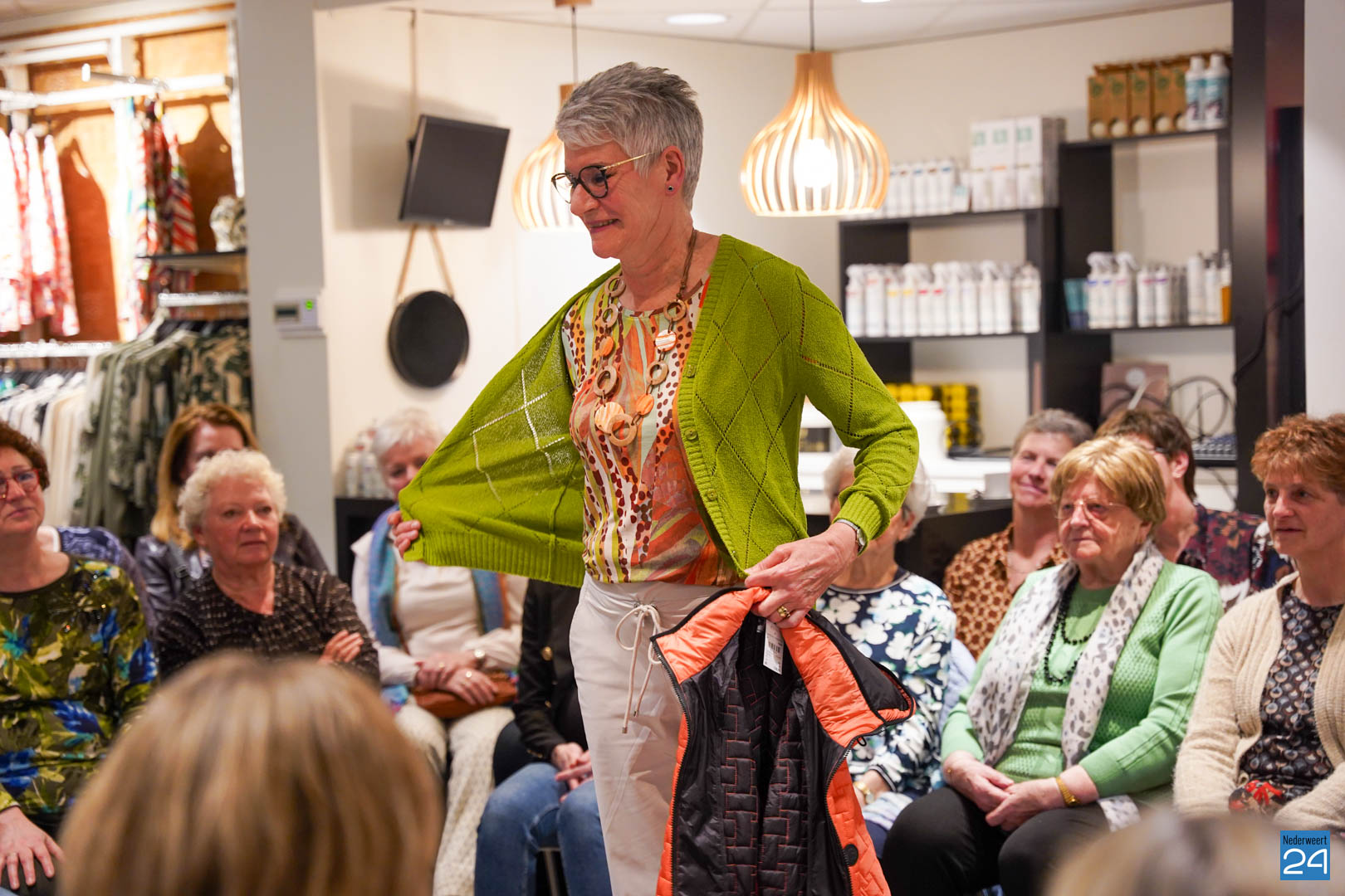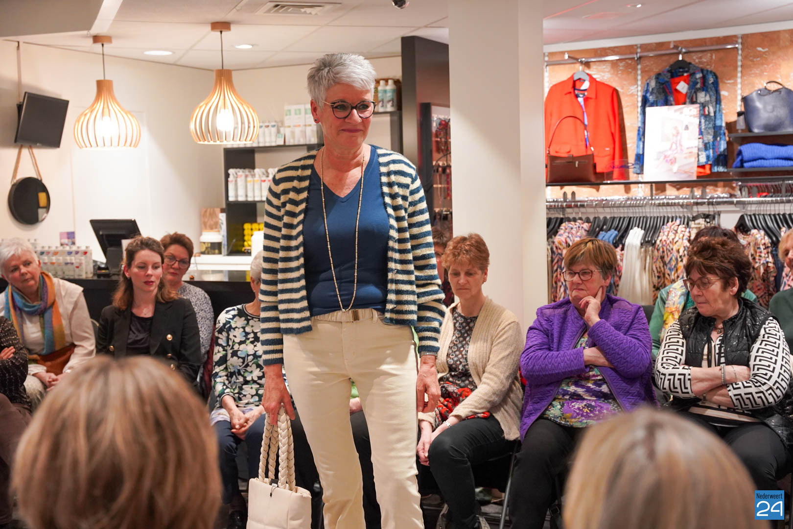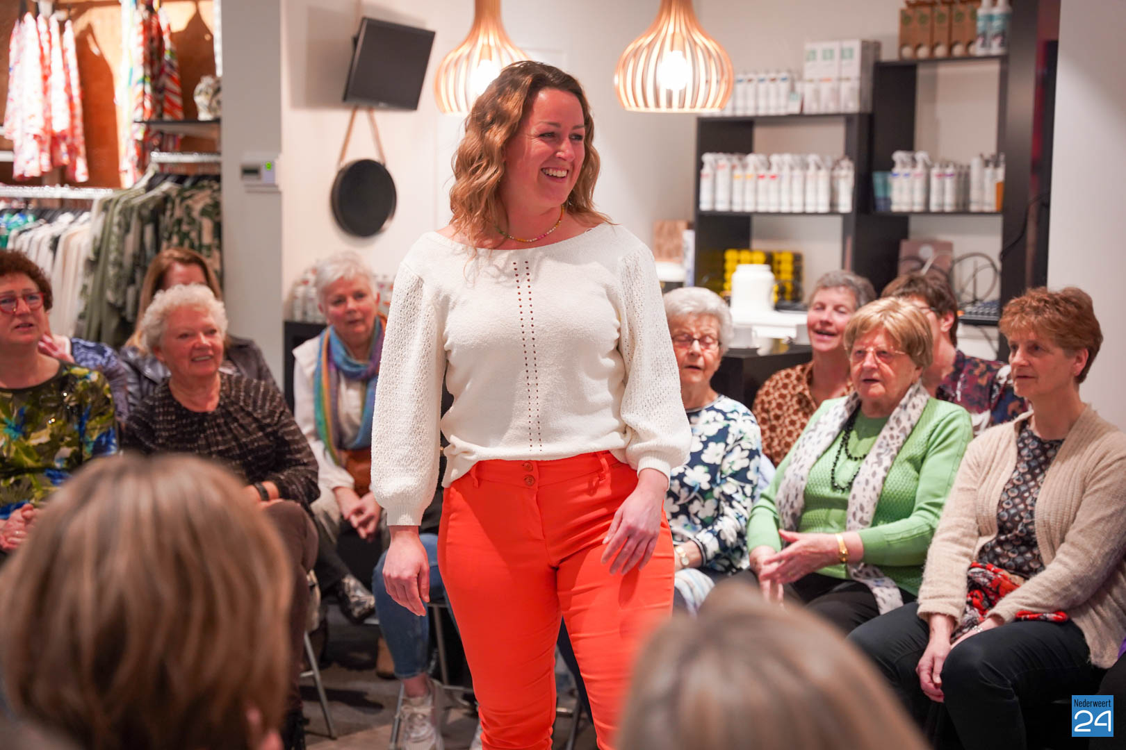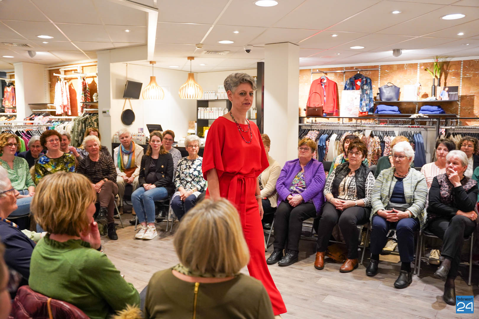De collecties werden geshowd door de eigen mannequins van de winkels in Nederweert en Akima vertelde de aanwezigen over de trends van dit voorjaar. Ook schoenen van Durlinger werden geshowd.