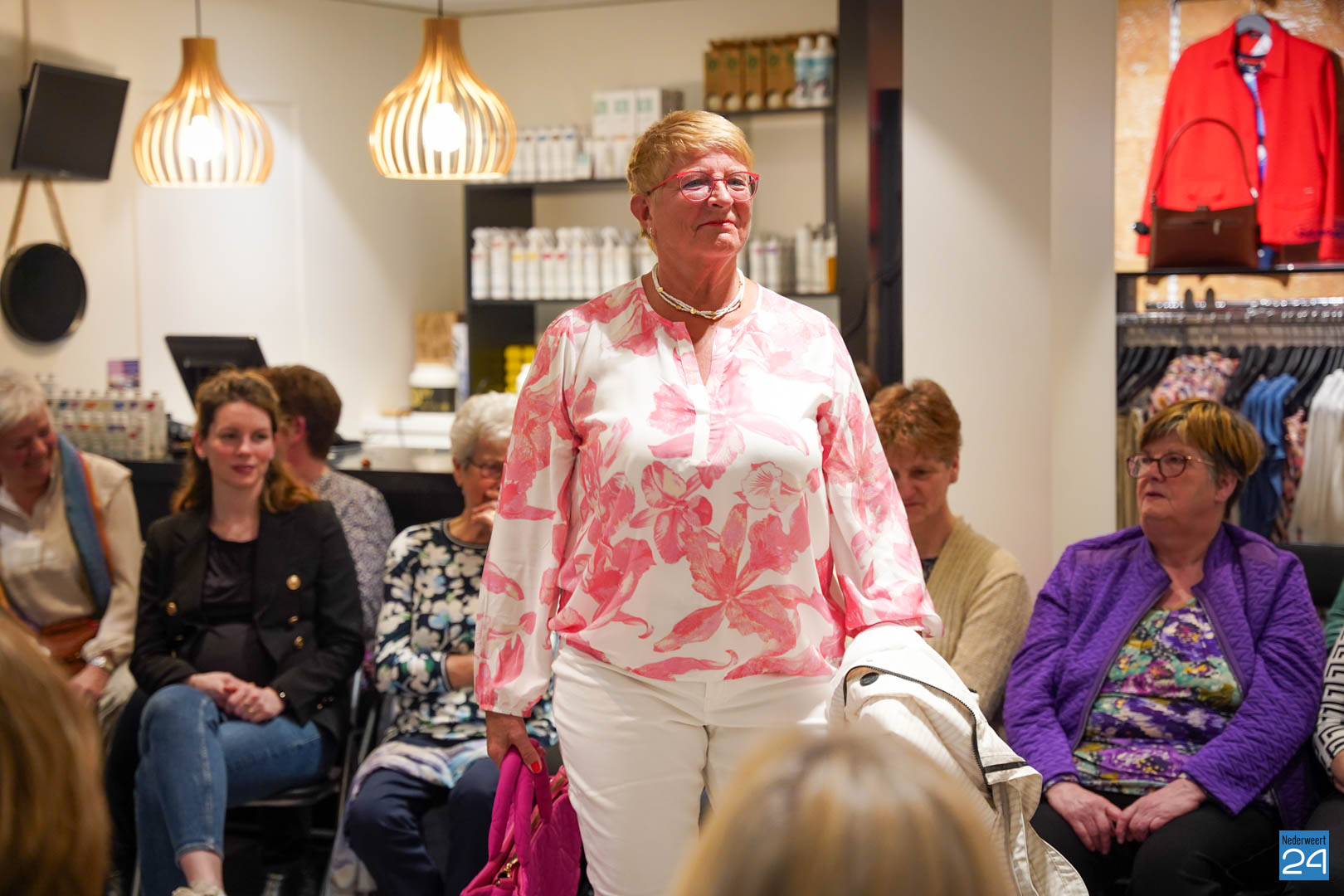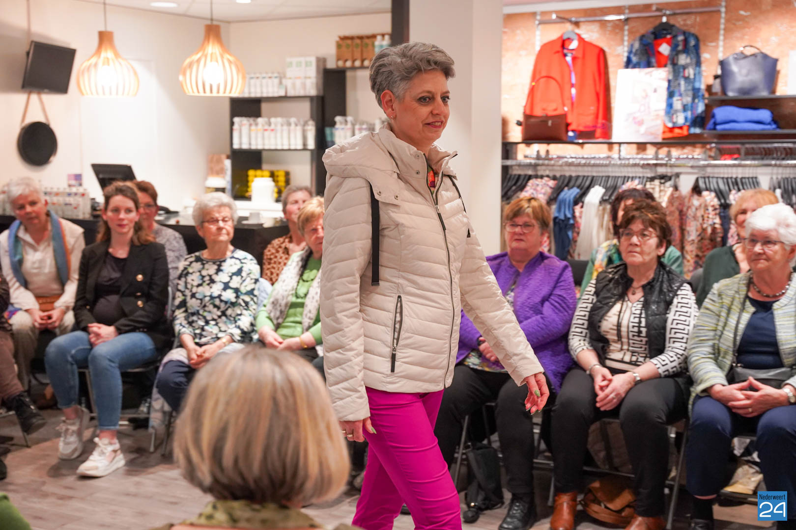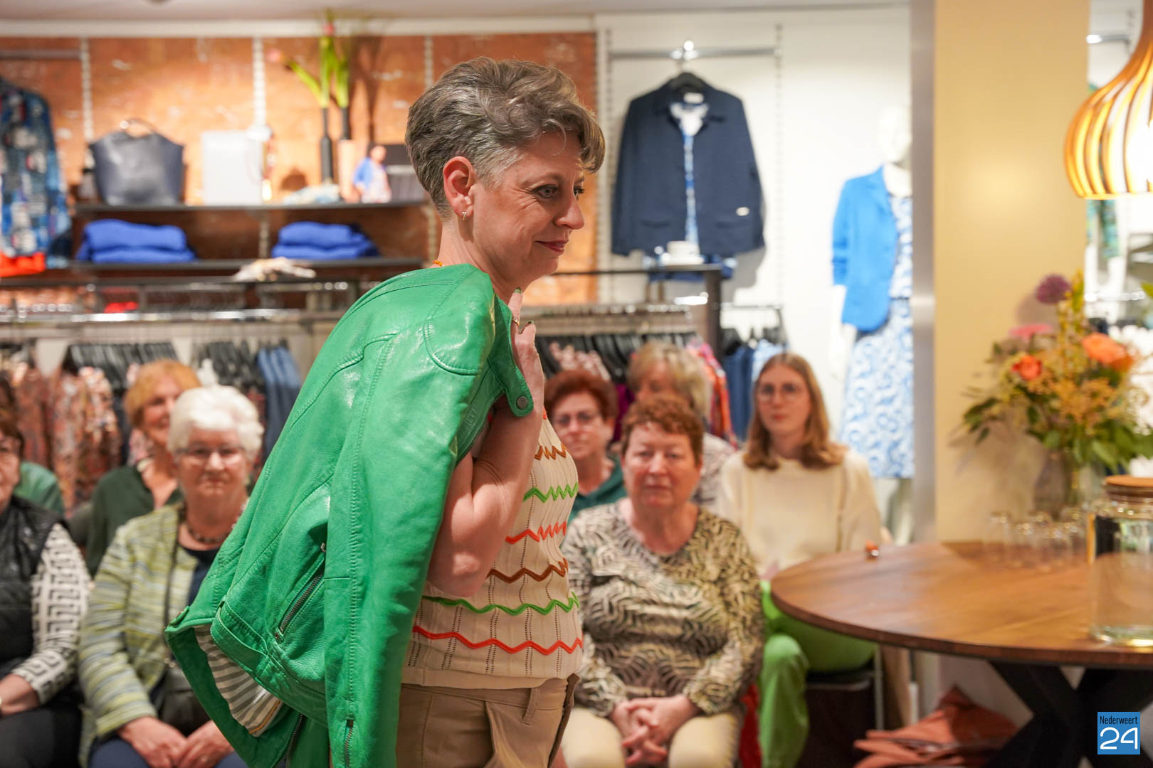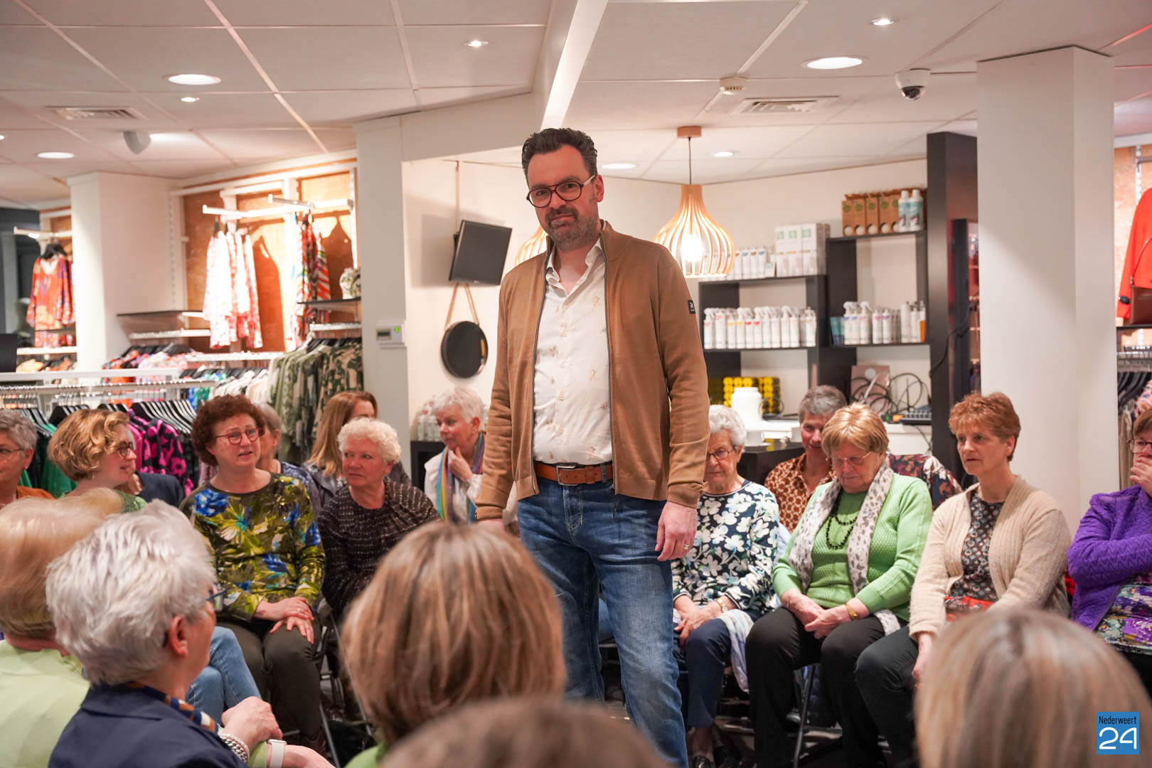 De collecties werden geshowd door de eigen mannequins van de winkels in Nederweert en Akima vertelde de aanwezigen over de trends van dit voorjaar. Ook schoenen van Durlinger werden geshowd.