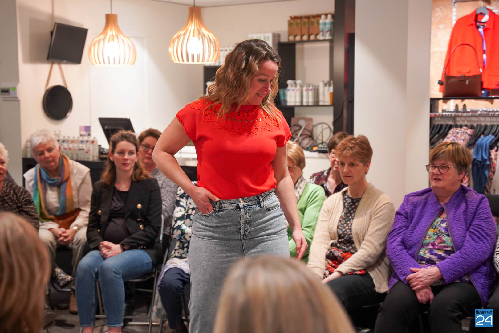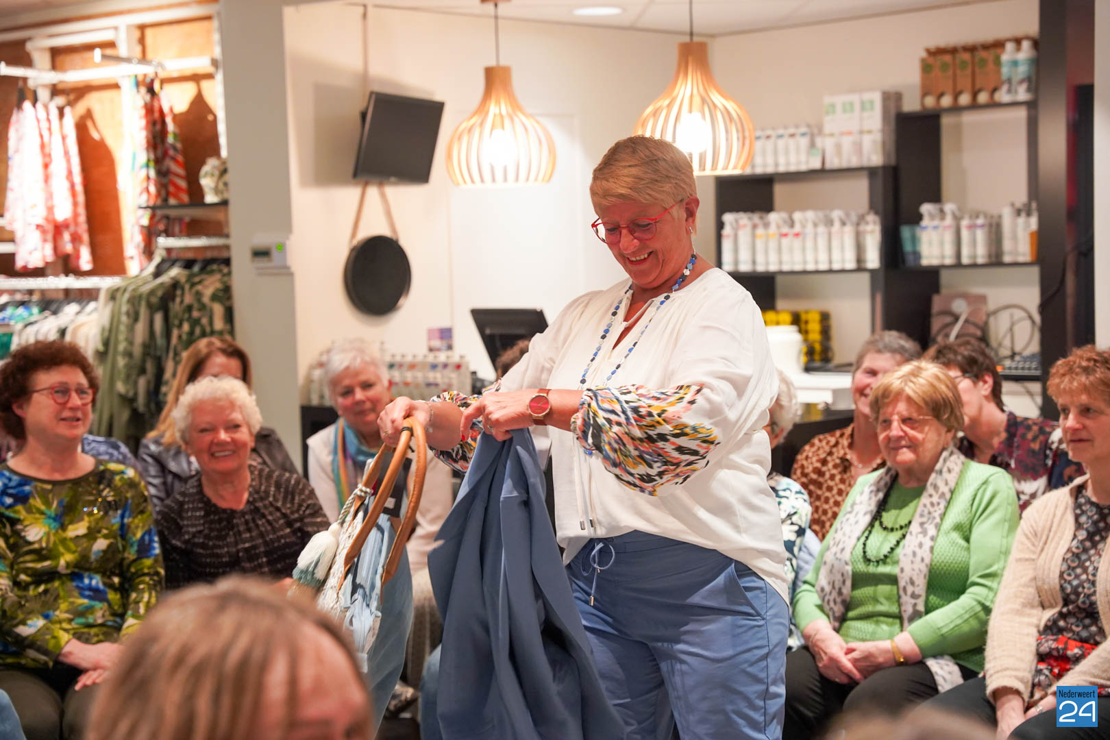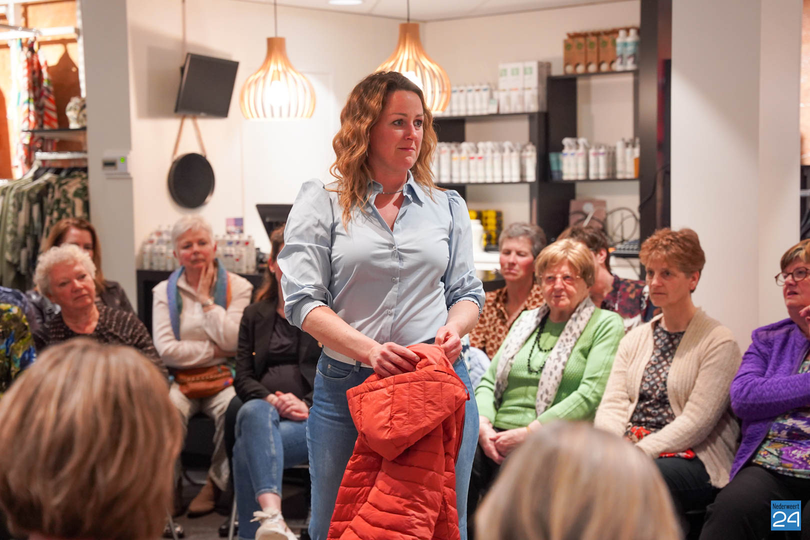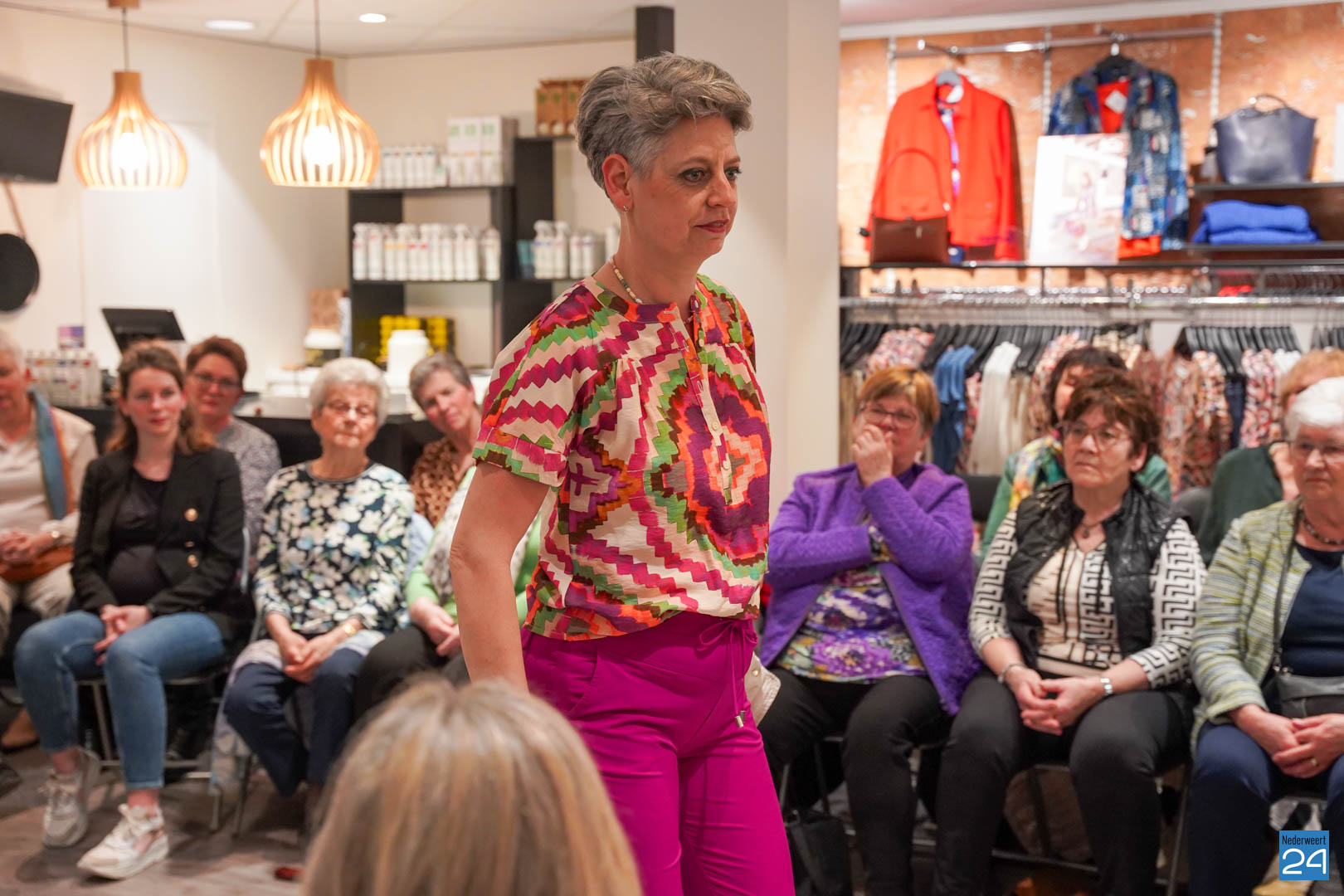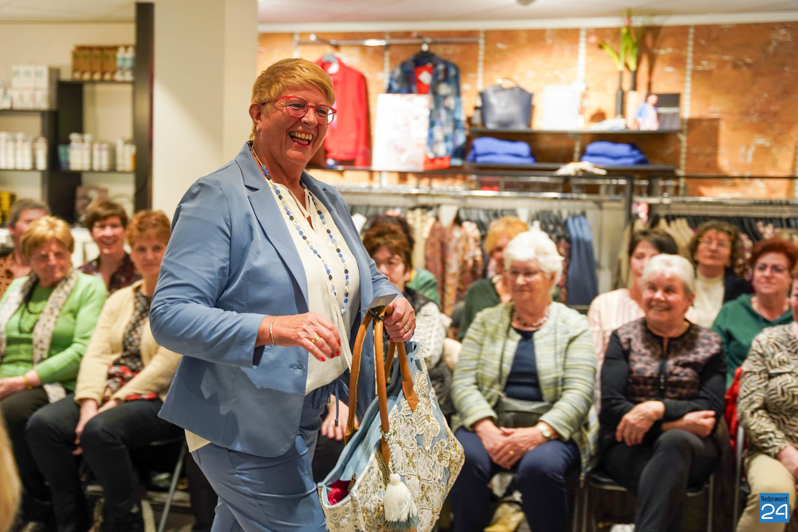De collecties werden geshowd door de eigen mannequins van de winkels in Nederweert en Akima vertelde de aanwezigen over de trends van dit voorjaar. Ook schoenen van Durlinger werden geshowd.