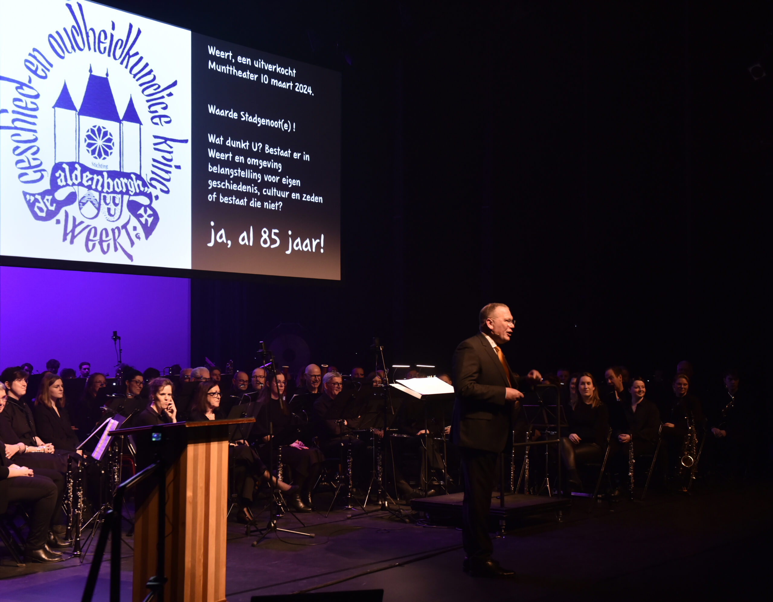 Het Geschied- en Oudheidkundig Genootschap Aldenborgh viert dit jaar zijn 17e lustrum. Op zondag 10 maart presenteerde de Aldenborgh, aangevoerd door Peter Korten, in eendrachtelijke samenwerking met de Erfgoedgemeenschap Nederweert en samen met de onvolprezen Harmonie St. Joseph 1880 een feestelijk programma in een uitverkocht Munttheater onder de titel ‘Wereldse Weertenaren in de geschiedenis’.
