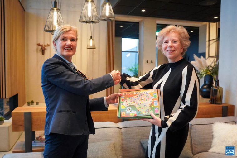 Hotel Rosveld is een van de nieuwste leden van de Ondernemers Vereniging Nederweert (OVN). Speciaal voor deze gelegenheid overhandigde Karin Wering namens de OVN een welkomstgeschenk in de vorm van het bordspel ‘Ontdek Nederweert’. Ook stelde de OVN hotelmanager Mieke Loverbosch een aantal vragen.
