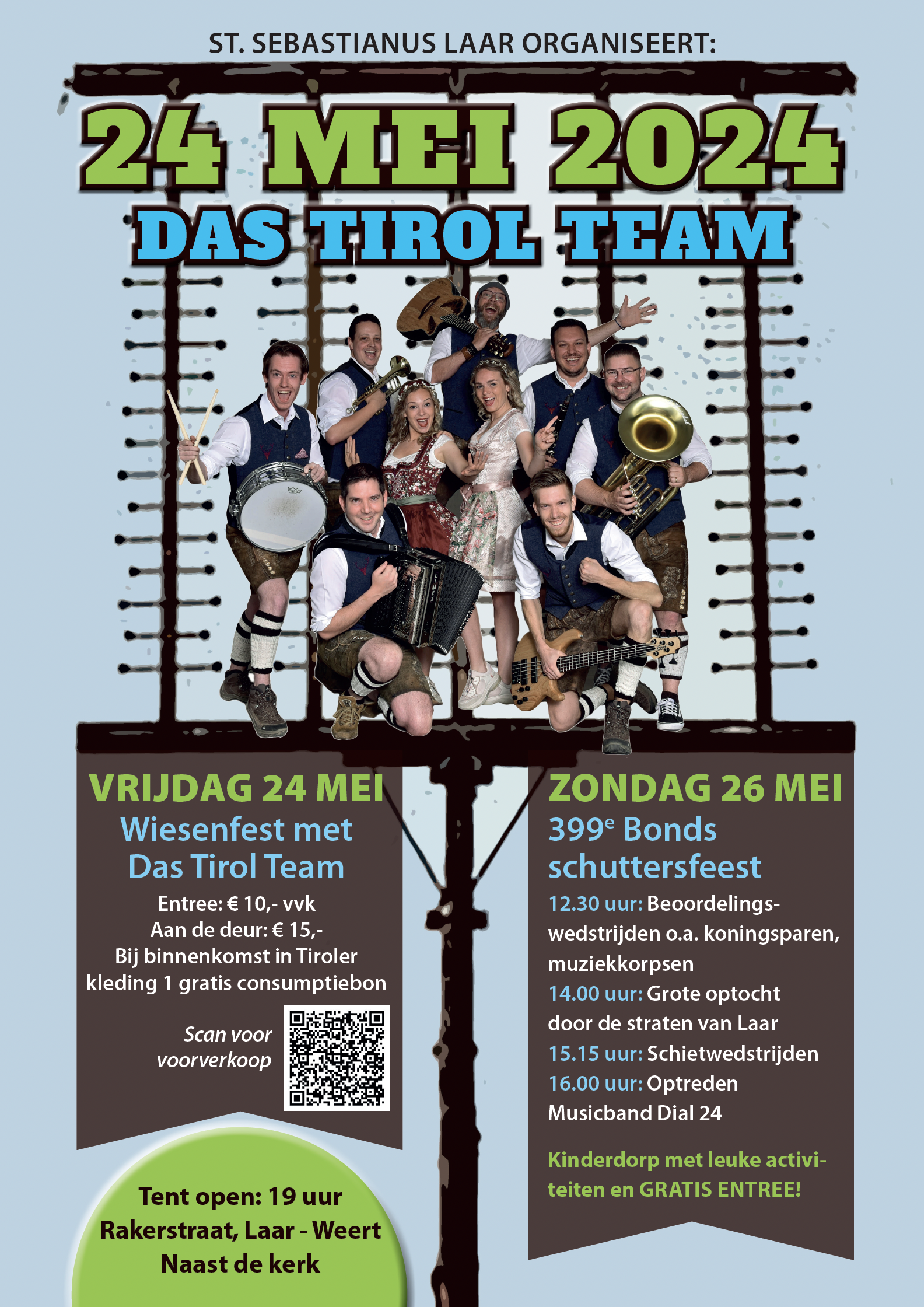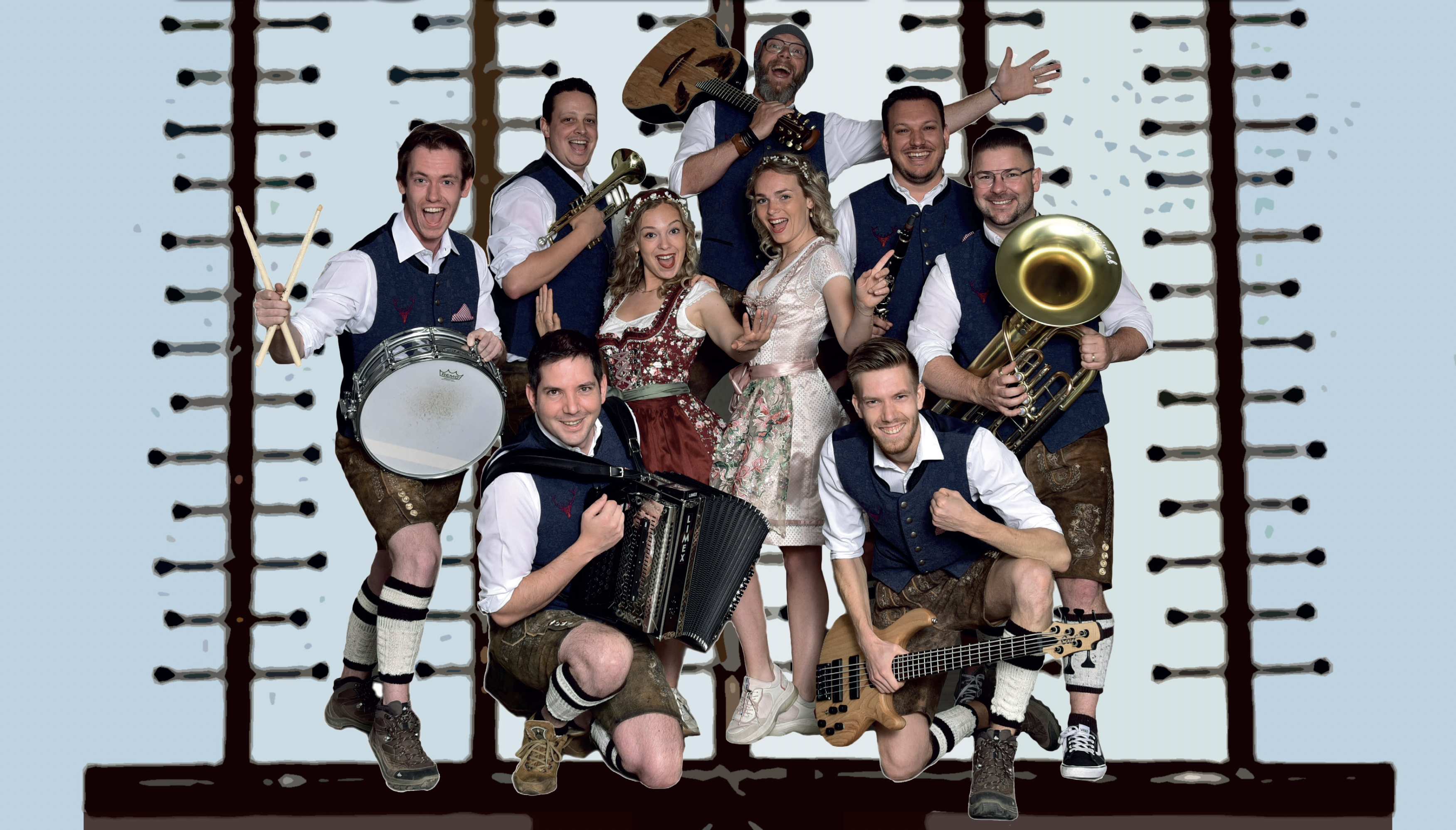 De muziek wordt verzorgd door Das Tirol Team. Das Tirol Team is de ultieme polkaband die elke gelegenheid laat knallen! Met strakke blazers, een vette tuba en beats die je hart sneller doen kloppen, brengen zij een onweerstaanbare energie naar elk podium. Deze 9-koppige live band in Tiroler stijl, tovert wereldhits om tot opzwepende polka’s met een verassende twist die je niet wilt missen!
