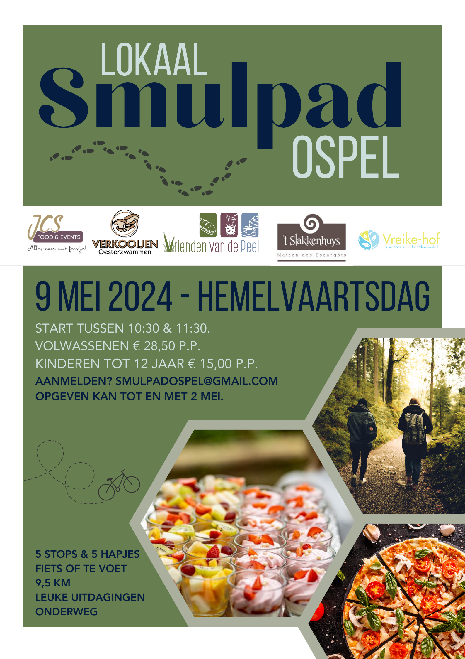 Ga maar alvast in de startblokken staan voor Hemelvaartsdag, want in Ospel gaan ze op 9 mei lokaal smullen! Loop of fiets gezellig met je vrienden, familie of gezin een rondje door Ospel om lokale producten te proeven. En uiteraard wandelen je niet zomaar van punt A naar B, maar mogen er onderweg ook leuke opdrachten & vragen beantwoord worden. Dat wordt gegarandeerd een gezellige dag.