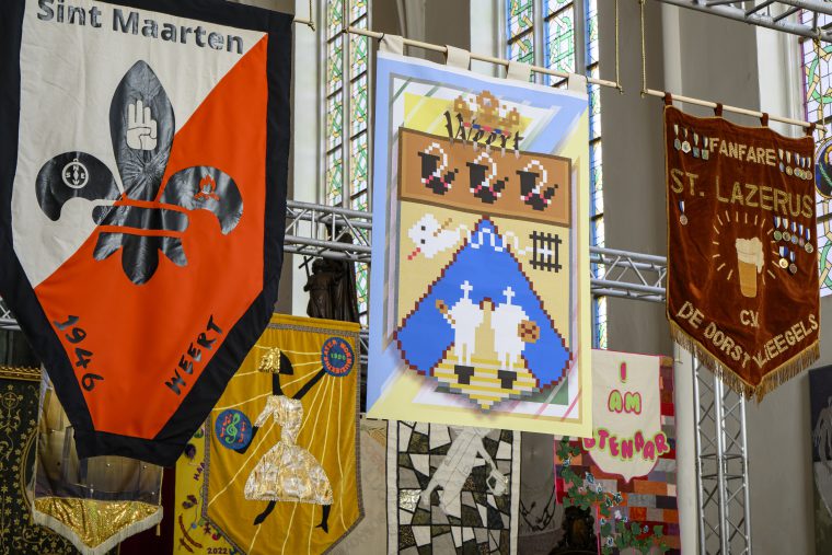 In de tentoonstelling in de Paterskerk zijn de recent gemaakte Weerter vaandels te zien, aangevuld met historische exemplaren van diverse verenigingen en uit de collectie van Museum W. Op uitnodiging van het museum hebben verenigingen, clubs, vriendengroepen en andere gezelschappen een nieuw verenigingsvaandel gemaakt. De bonte verzameling vaandels wordt nog tot en met 6 april tentoongesteld in de Paterskerk van Weert.