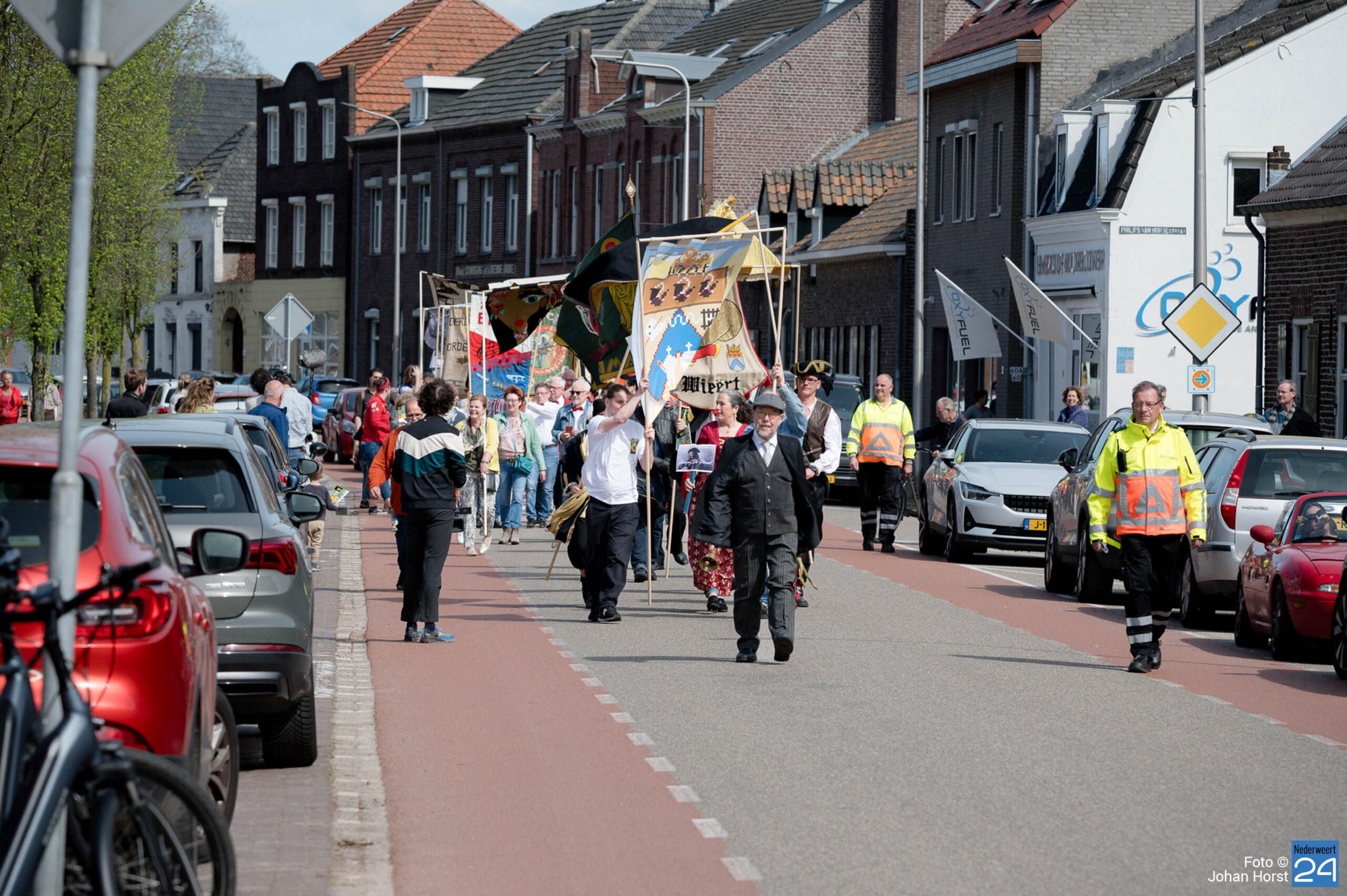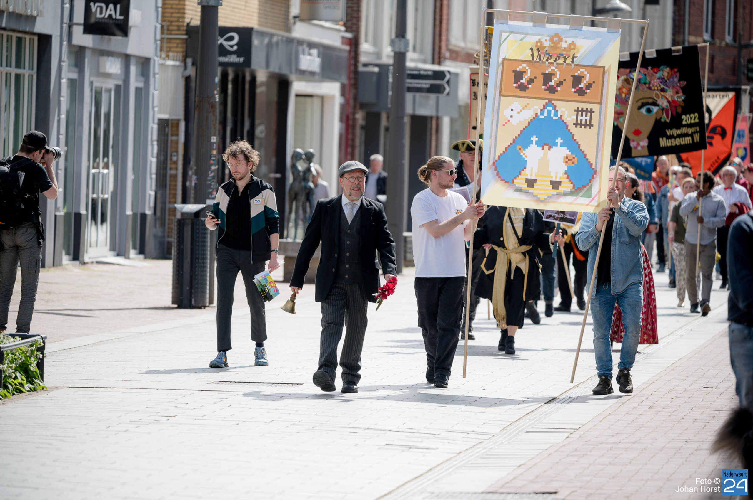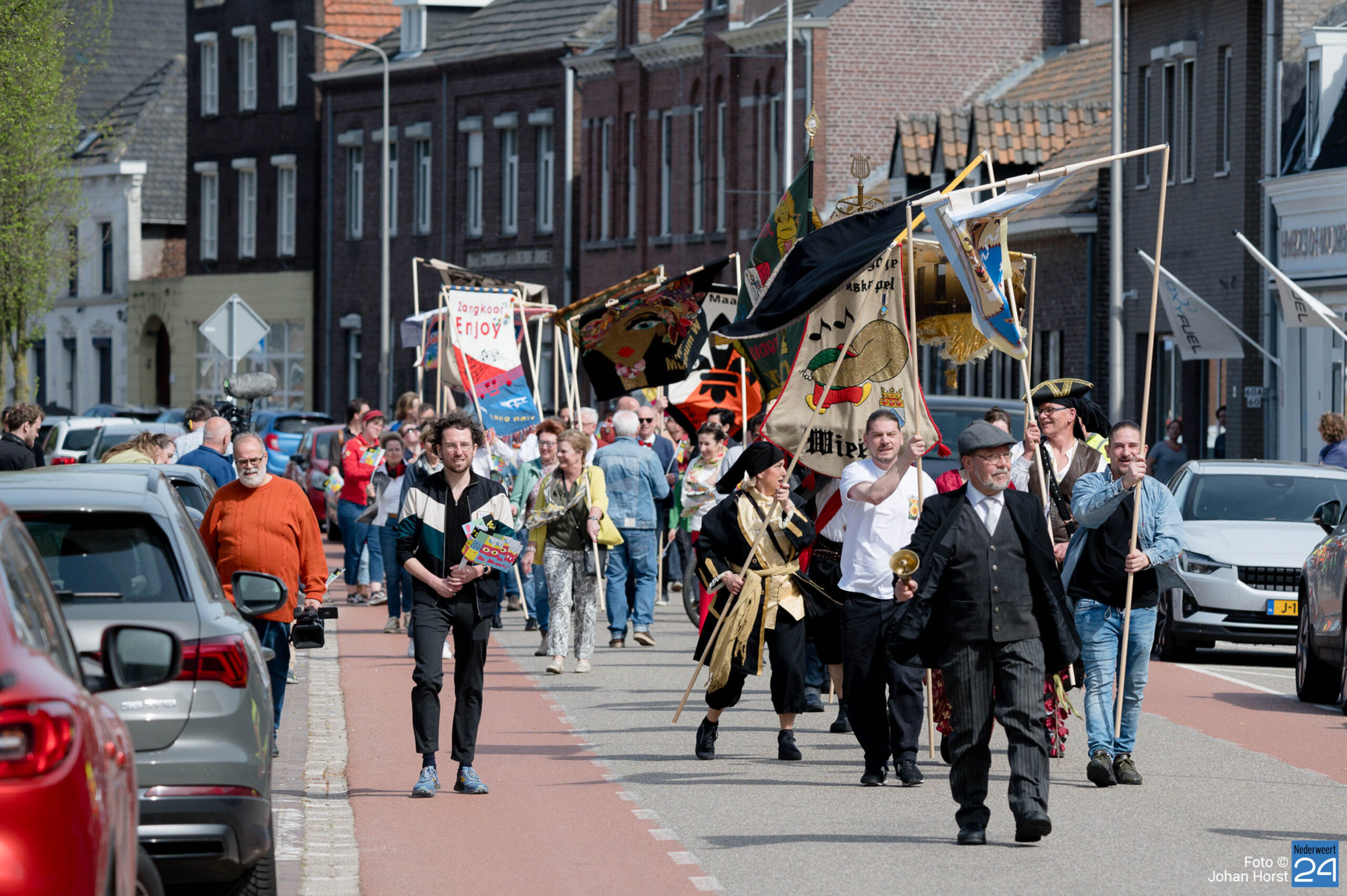 Op zondag 7 april tussen 14:00 en 15:00 uur trok een mooie stoet door de binnenstad van Weert. Deelnemers aan het project Vaandels en Weert toonden trots hun vaandels. De Umbelder (Theo Vialle) begeleidde de stoet. De route liep vanaf de Paterskerk, via het stadspark, Beekstraat, Muntpassage, Nieuwe Markt, Markt (Museum W) en Oelemarkt weer terug naar de Paterskerk.