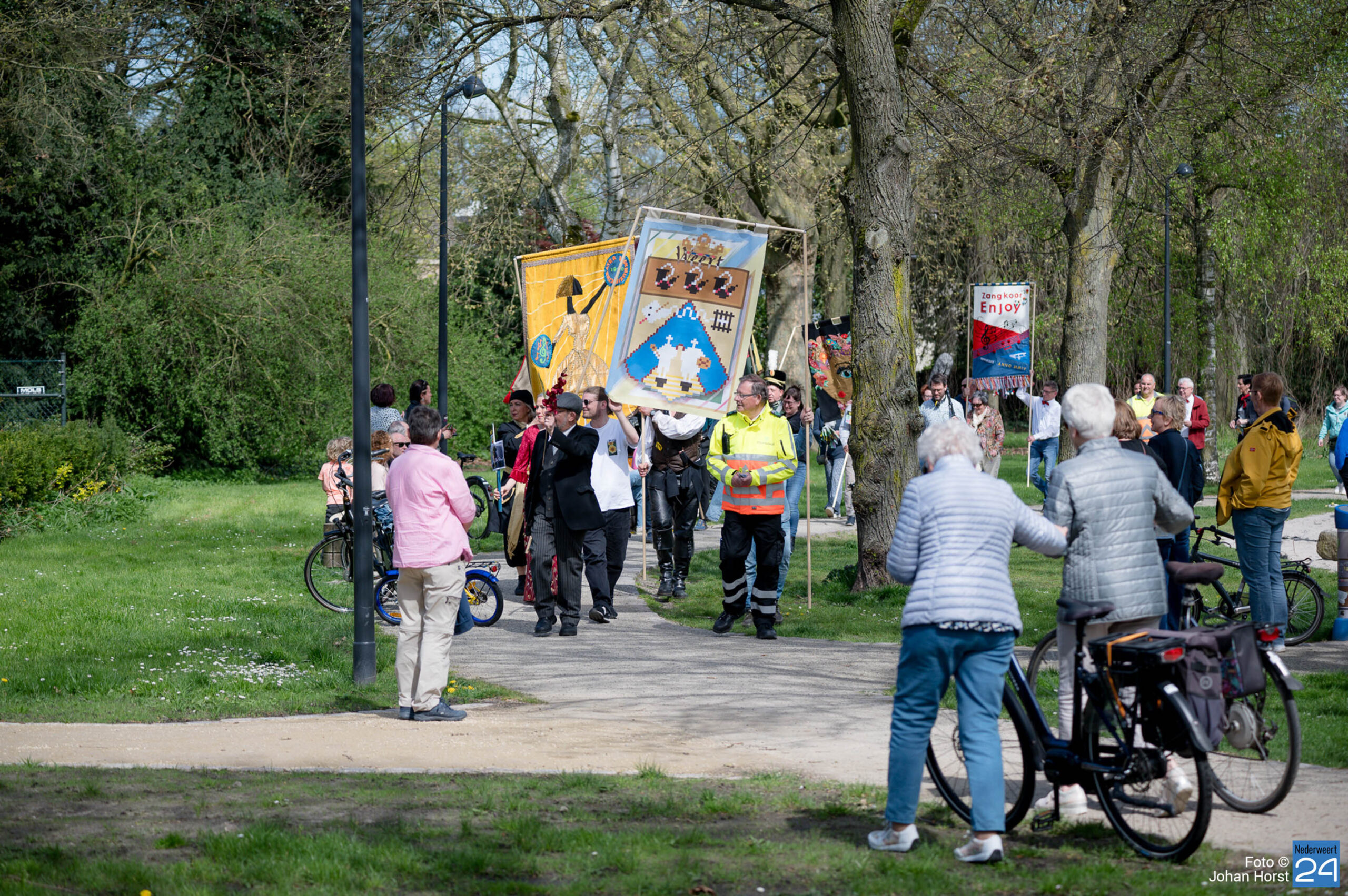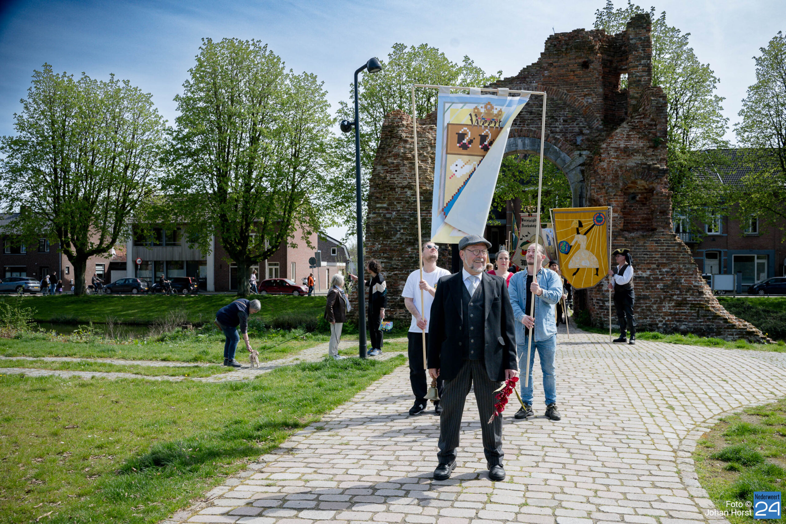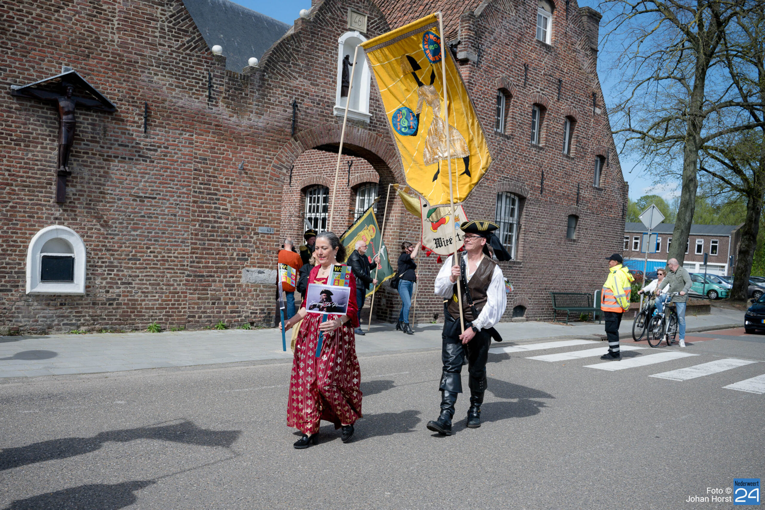 Op zondag 7 april tussen 14:00 en 15:00 uur trok een mooie stoet door de binnenstad van Weert. Deelnemers aan het project Vaandels en Weert toonden trots hun vaandels. De Umbelder (Theo Vialle) begeleidde de stoet. De route liep vanaf de Paterskerk, via het stadspark, Beekstraat, Muntpassage, Nieuwe Markt, Markt (Museum W) en Oelemarkt weer terug naar de Paterskerk.