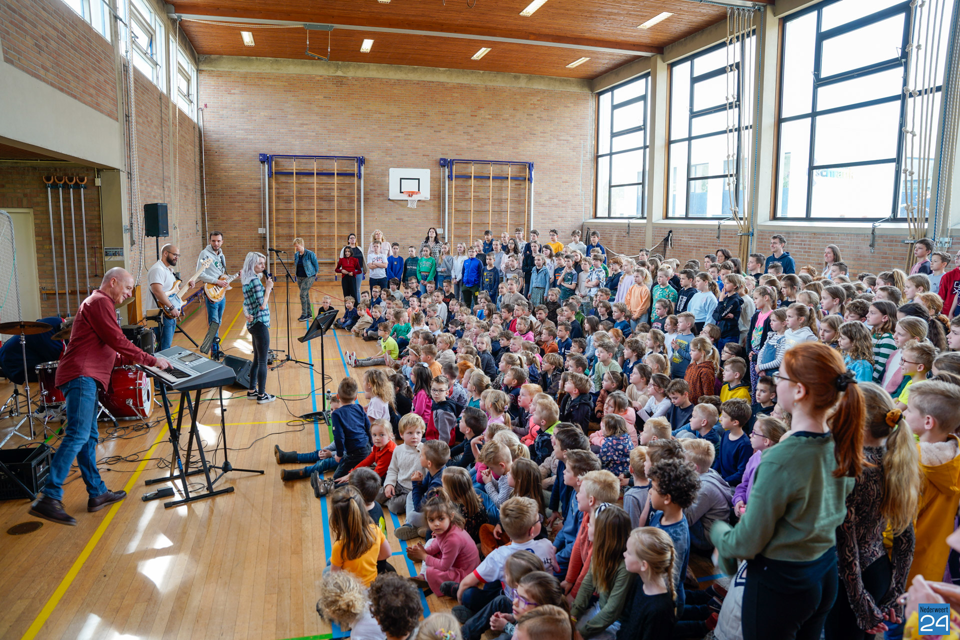 Gisteren en vandaag verzorgde de RICK Rockpleinband optredens bij de basisscholen Budschop, De Tweesprong, De Zonnehof, De Schrank en De Kerneel. Deze muziekoptredens werden georganiseerd in het kader van de landelijke Kindermuziekweek. Vanmorgen namen we een kijkje bij De Schrank in Ospel. Alle leerlingen, van groep 1 t/m 8, genoten van een echt popconcert in de gymzaal. Het dak ging eraf!