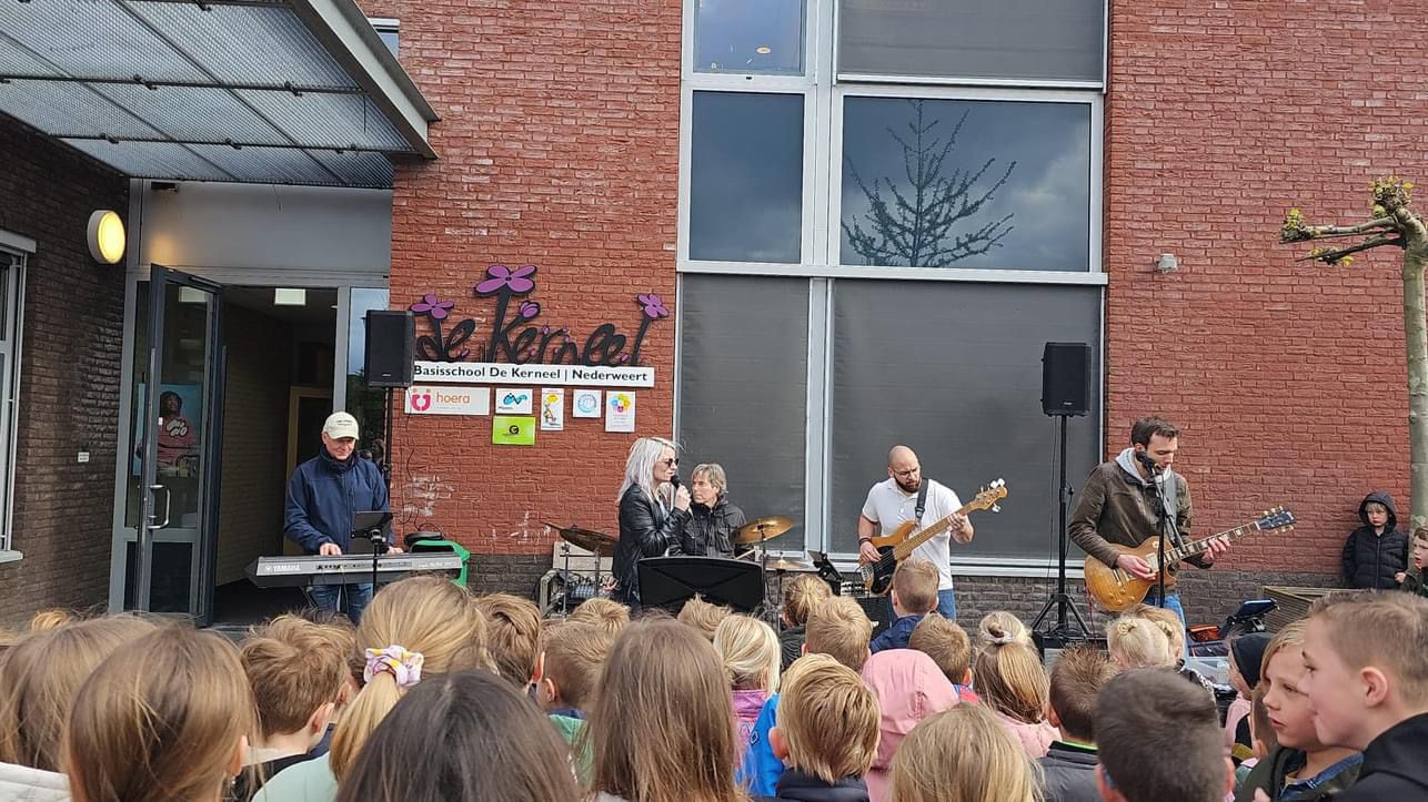 Gisteren en vandaag verzorgde de RICK Rockpleinband optredens bij de basisscholen Budschop, De Tweesprong, De Zonnehof, De Schrank en De Kerneel. Deze muziekoptredens werden georganiseerd in het kader van de landelijke Kindermuziekweek. Ook bij IKC de Kerneel in Nederweert genoten de leerlingen van groep 1 t/m 8 van een echt popconcert op de speelplaats van de school.
