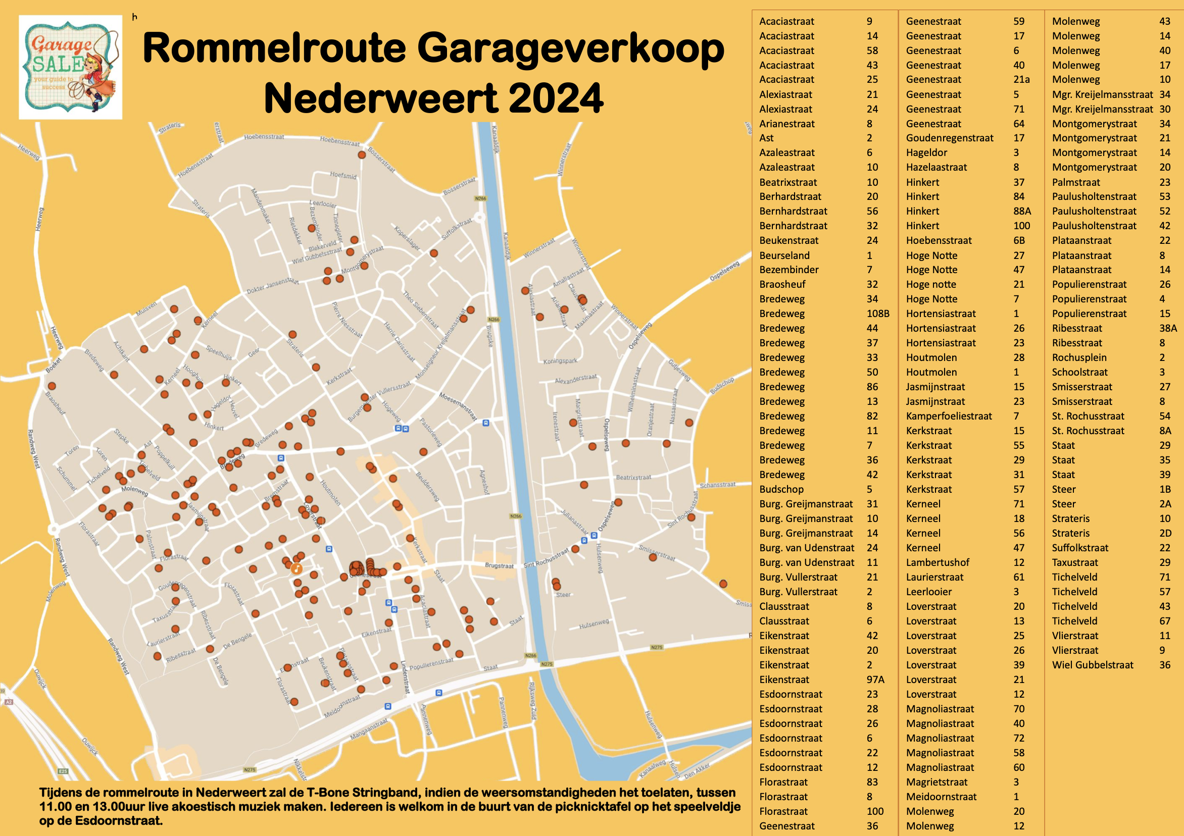 De Garagesale Rommelroute is een jaarlijks terugkerend evenement dat de lokale gemeenschap van Nederweert en Budschop samenbrengt voor een dag vol plezier, koopjes en gezelligheid. Met honderden deelnemers verspreid over het gehele dorp, is het een van de grootste rommelroutes in de regio.