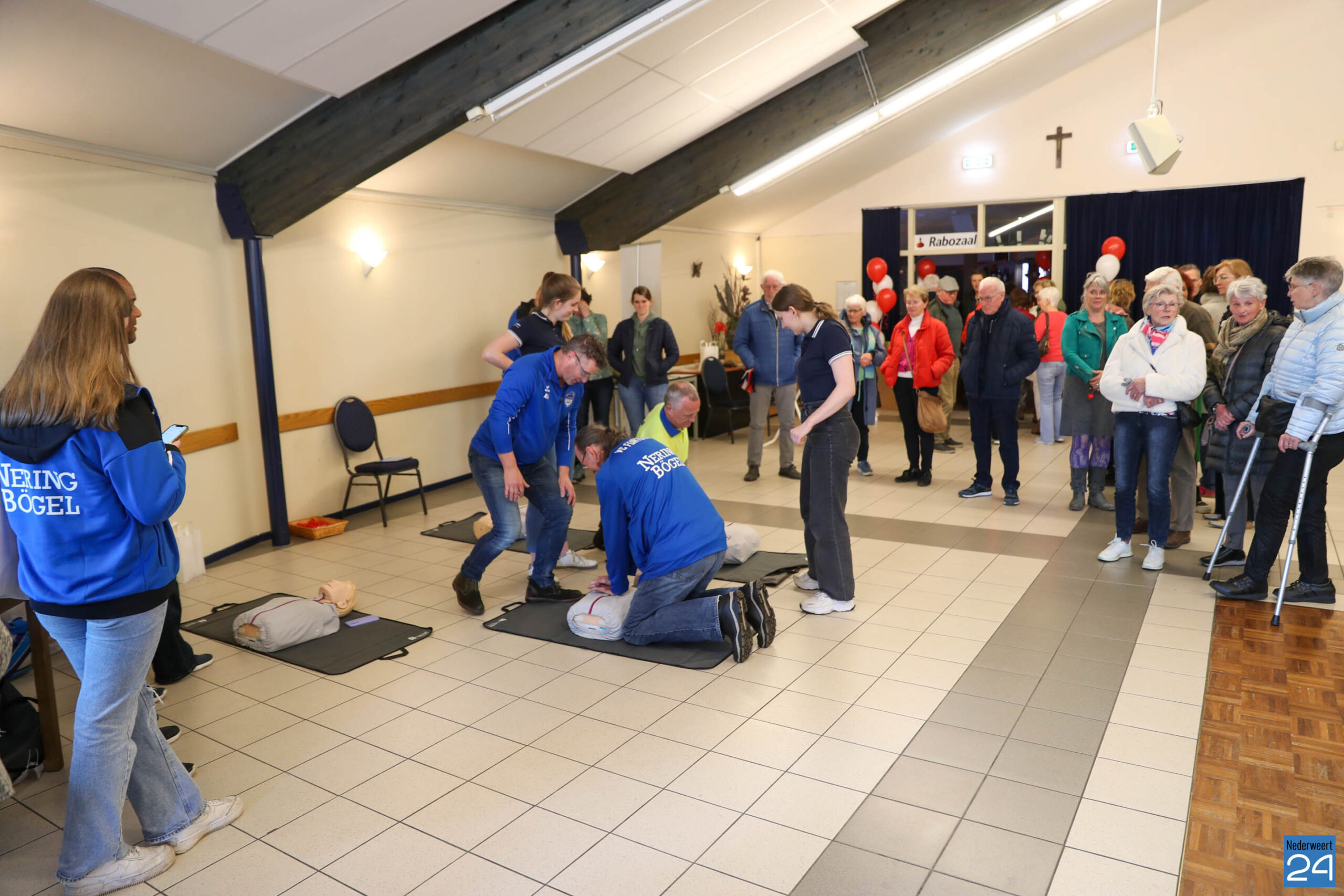 Vandaag vierde de stichting Hartslag voor Nederweert haar 10 jarig bestaan met een leerzaam evenement in gemeenschapshuis Haaze-Hoof en op het Aerthijsplein in Ospel. Er waren demonstraties, een informatiemarkt, workshops, lezingen, kinderactiviteiten, livemuziek en een reanimeer-challenge voor teams! Het hoogte punt van de dag was de complete ‘nabootsing van een reanimatie‘. Vanaf de melding op de meldkamer tot aan het afvoeren van de patiënt via de ambulance. Hierdoor kregen de toeschouwers een goed beeld van alles wat er gebeurd tijdens een reanimatie oproep van Hartslag voor Nederweert.