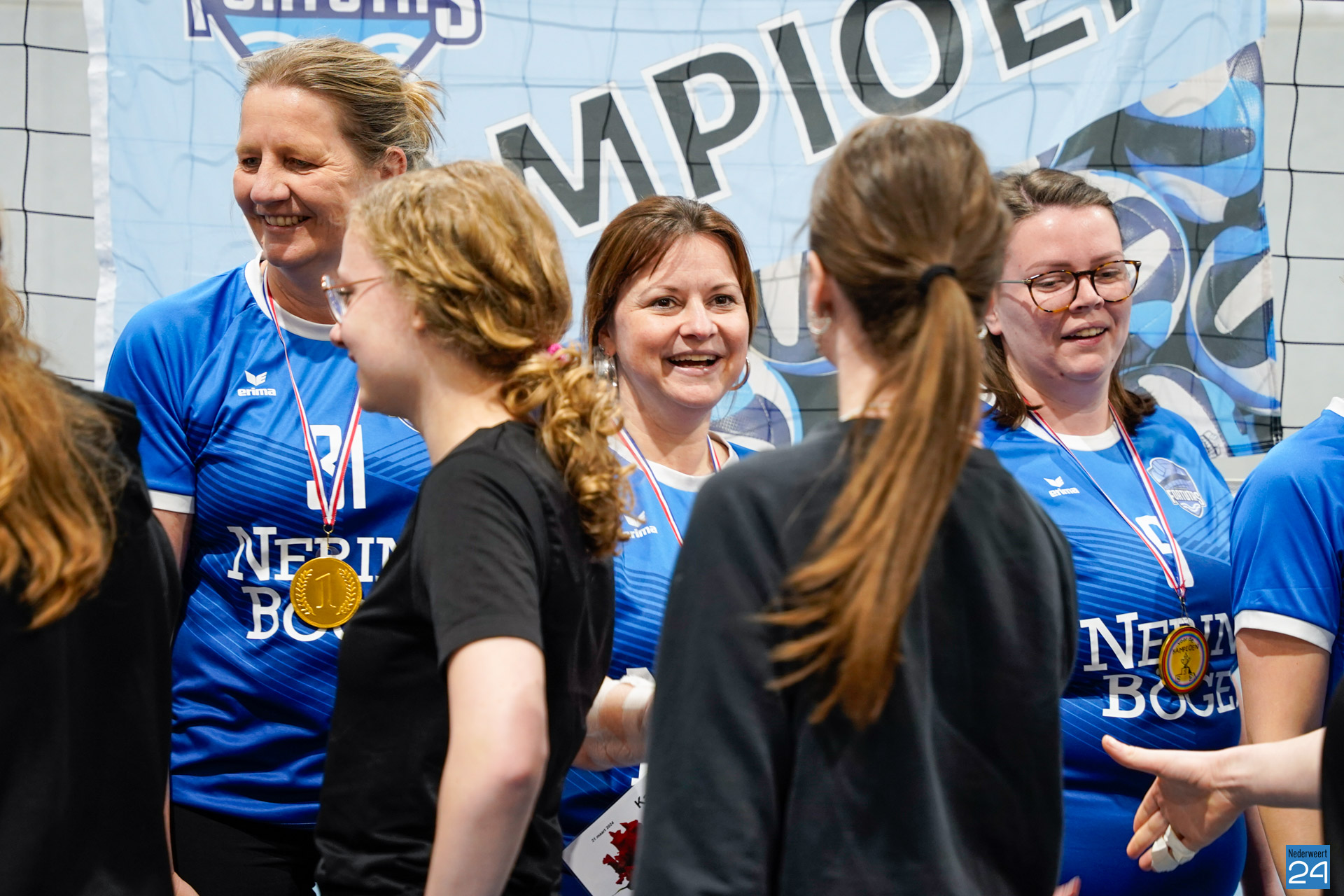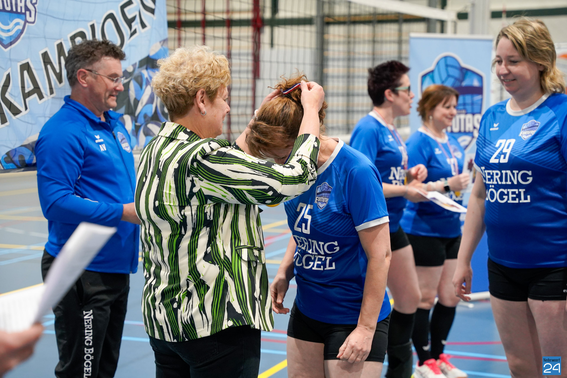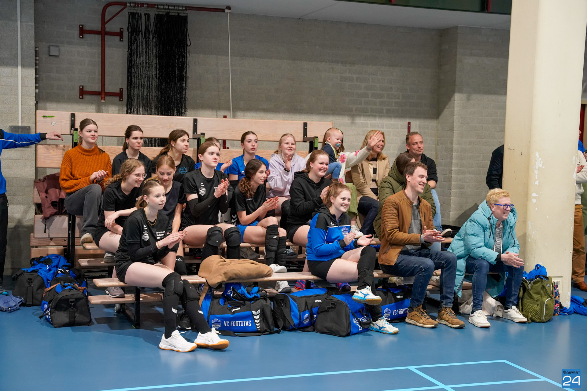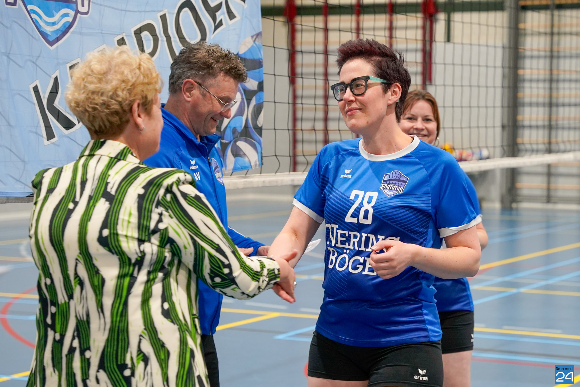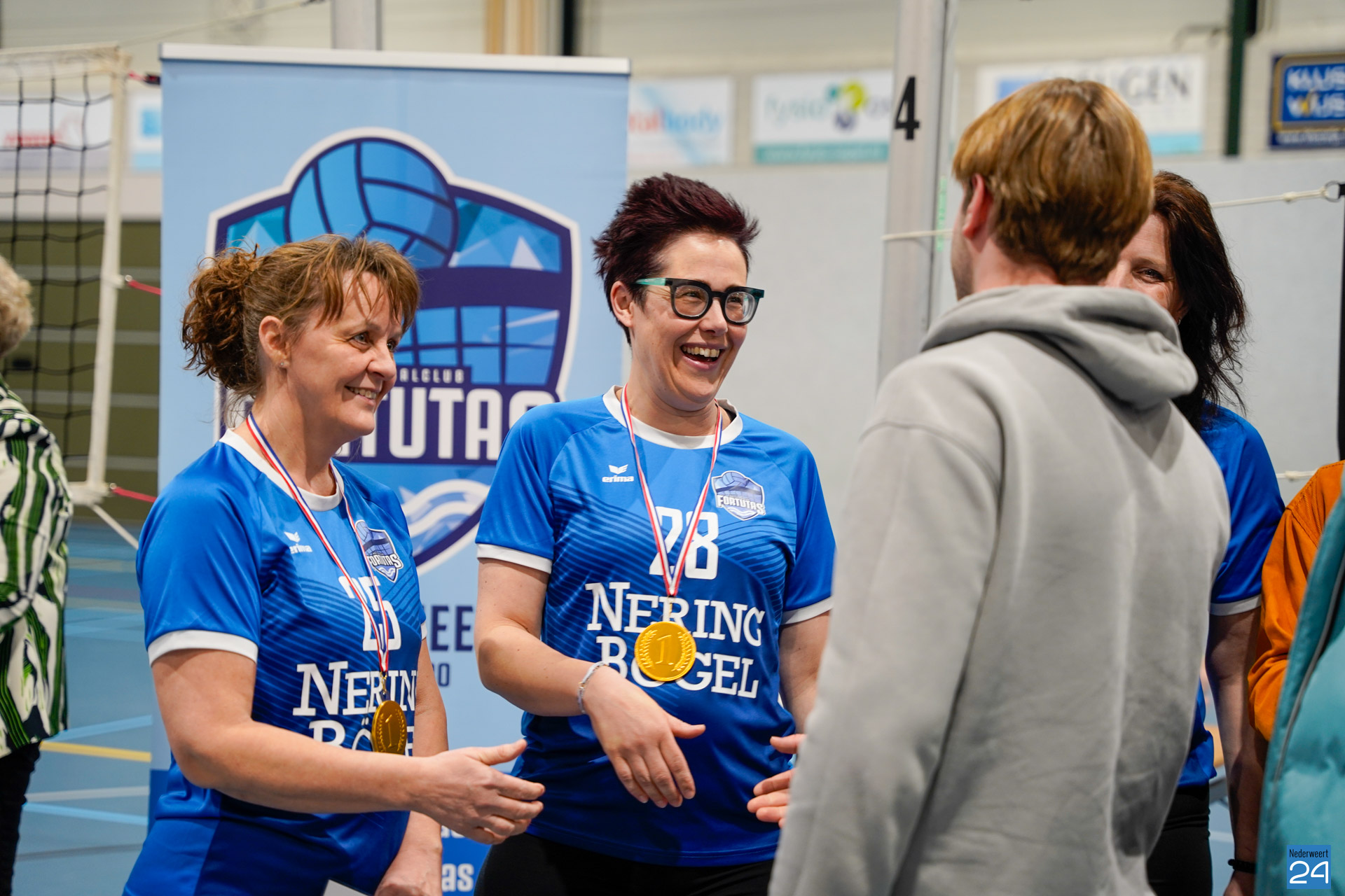 Elk jaar organiseert een Fortutas team het Fortutas Feest. En daar lijkt nu ook een mooie stimulans in te zitten. Immers, begin van dit seizoen organiseerden de Recreanten Damers 1 het Fortutas feest. En zij zijn kampioen geworden. Afgelopen zaterdag organiseerden de Nevobo Dames 1 het Fortutas Feest en ook zij zijn kampioen geworden. Voor beide teams een geweldige teamprestatie! De huldiging start met de Recreanten Dames 1. Elke speelster wordt naar voren geroepen onder luid applaus en ontvangt een medaille en oorkonde.