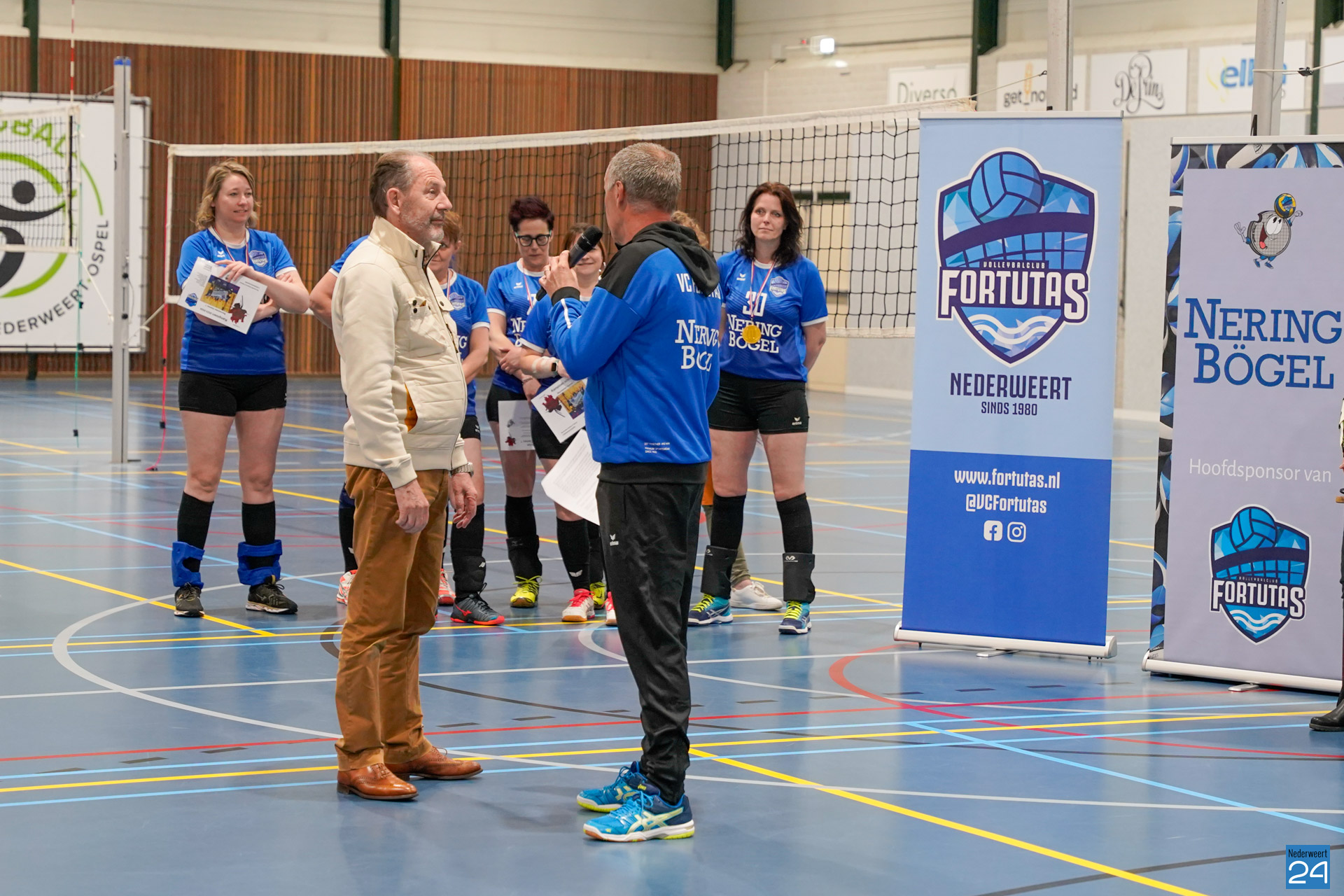 Op maandagavond 22 april zijn in de sporthal de Bengele de VC Fortutas kampioenen gehuldigd door voorzitter Niek Creemers en wethouder Carla Dieteren. De wethouder spreekt als eerste haar felicitaties uit aan de Fortutas kampioenen en is trots op de mooie resultaten die de teams behaald hebben in de competities. Zij overhandigt aan de vereniging een mooie attentie namens het college van B&W.