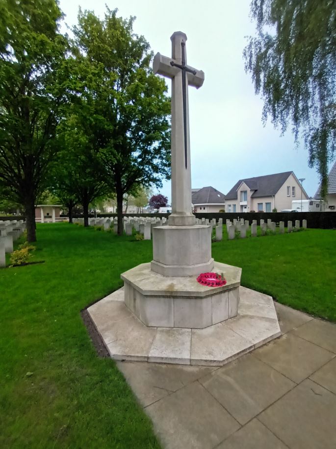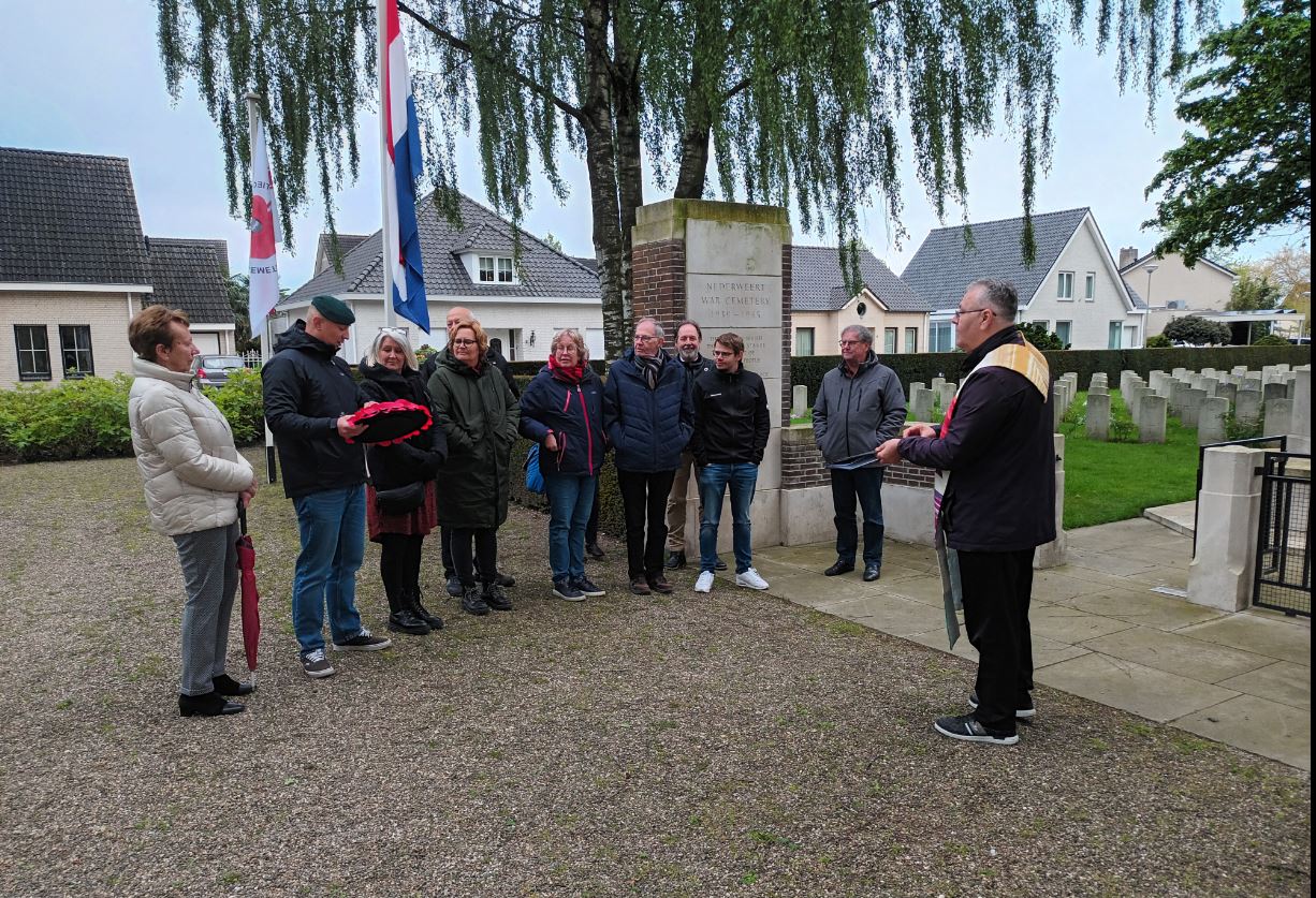 In het bijzijn van de adoptanten, leden van het bestuur en ceremoniemeester Marcus Vankan werd er een poppy krans gelegd bij het kruis van offer en vond er een bescheiden herdenkingsdienst plaats. Vervolgens zijn de zeven relevante graven bezocht, waarbij de hoop werd uitgesproken dat de gesneuvelde militairen mogen rusten in vrede.