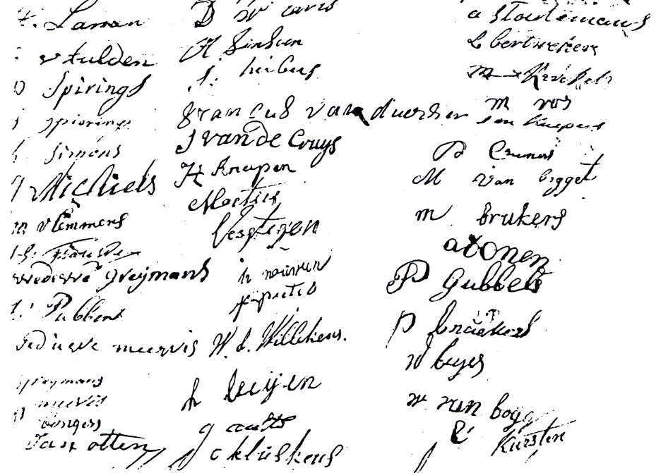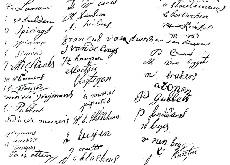 Deel van de handtekeningenlijst van de petitie. Veel bekende Nederweerter familienamen zijn herkenbaar. Collectie SGN.
