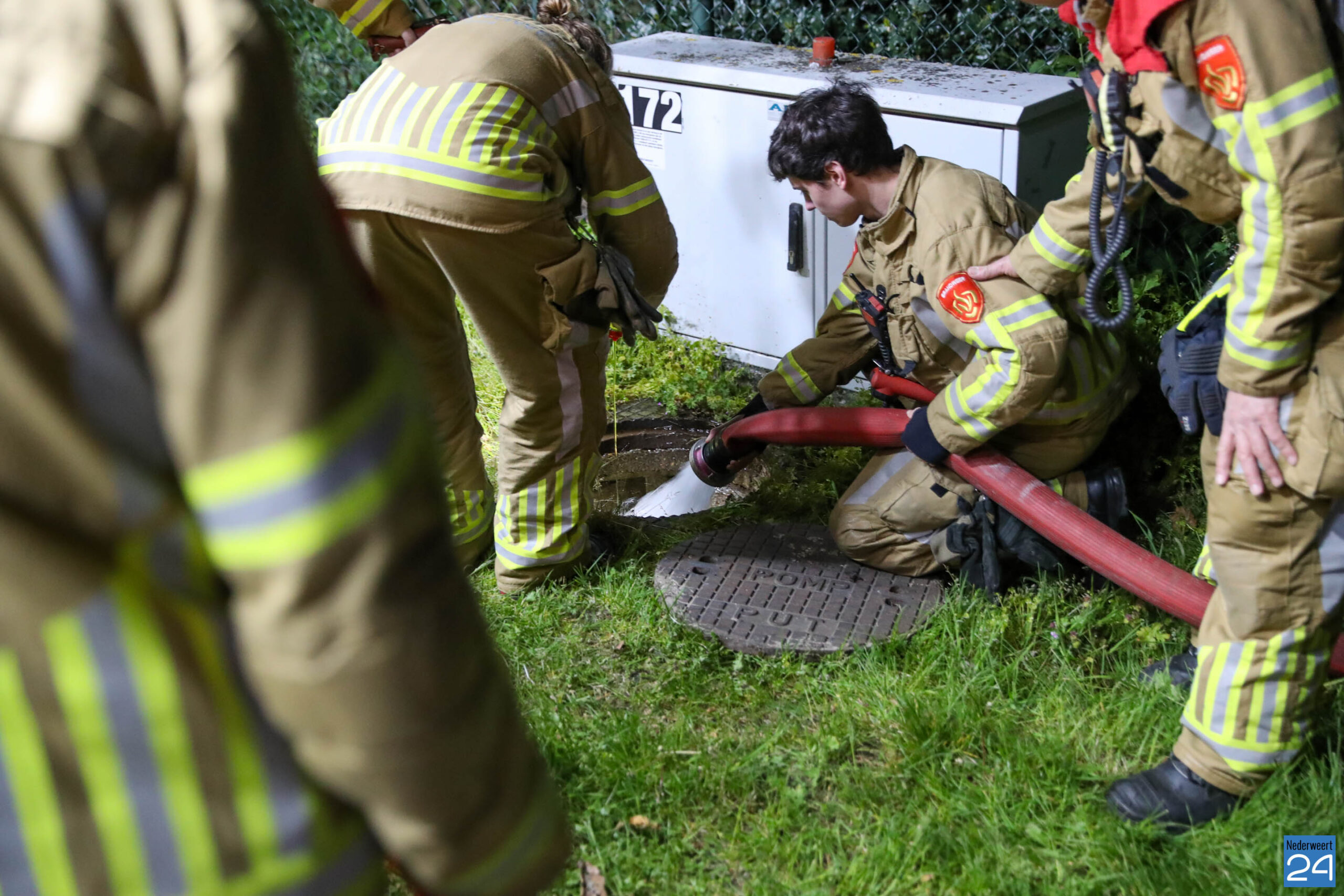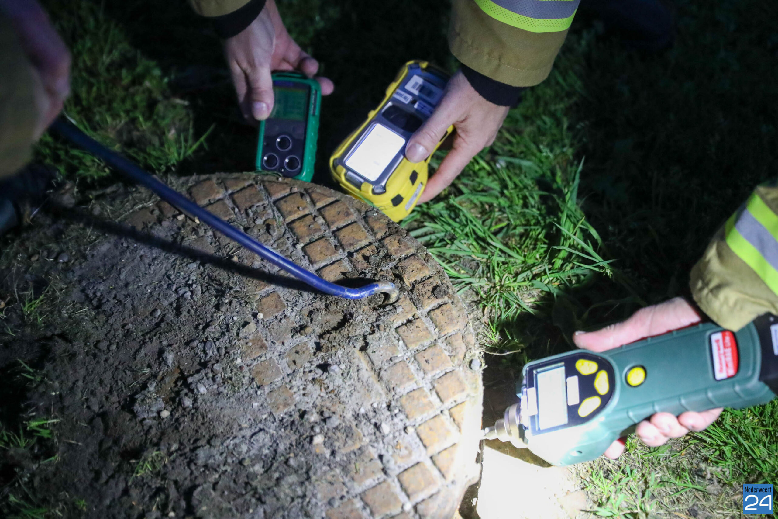 De Adviseur Gevaarlijke Stoffen verrichtte bij verschillende putten metingen. Hij kon echter niet achterhalen waar het vandaan kwam. Met zeep en veel water hebben ze stukken riool door gespoeld.