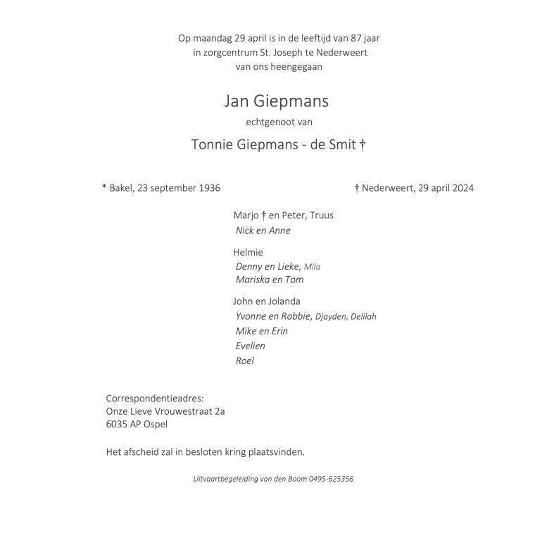 2. Wij wensen de fam heel veel sterkte met het verlies