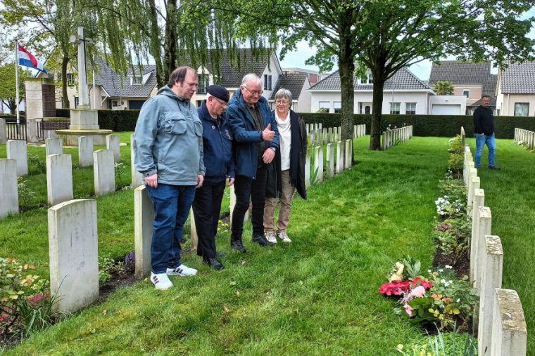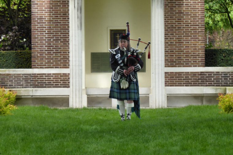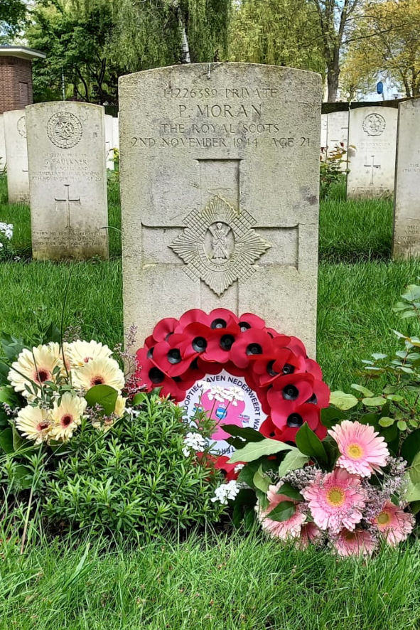 Zaterdag 27 april verwelkomden leden van de Stichting Adoptiegraven Nederweert Bill Moran en zijn zoon Andy uit Leith Edinburgh in Schotland. Zij bezochten het graf van Peter Moran, de oom van Bill. Het optreden van bagpiper Jeanine Stassen van Pipers Society Castle d’Aldenghoor zorgde tijdens de ceremonie voor de indrukwekkende muzikale omlijsting.