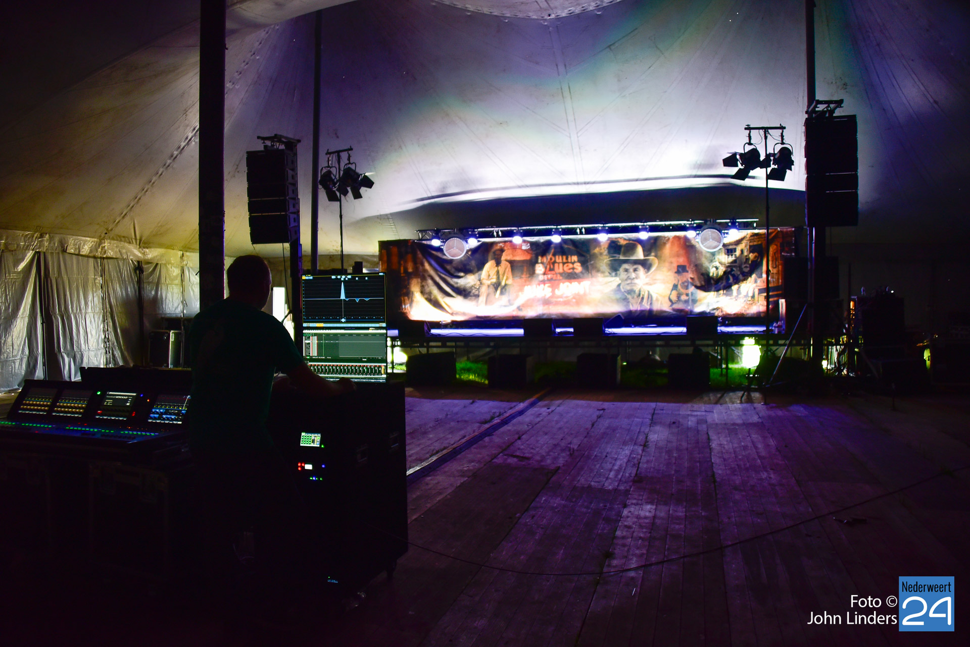 Nog een dag te gaan en dan zal de Bluesmuziek weer in Ospel te horen zijn maar zijn ze er al klaar voor? Natuurlijk niet, de laatste loodjes, de finishing touch moet nog gebeuren en daarom wordt er ook vandaag weer volop gewerkt op het festival terrein.