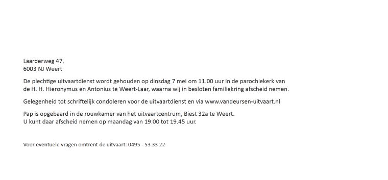 Gecondoleerd allemaal voor het overlijden van jullie lieve pap-schoonvader-opa Harry! Heel veel sterkte samen gewenst voor de komende periode!