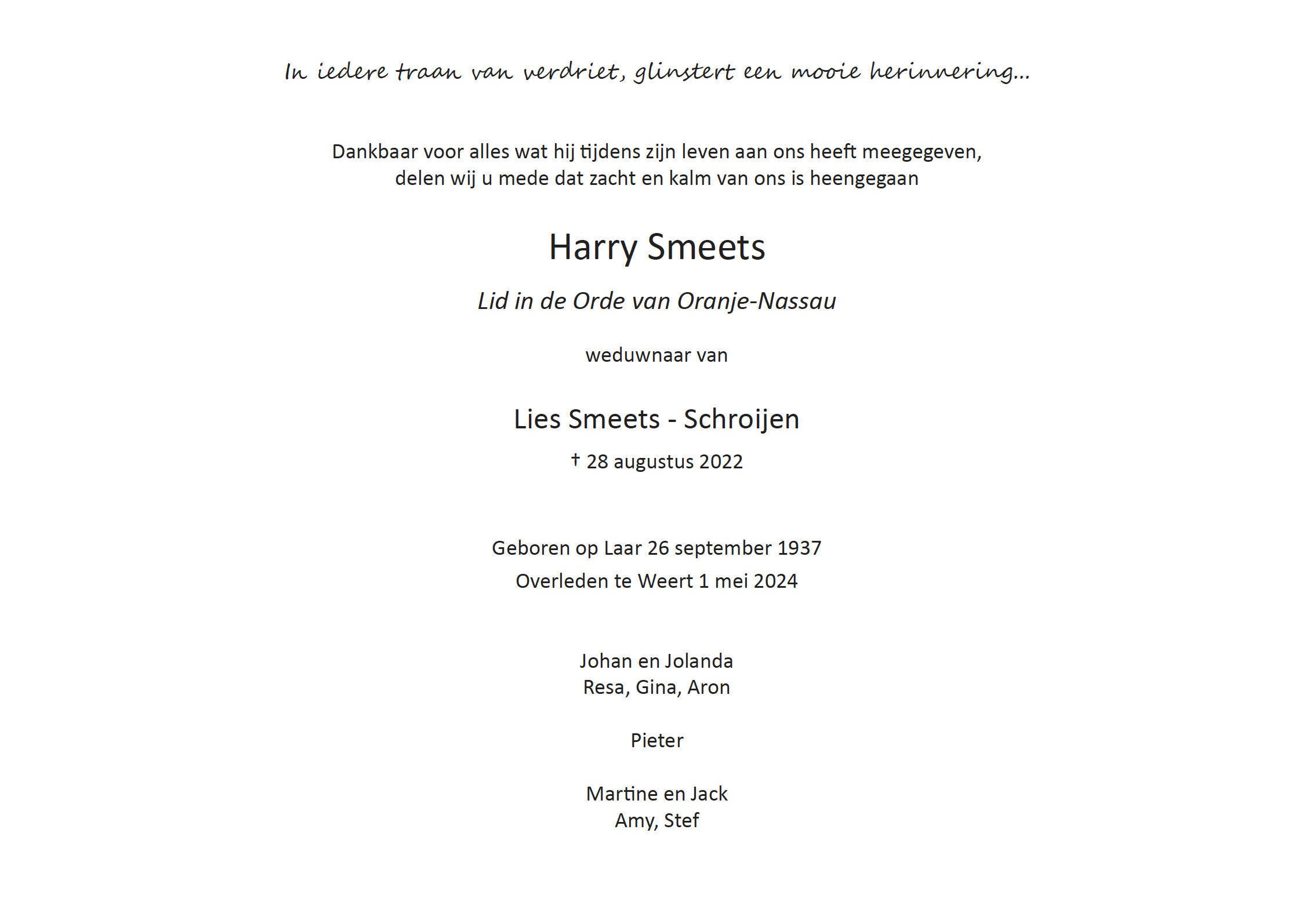 Overlijdensbericht | Harry Smeets †