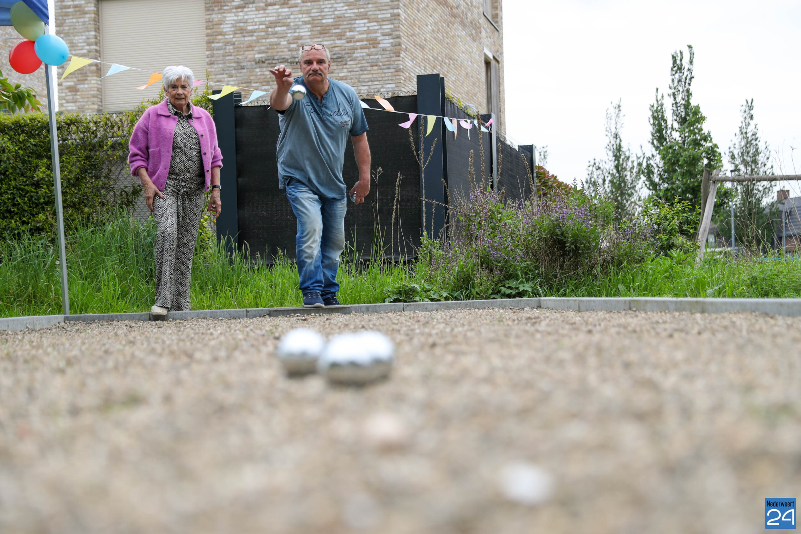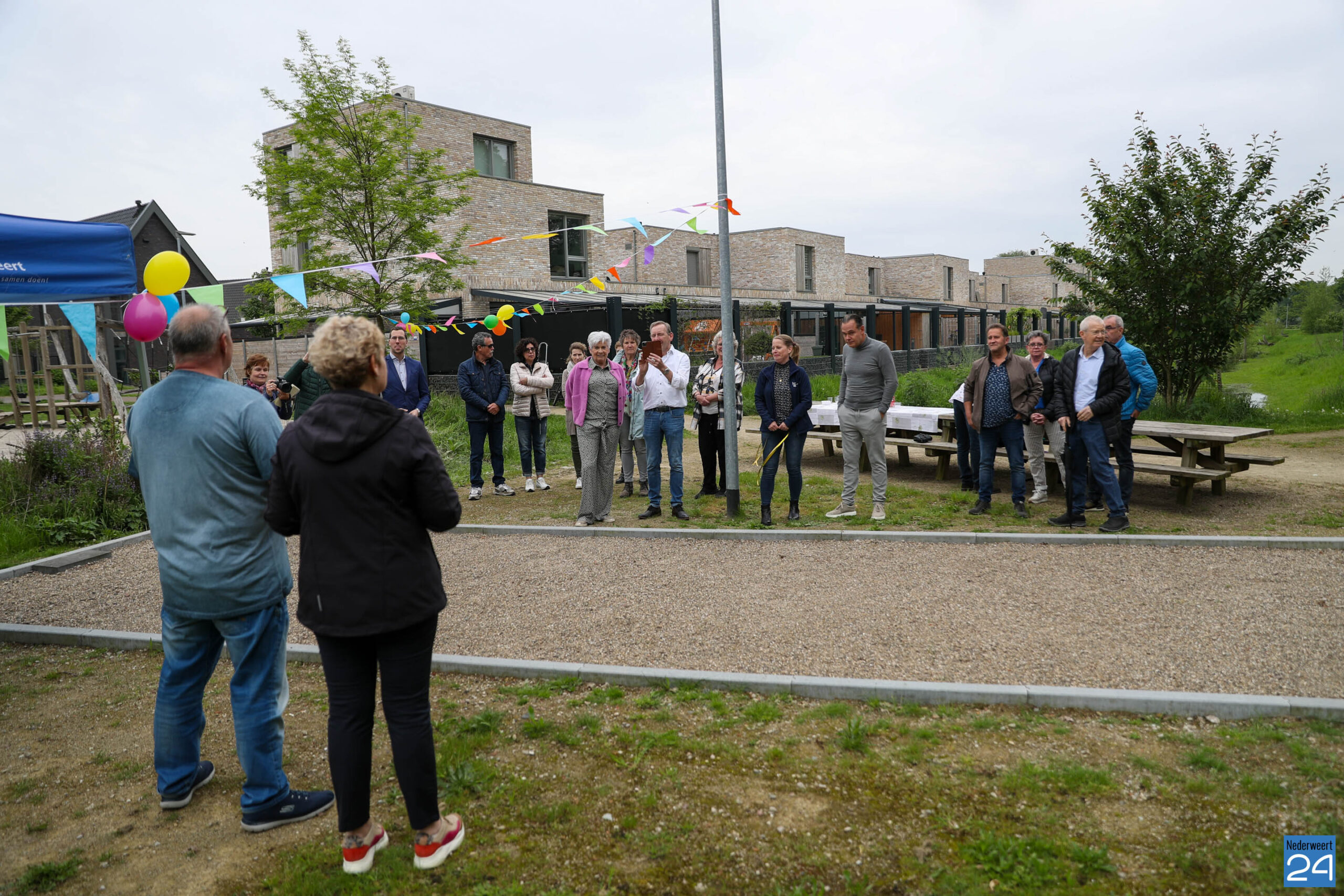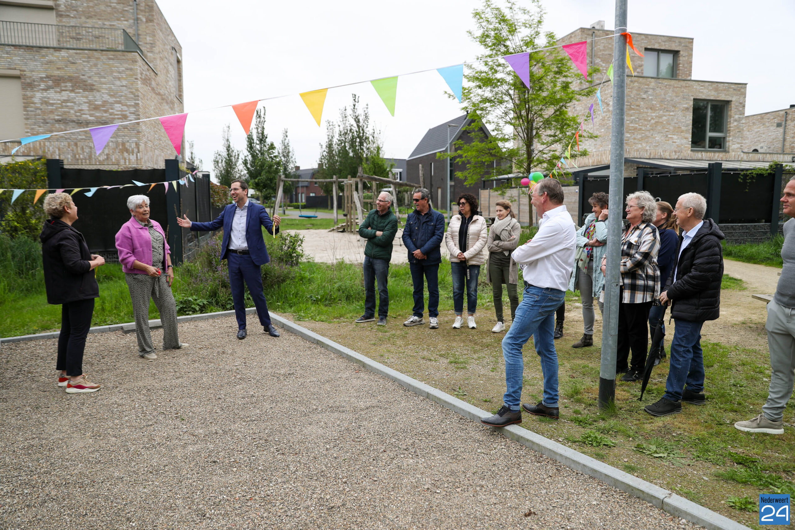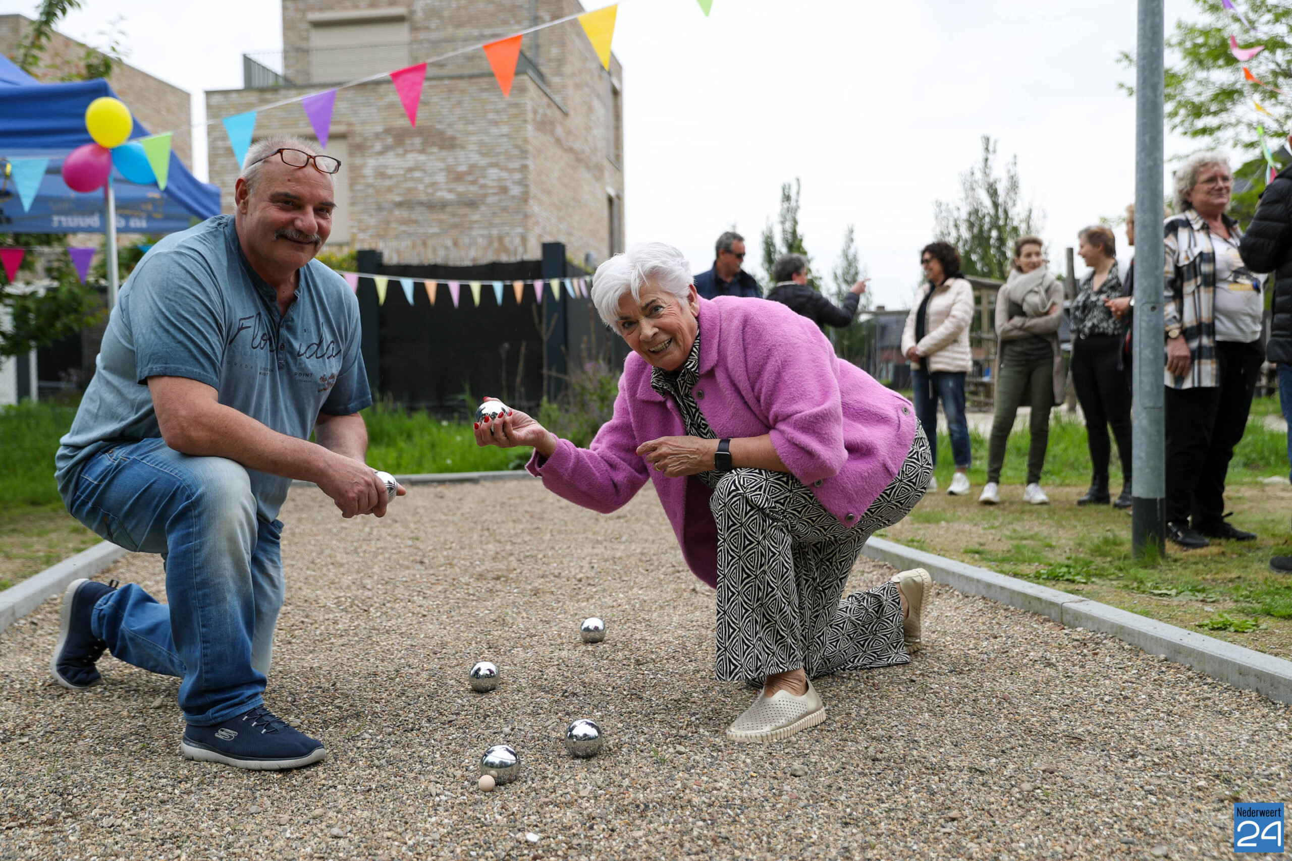 Na mooie woorden van de Peter Nies, wethouder Carla Dieteren en wethouder Jorik Franssen werd de jeu de boules baan officieel geopend, en konden de ballen gaan rollen. De eer van de eerste worp was natuurlijk aan Anny.