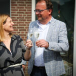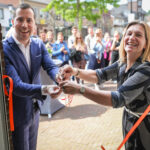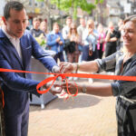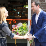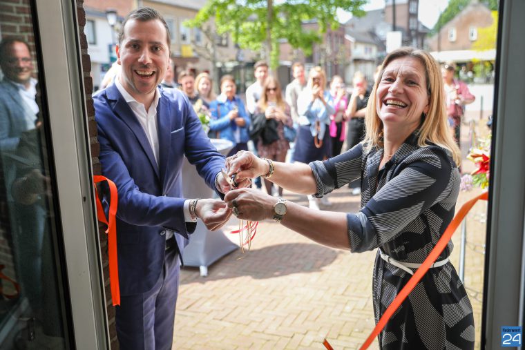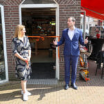 Na een korte toespraak, waarbij de wethouder zijn waardering uitsprak voor het ondernemerschap knipte hij samen met eigenaresse Rafaëlle Vos het lintje door.