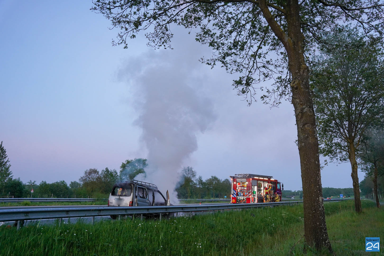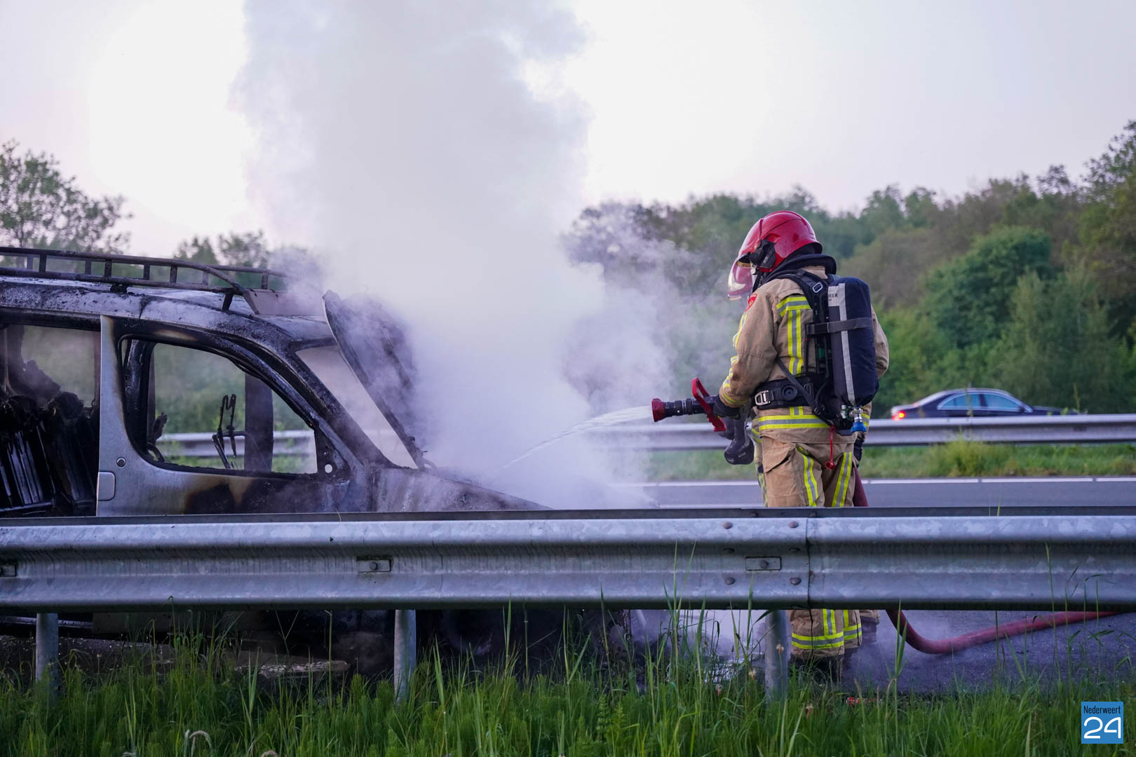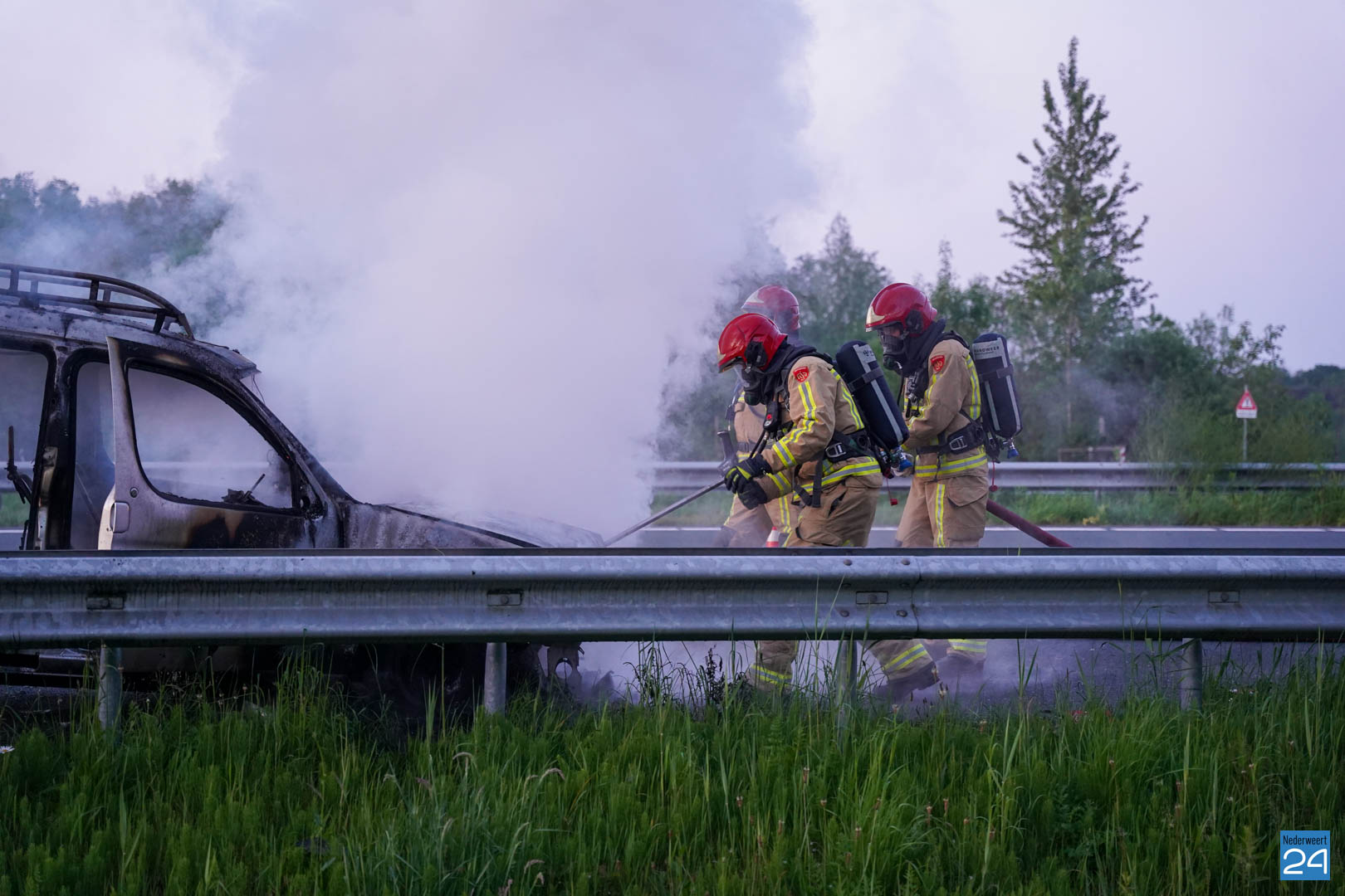 Door onbekende oorzaak was er brand ontstaan in een bestelauto die net voor de afslag Weert-Noord richting het zuiden reed. De bestuurder van de auto wist het voertuig veilig langs de weg te zetten en samen met de andere inzittende op tijd uit te stappen. Achter de bestelauto was een aanhanger gekoppeld. Deze kon op tijd worden losgekoppeld.