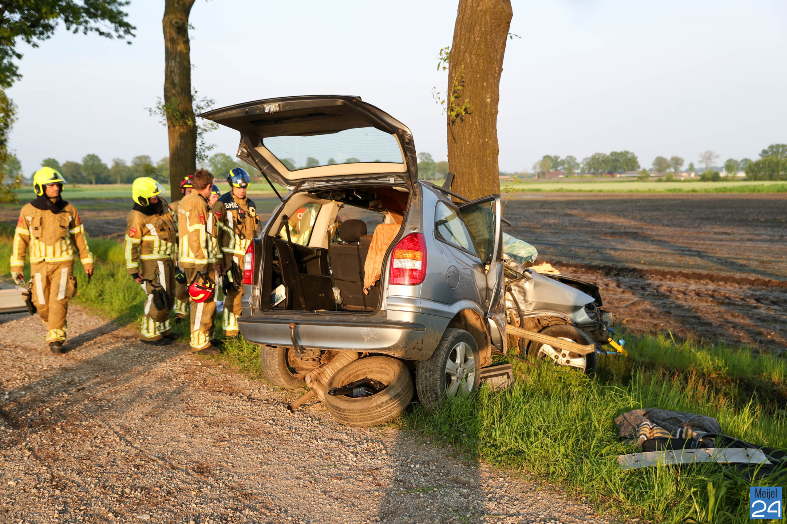 Donderdagavond, even na half acht, is een personenauto hard tegen een boom gebotst op een zandweg tussen de Scheidingsweg en de Peelweg in Meijel.