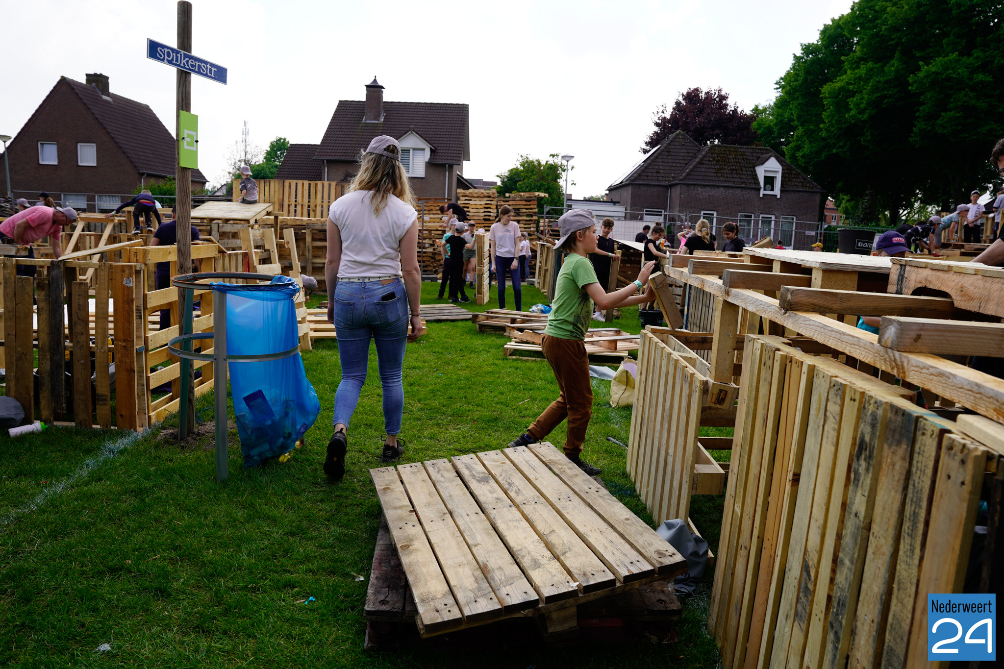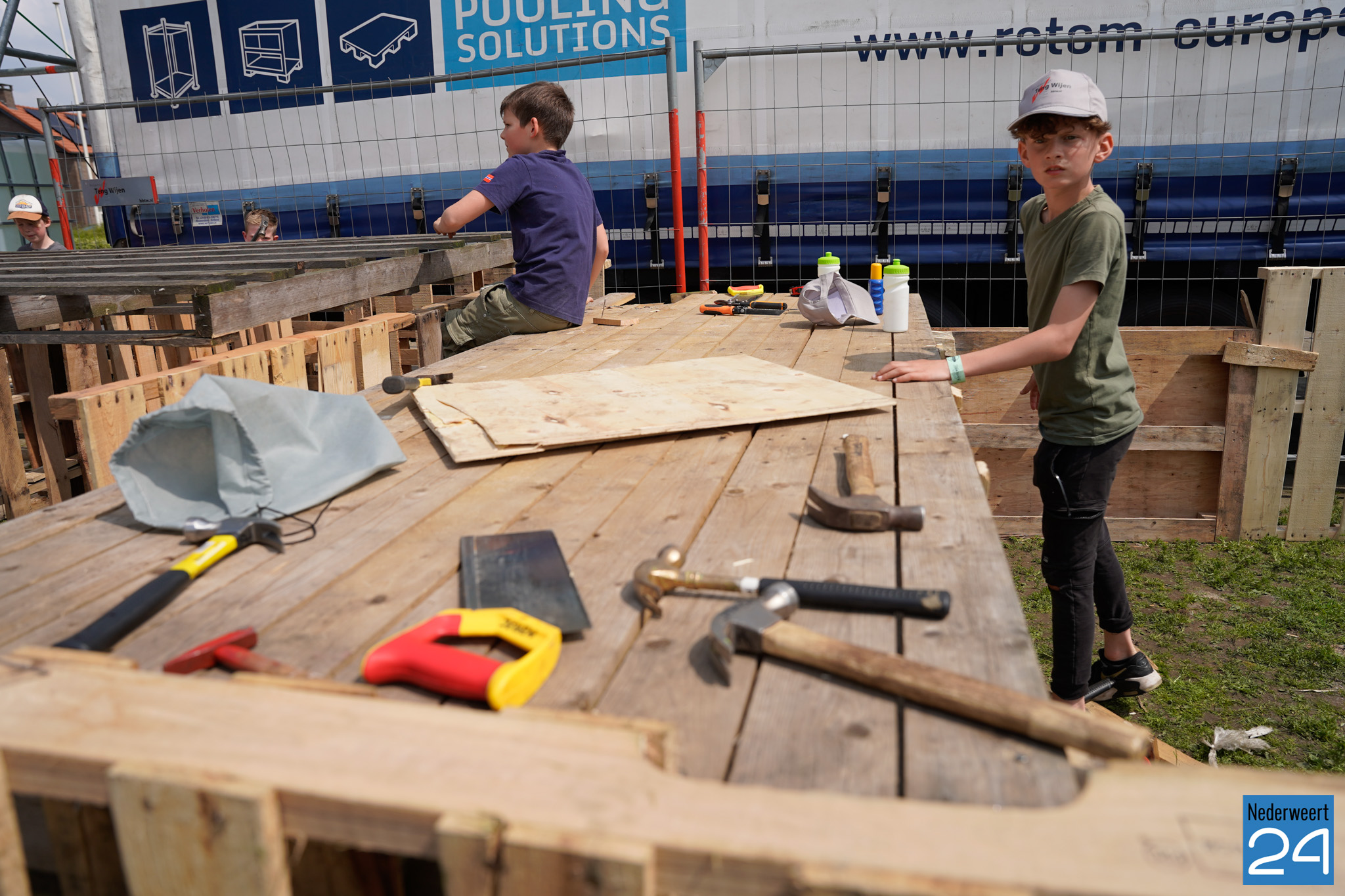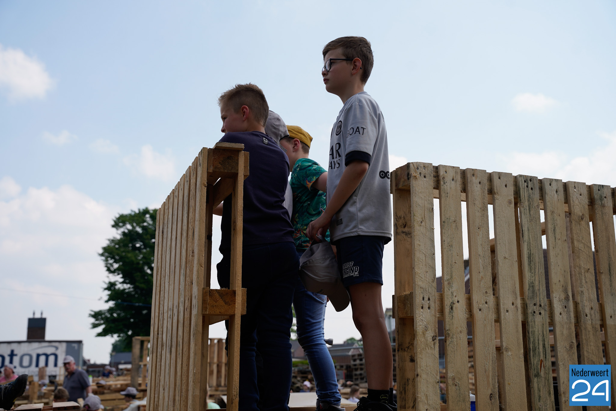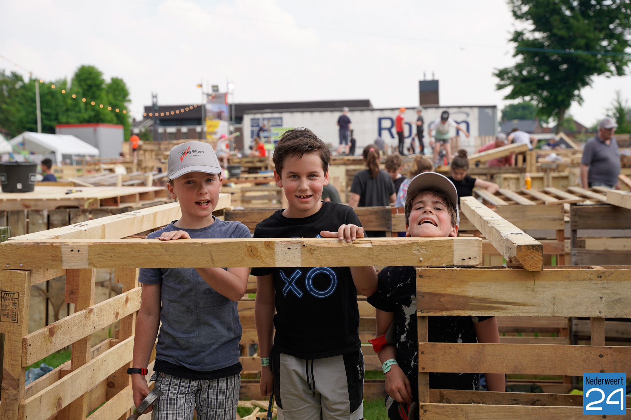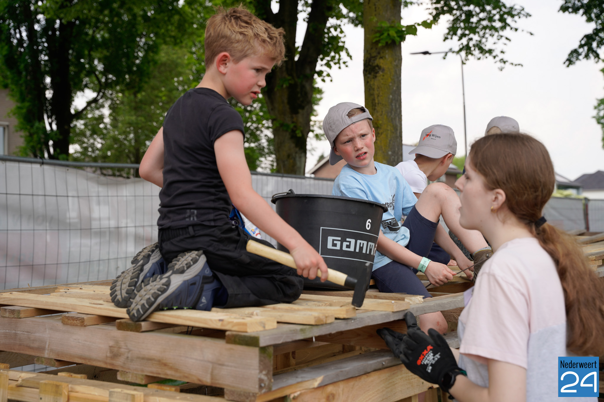 Het Sint Rochusplein in Budschop is weer omgetoverd tot timmerdorp, kinderen van groep 4 t/m 8 mogen in groepjes van 4 tot 12 personen verdeeld over ongeveer 45 kavels hun eigen ontworpen “palletwoning” gaan realiseren.