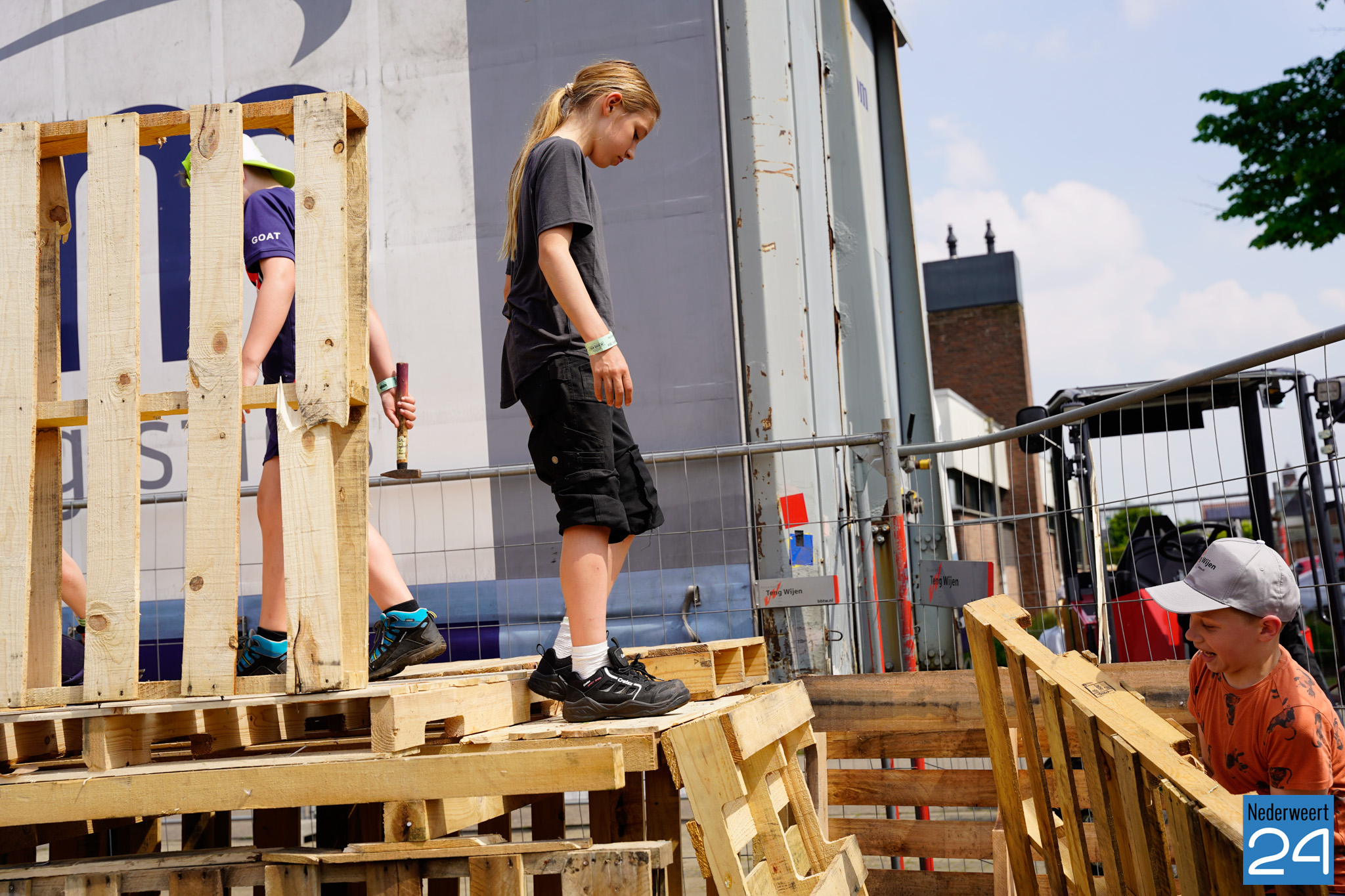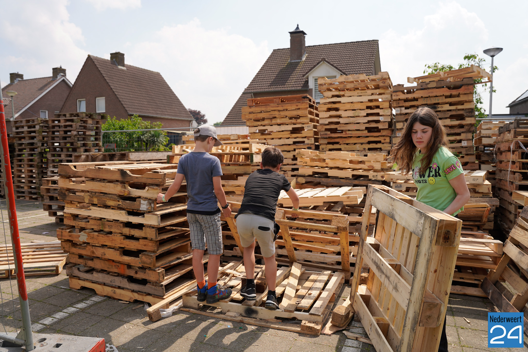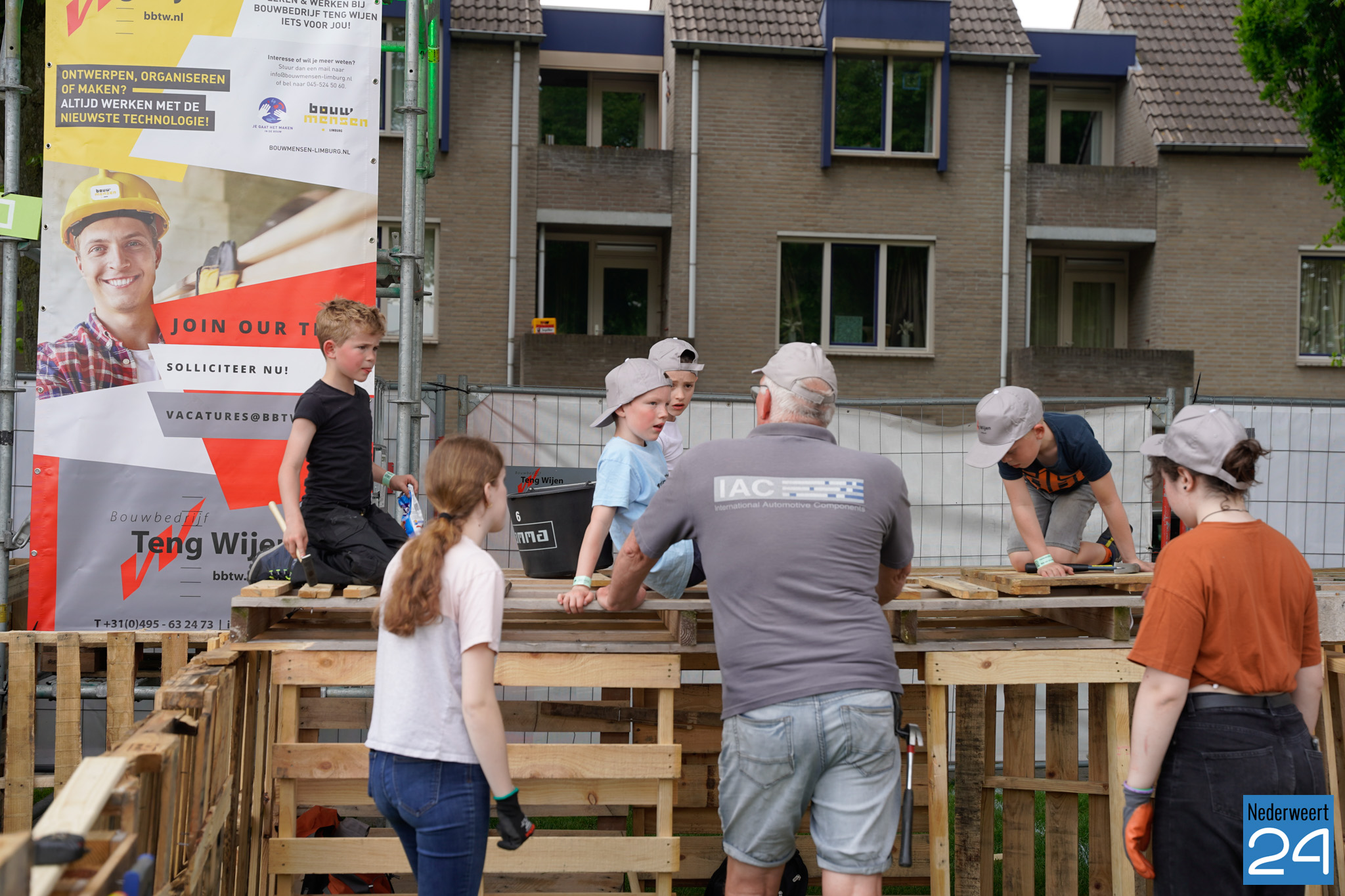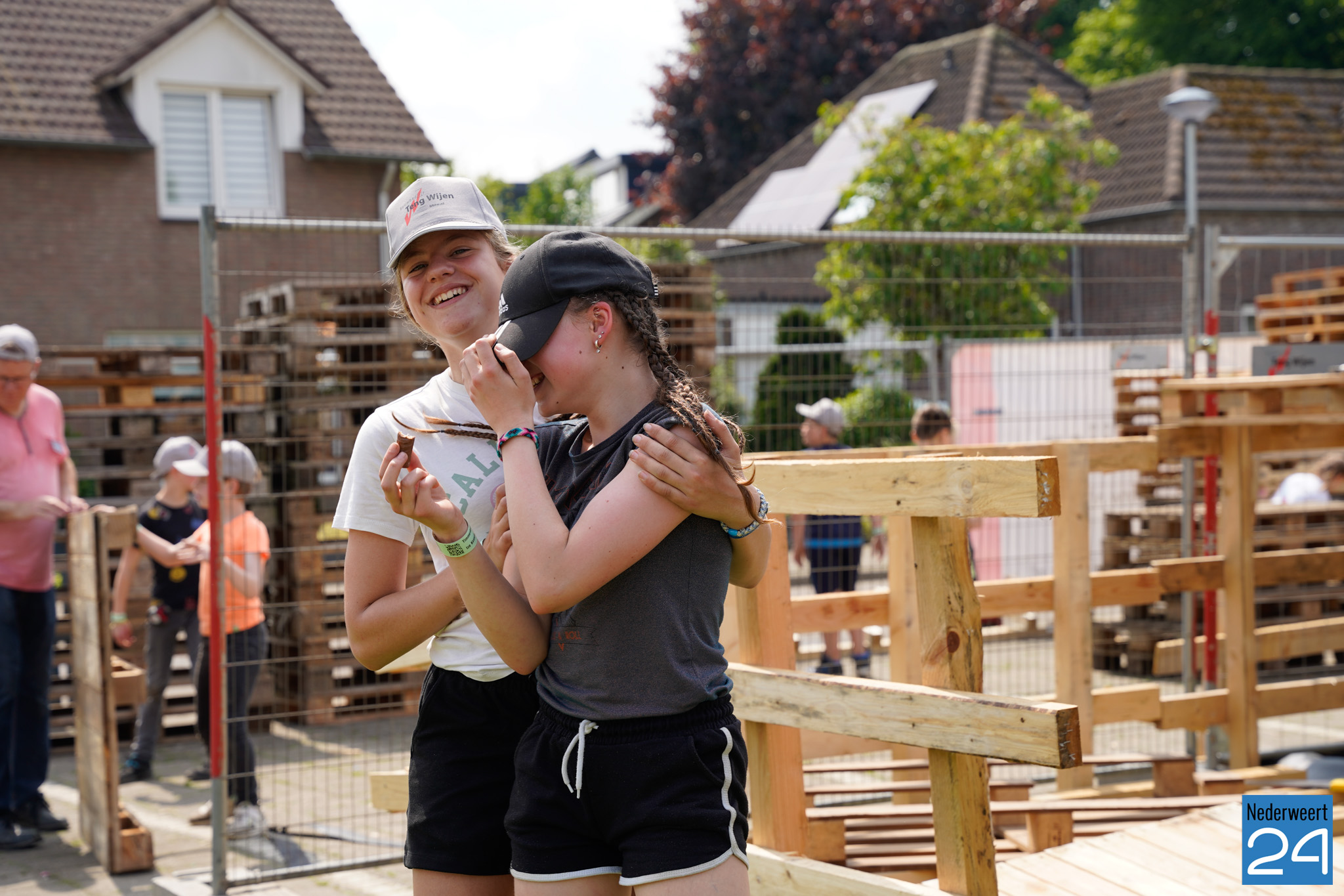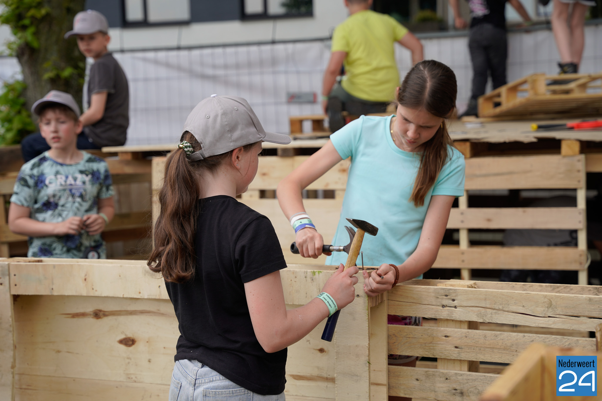 Het Sint Rochusplein in Budschop is weer omgetoverd tot timmerdorp, kinderen van groep 4 t/m 8 mogen in groepjes van 4 tot 12 personen verdeeld over ongeveer 45 kavels hun eigen ontworpen “palletwoning” gaan realiseren.
