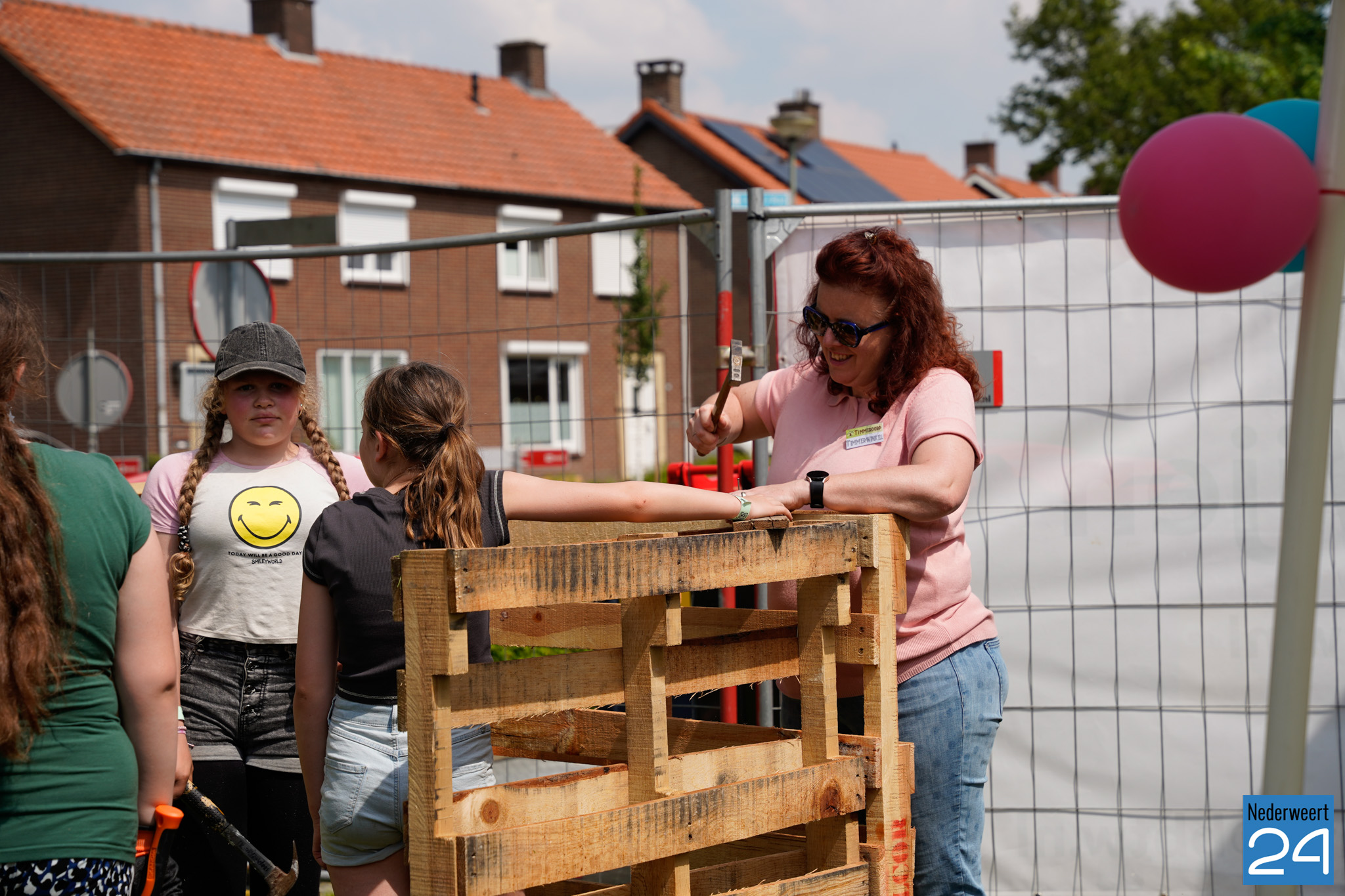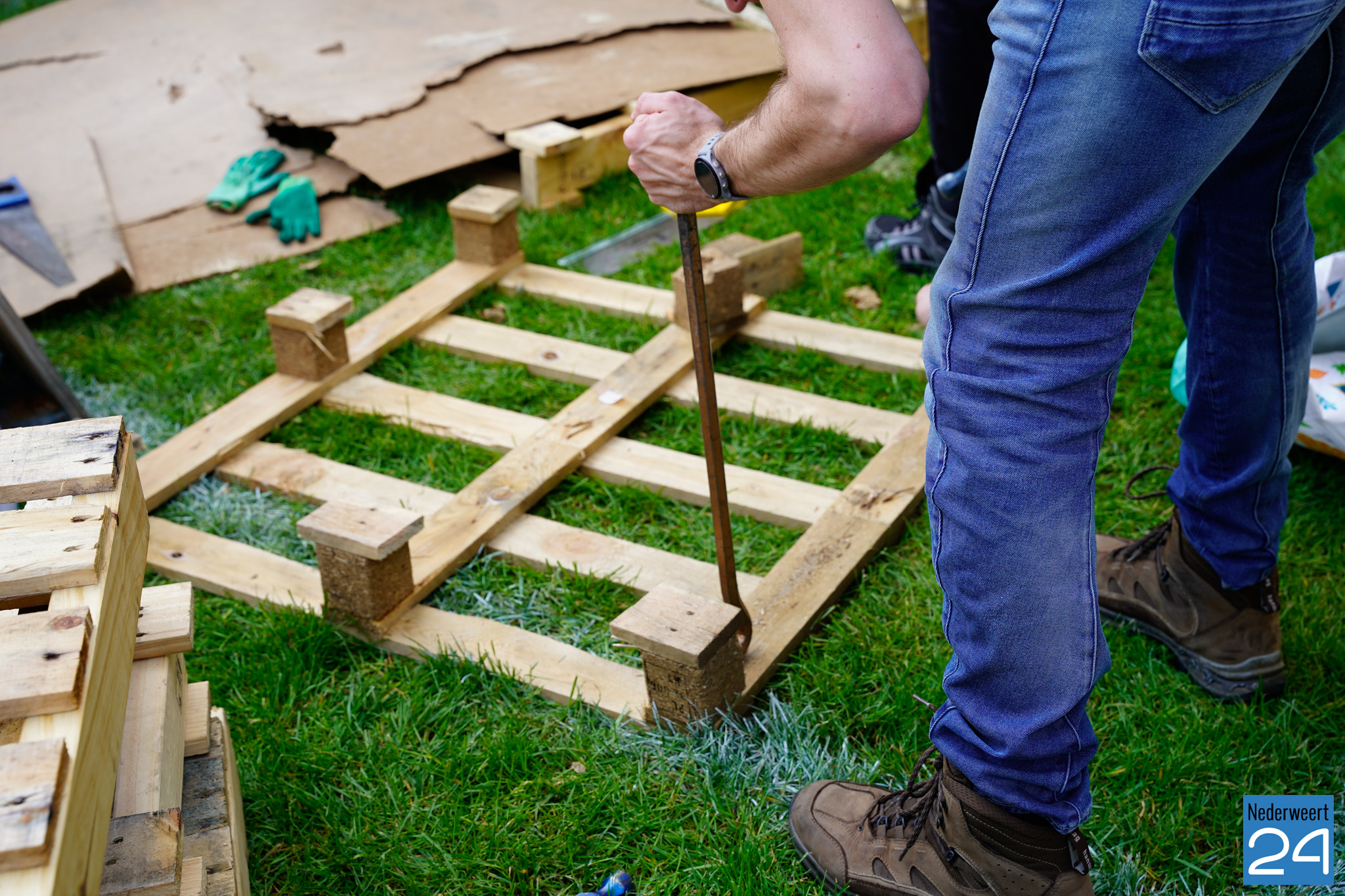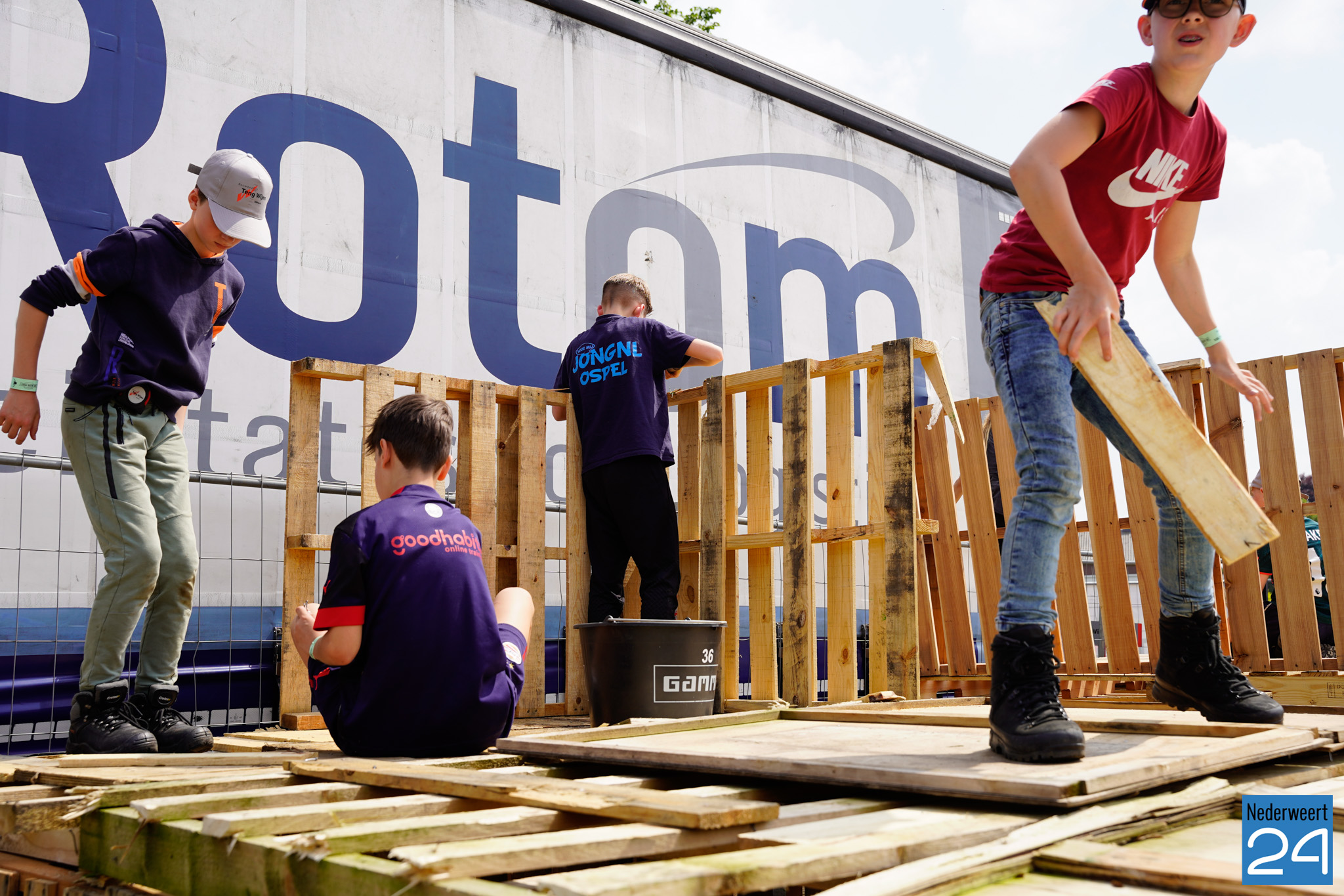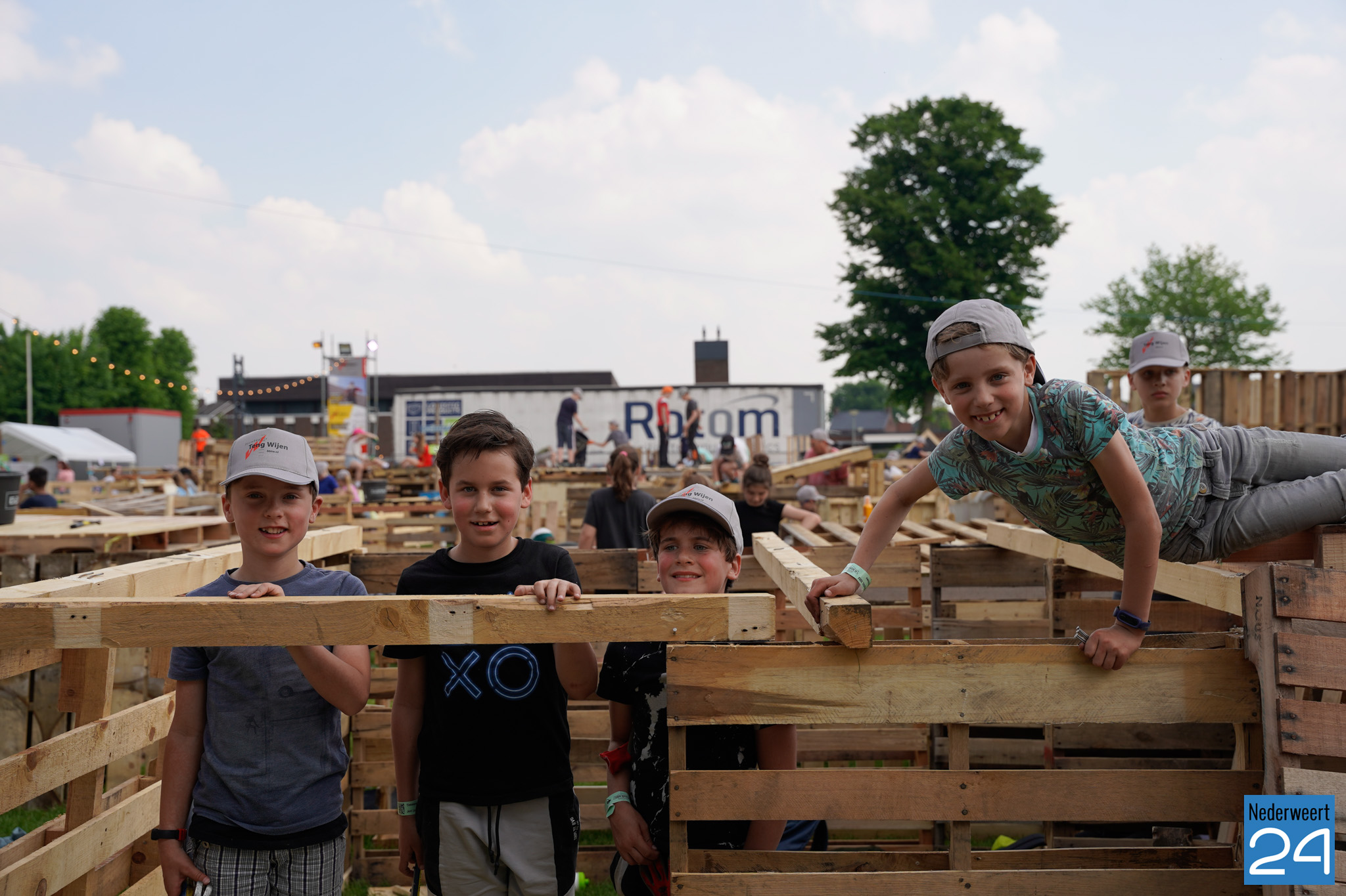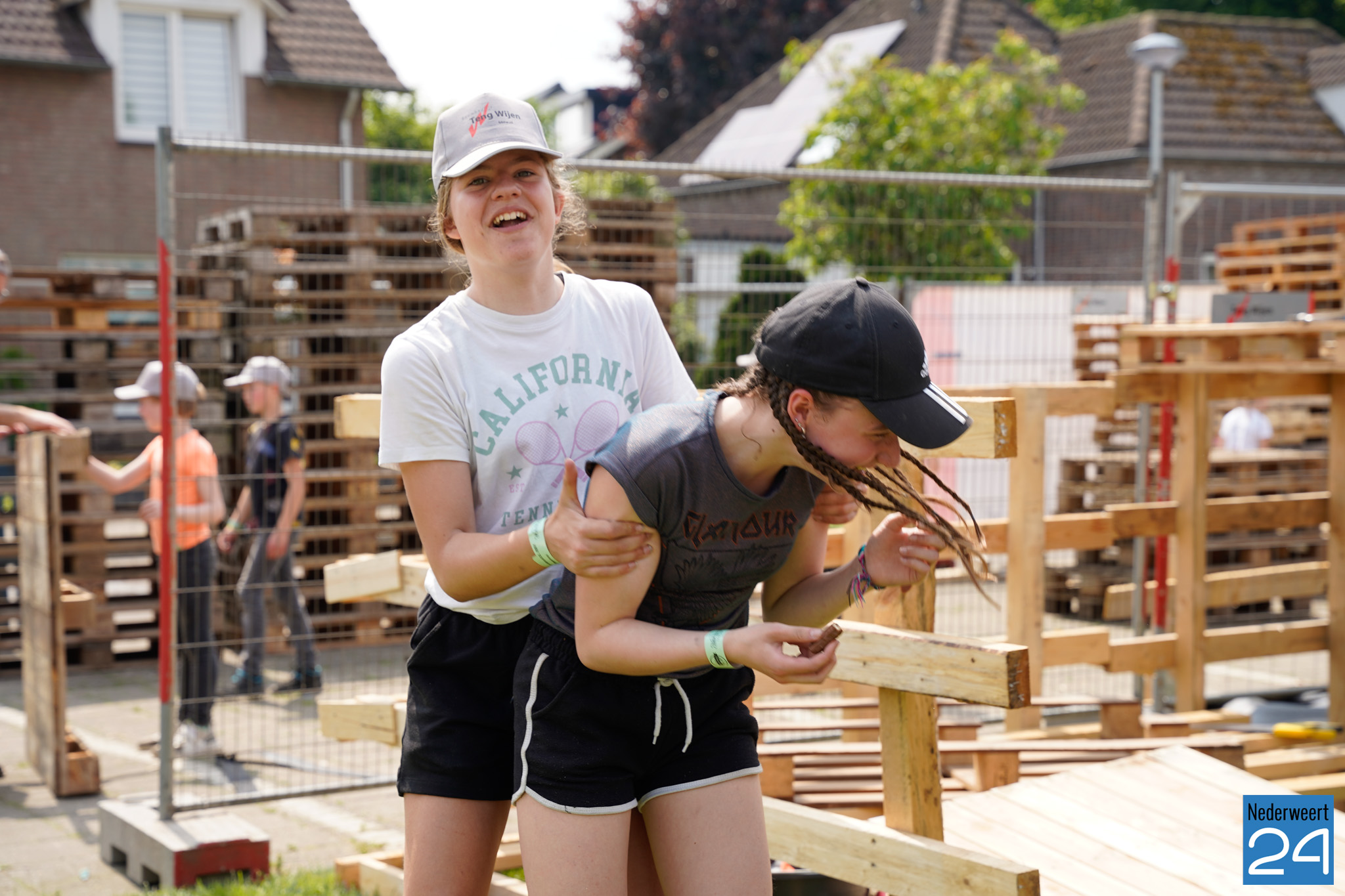 Het Sint Rochusplein in Budschop is weer omgetoverd tot timmerdorp, kinderen van groep 4 t/m 8 mogen in groepjes van 4 tot 12 personen verdeeld over ongeveer 45 kavels hun eigen ontworpen “palletwoning” gaan realiseren.