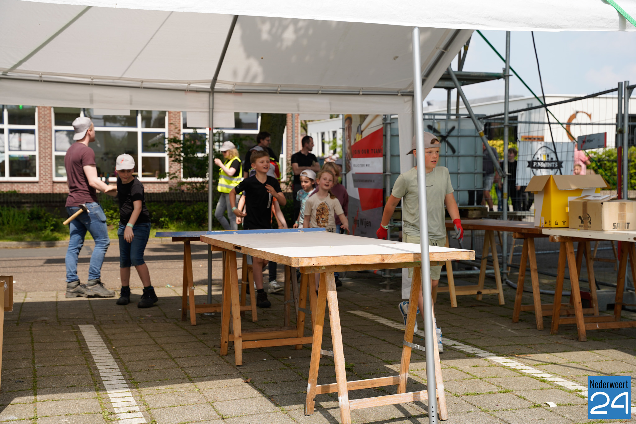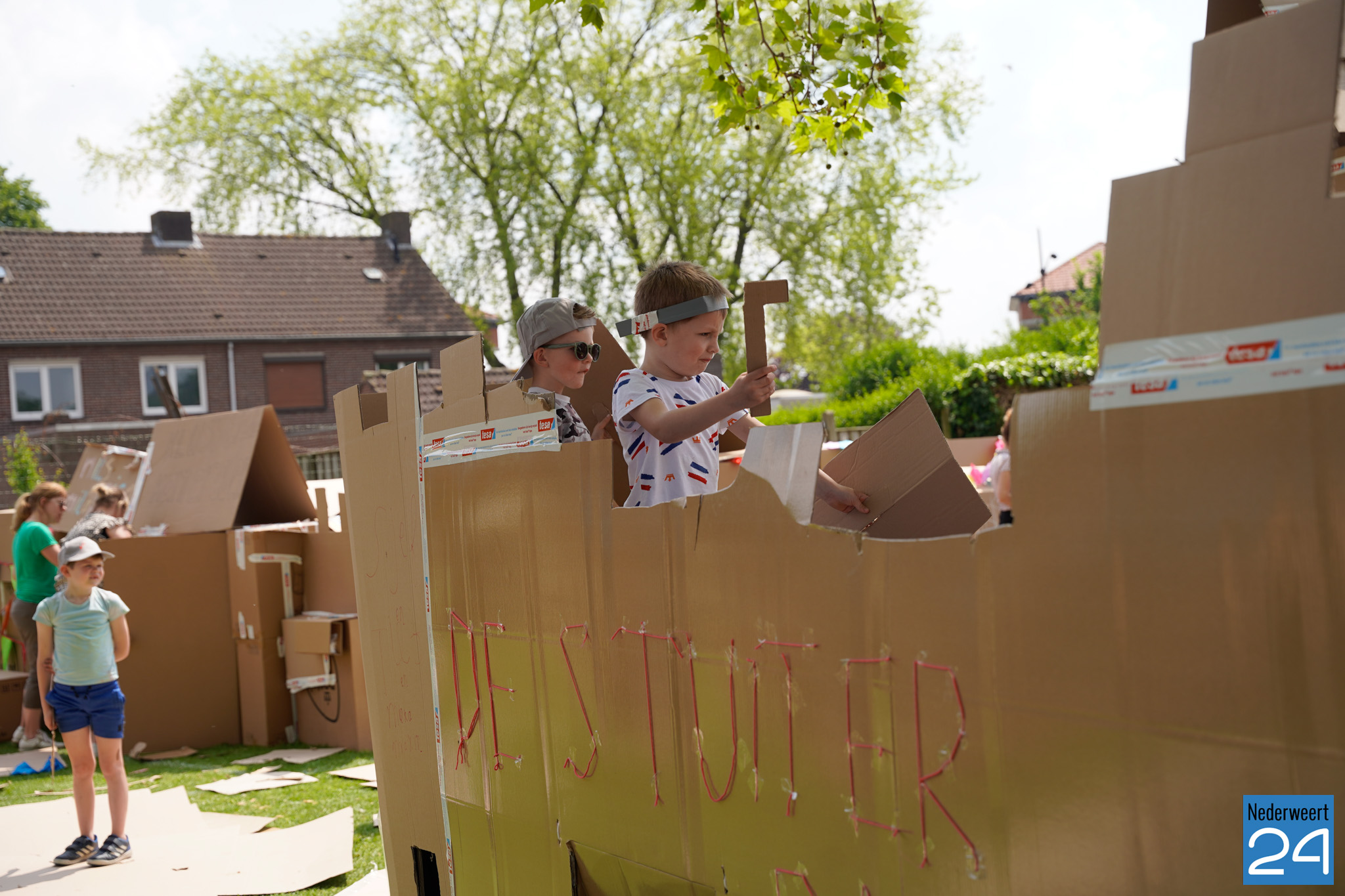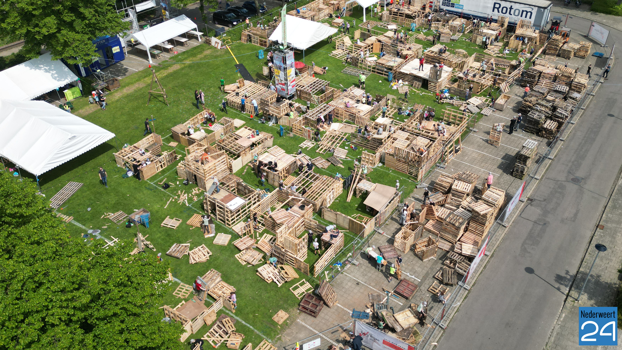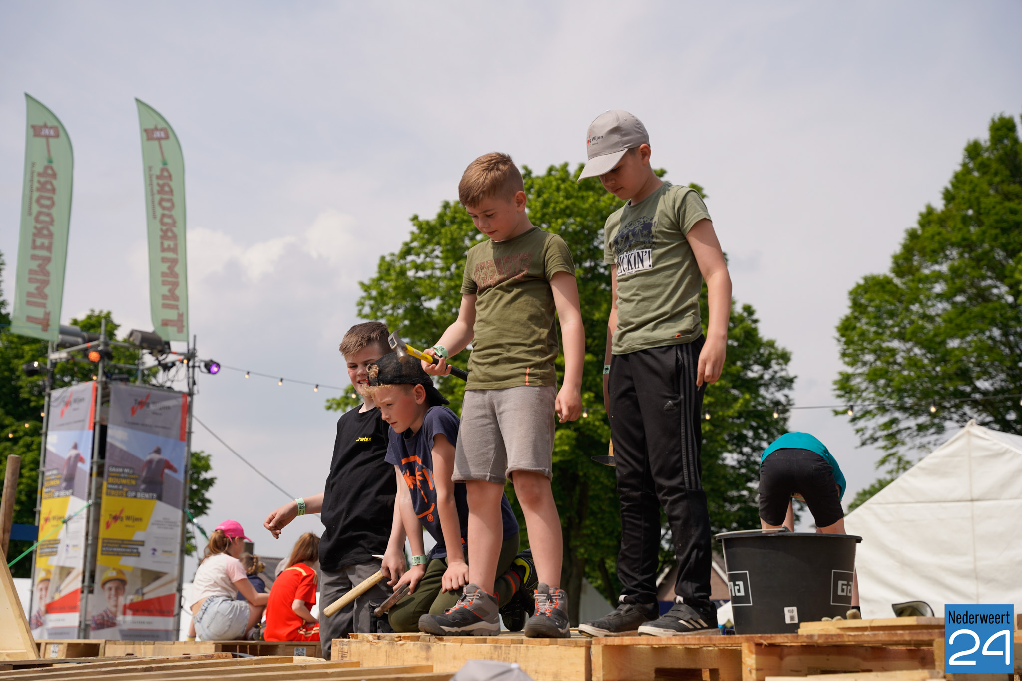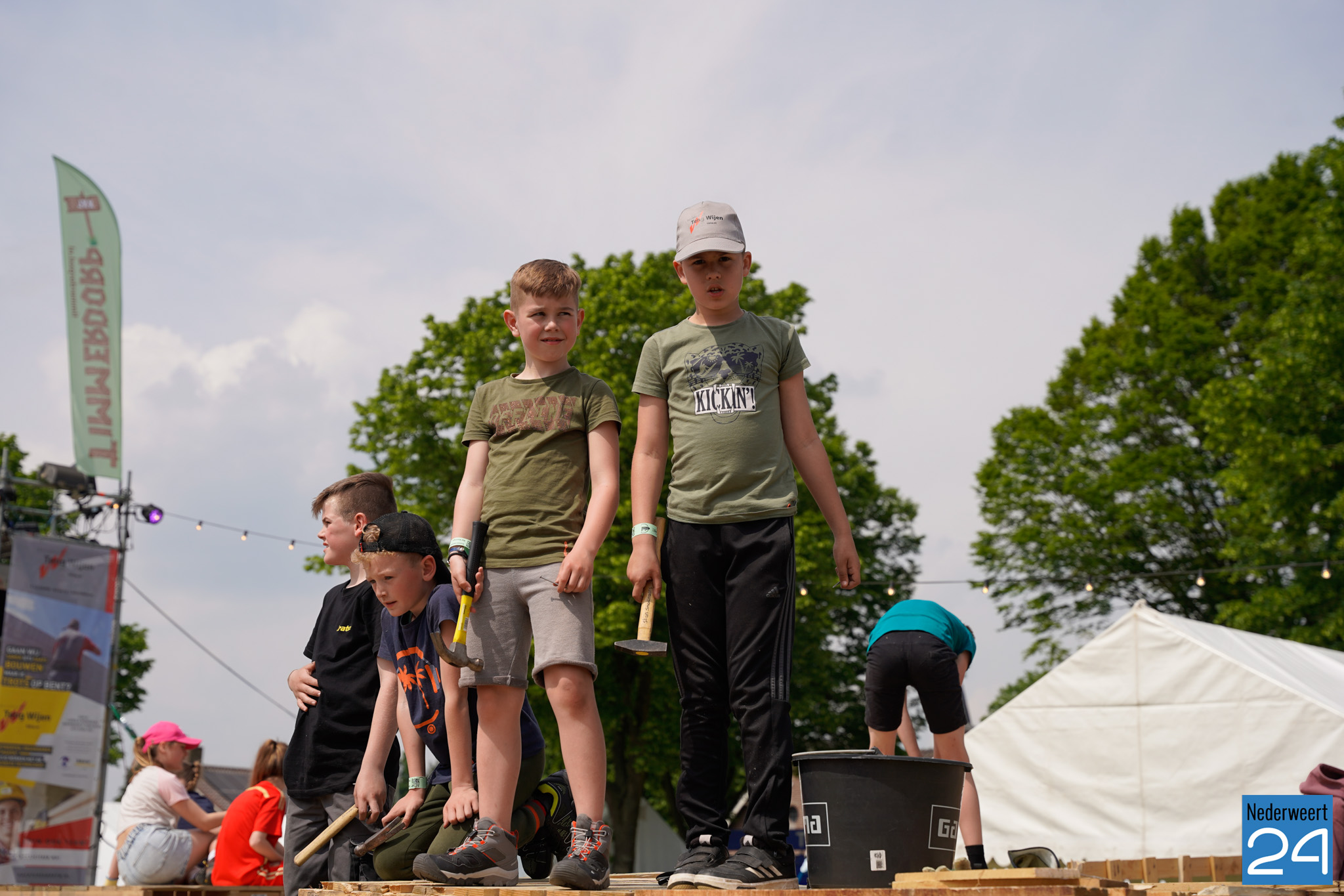Het Sint Rochusplein in Budschop is weer omgetoverd tot timmerdorp, kinderen van groep 4 t/m 8 mogen in groepjes van 4 tot 12 personen verdeeld over ongeveer 45 kavels hun eigen ontworpen “palletwoning” gaan realiseren.