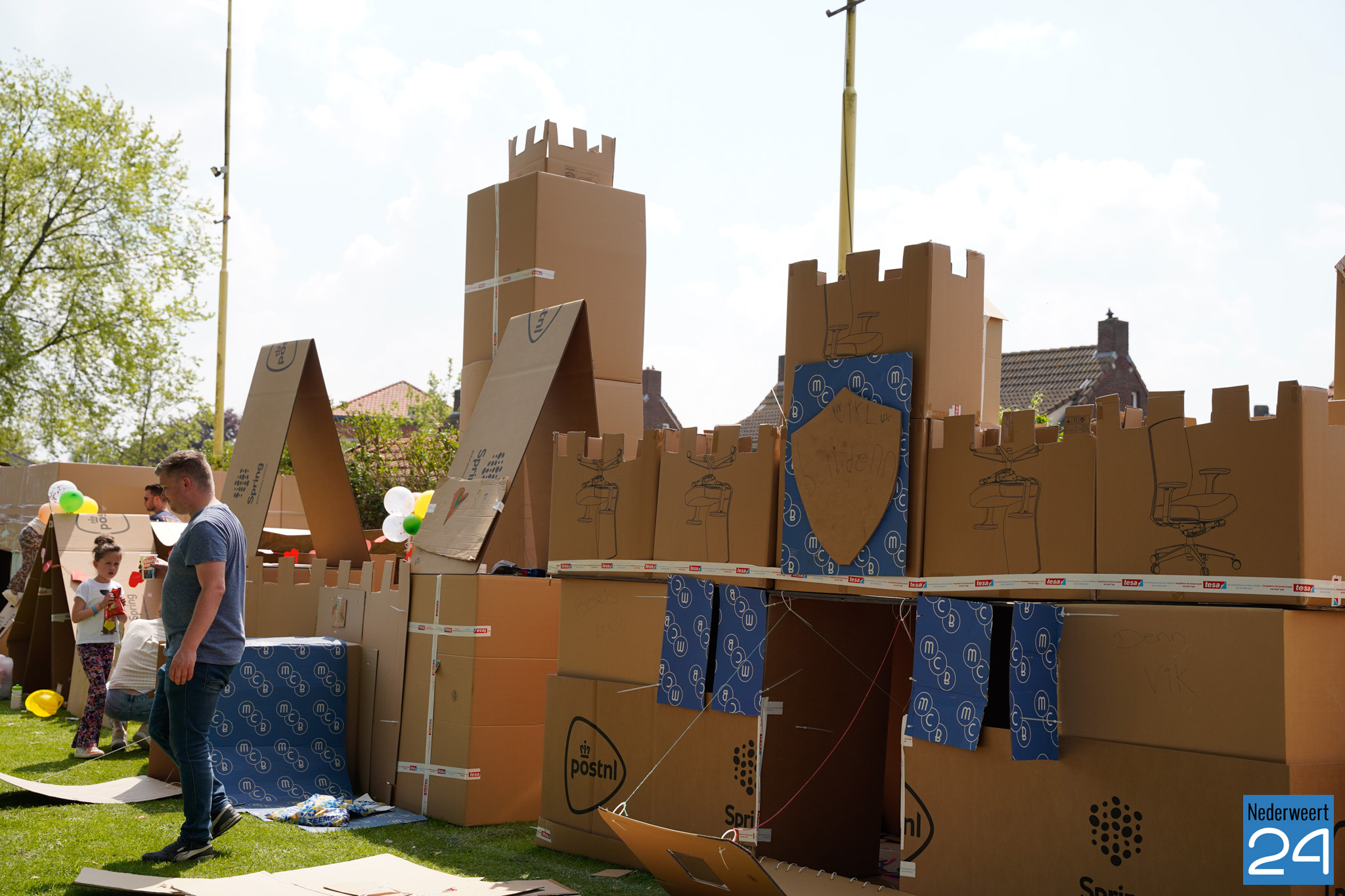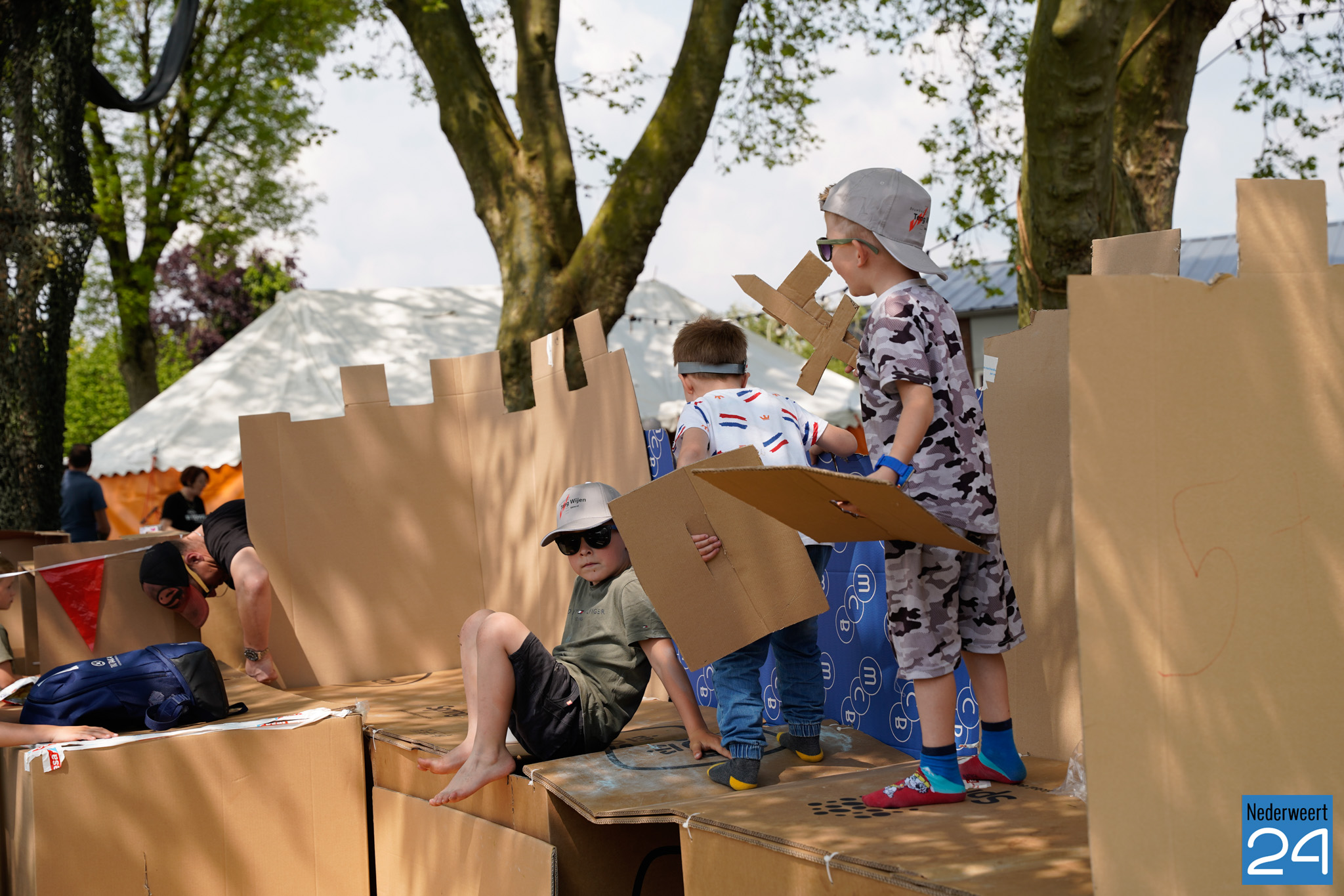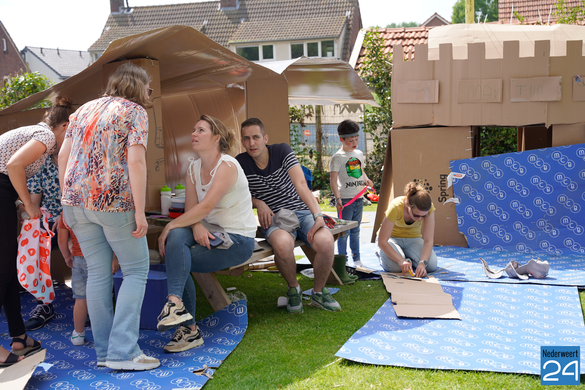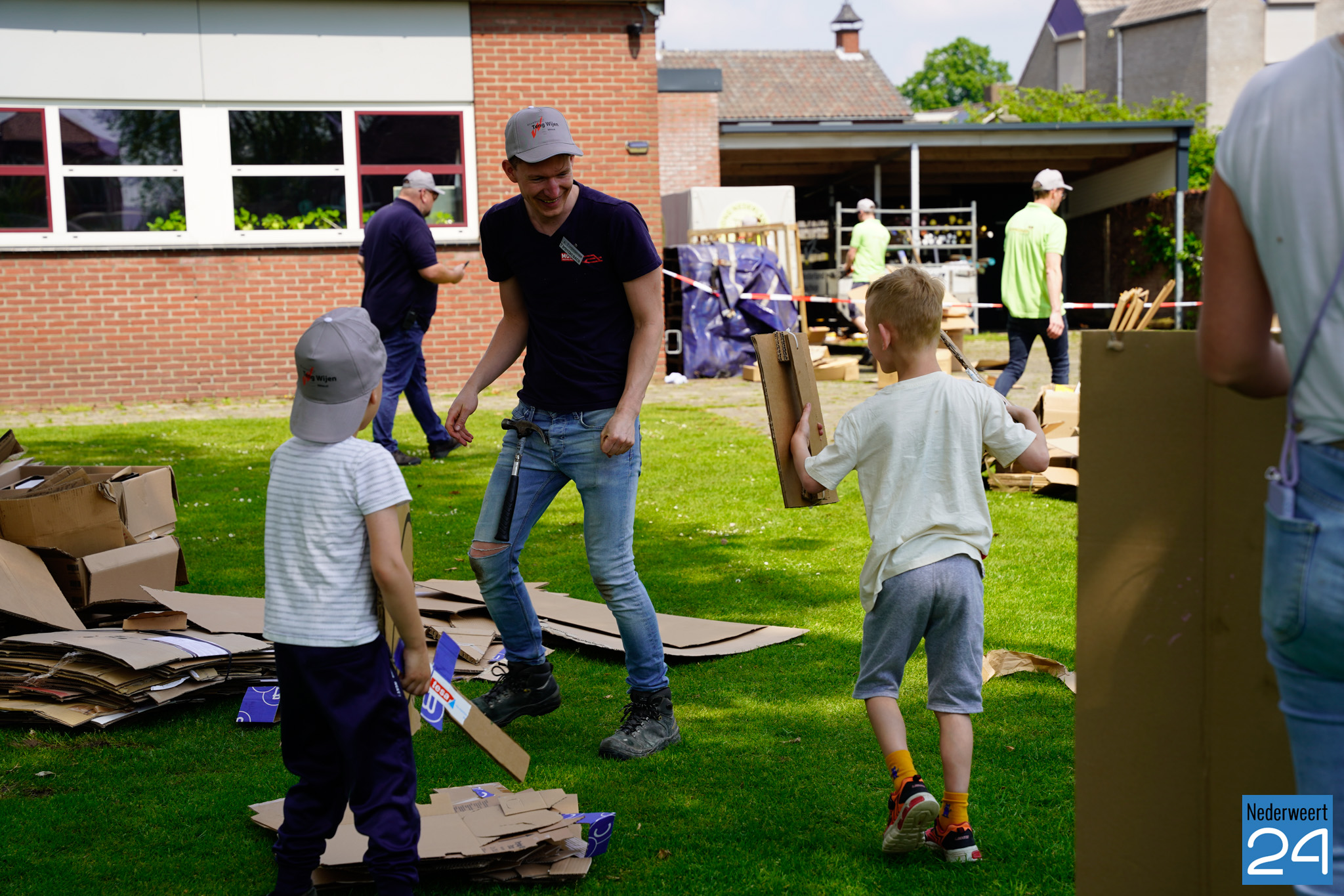 Voor de kinderen van groep 1 t/m 3 die nog niet mee mogen doen met TimmerdorpXXL maar wel hun eigen hut willen bouwen is het terrein van Jong Nederland Budschop gereed gemaakt om met dozen een hut te bouwen.